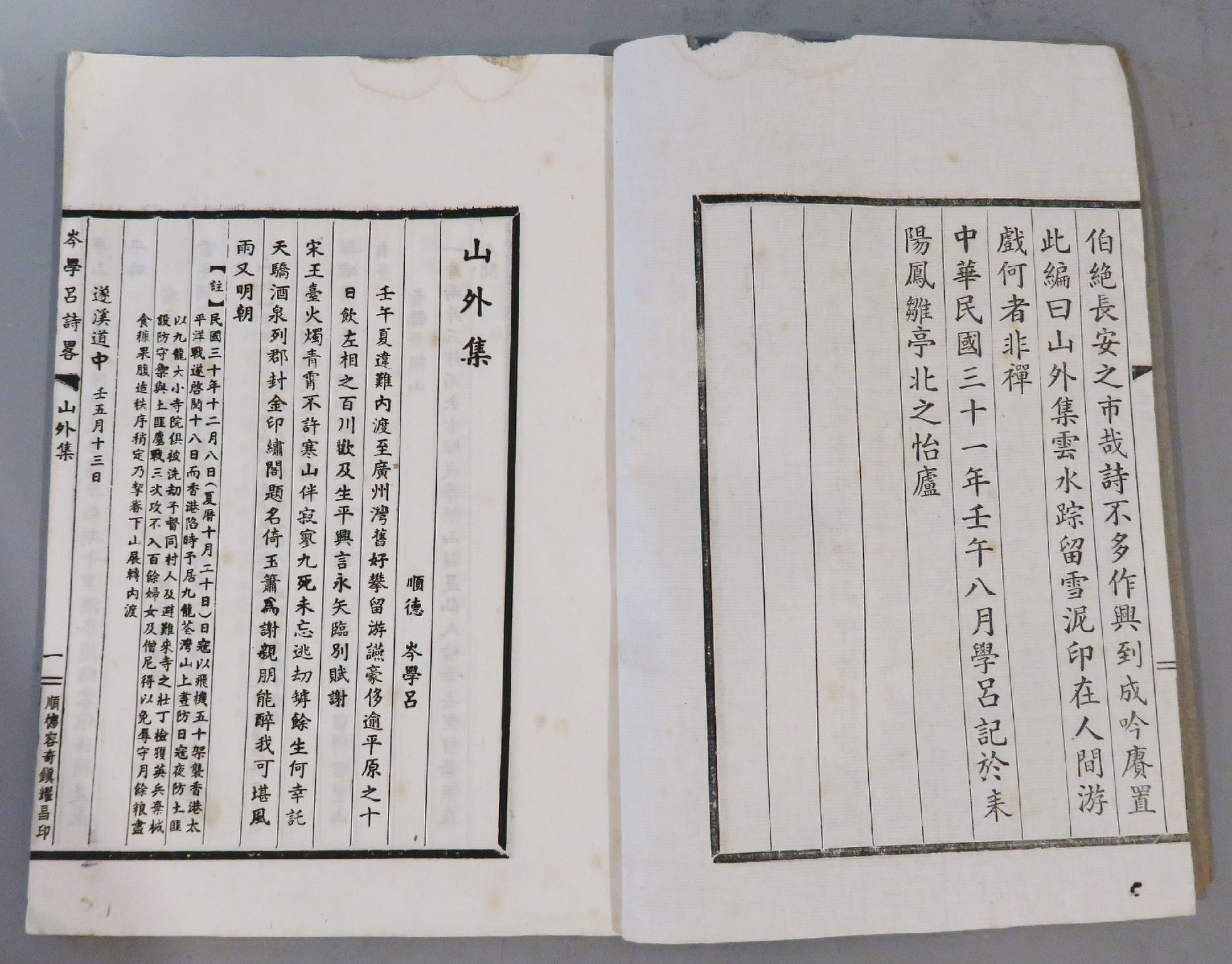 中华民国三十七年顺德容奇镇耀昌印石印本岑学吕编纂《岑学吕诗略-山外集》不分卷