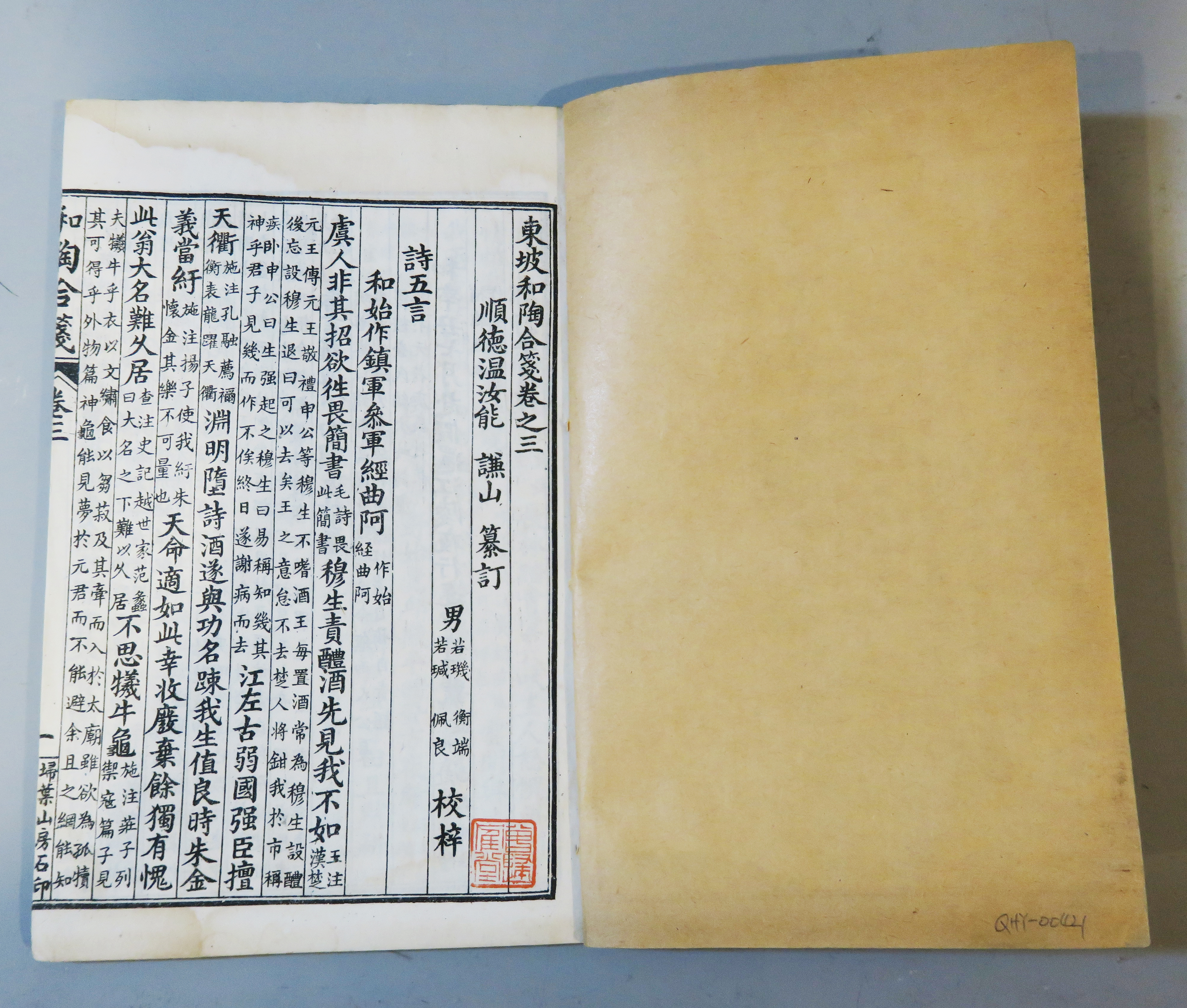 中华民国十四年听松阁刻本苏轼撰温汝能纂订《东坡和陶合笺》卷三、卷四
