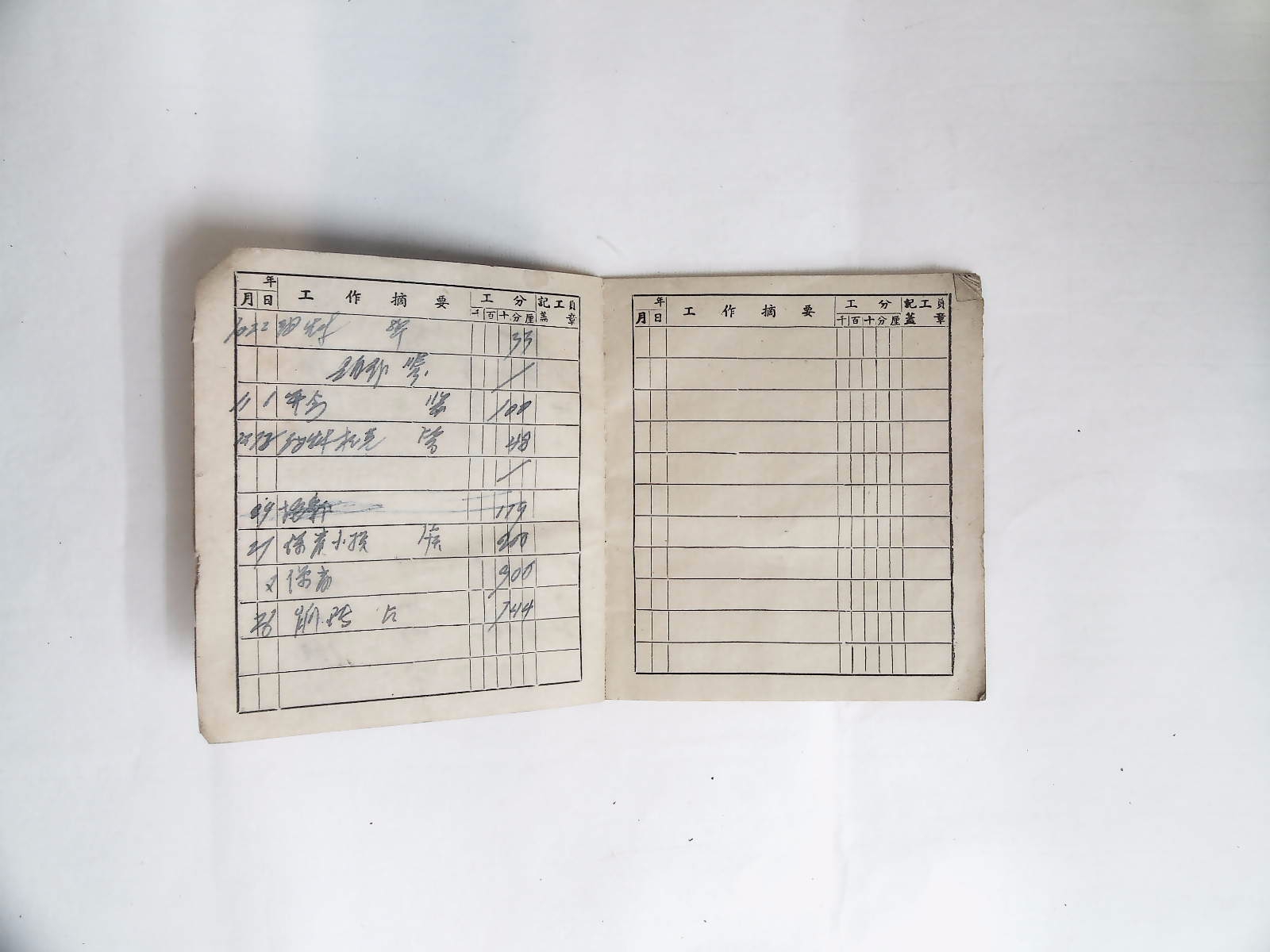 顺德县农业生产合作社《社员工分手摺》
