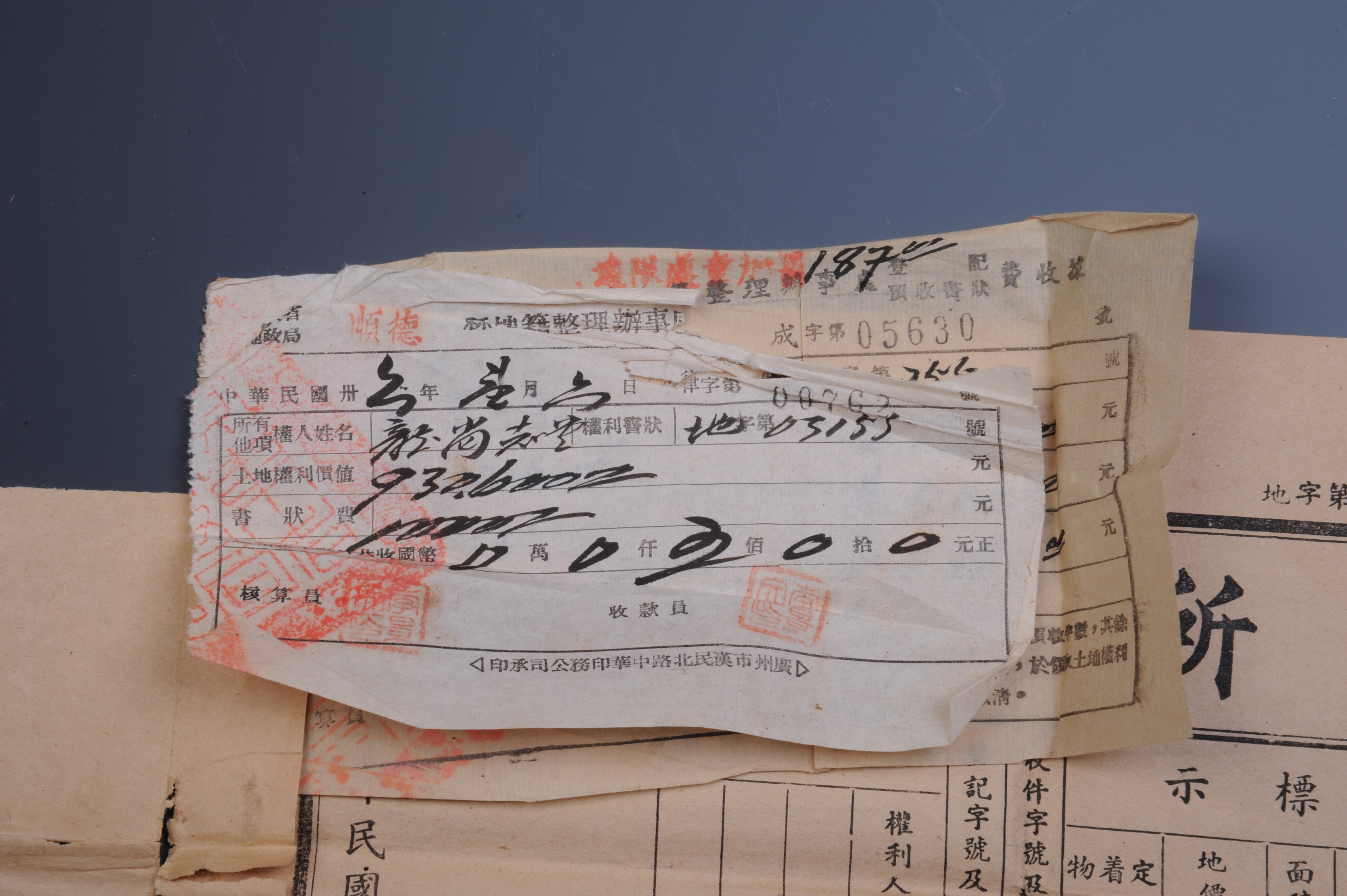 1947年土地所有权状(附1946年、1947年顺德县地籍管理办事处收据二张)