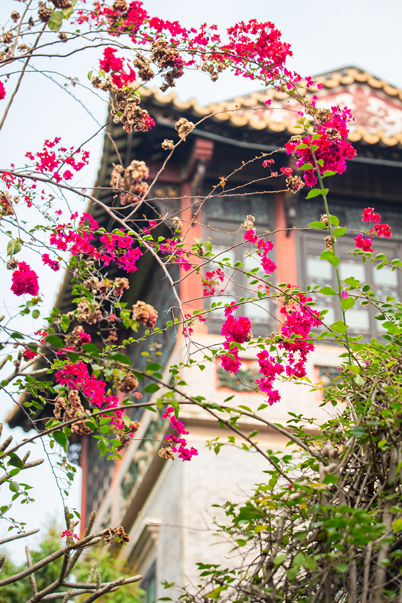 留芬阁还有一绝,那就是东面贴墙装置的陶制出水筒。它从三层阳台直通到地面,烧制成一根又粗又笔直的茅竹形状。翠绿的“竹叶”贴着青砖墙身而“生长”,顶端有一燕巢,两只金黄色的大鸟护卫着一圈小鸟,形象逼真,成为游客眼中一绝。