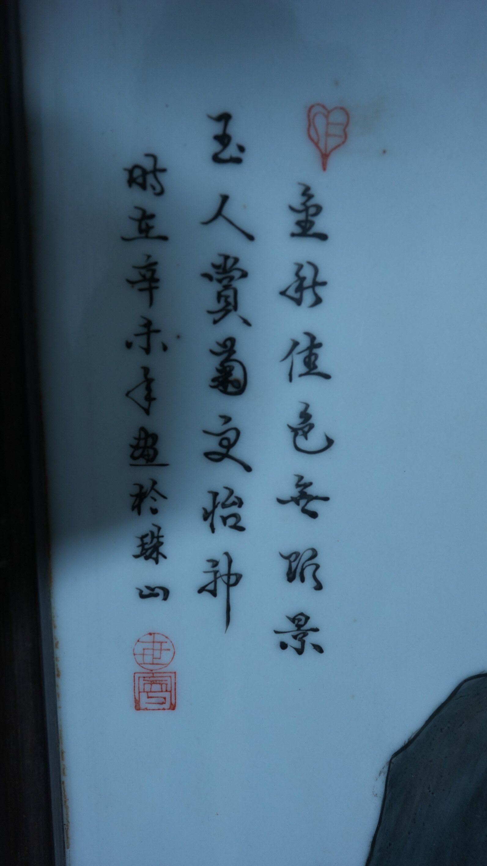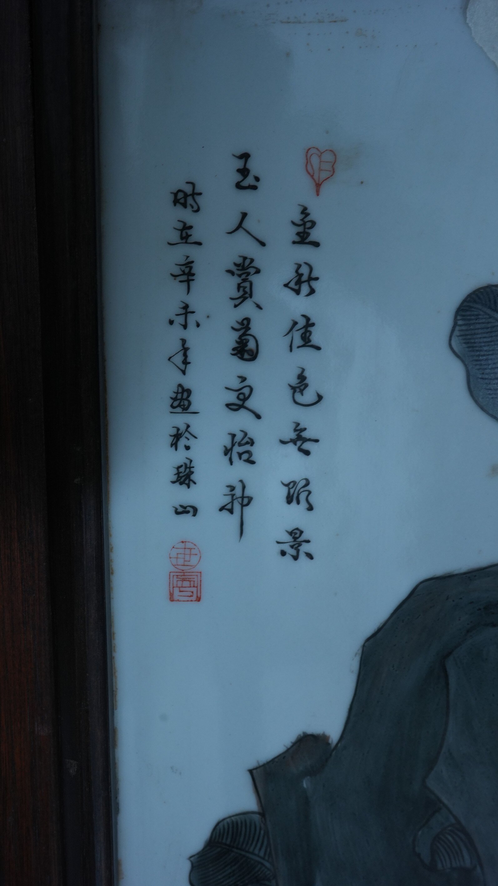 当代玉人赏菊图瓷板画