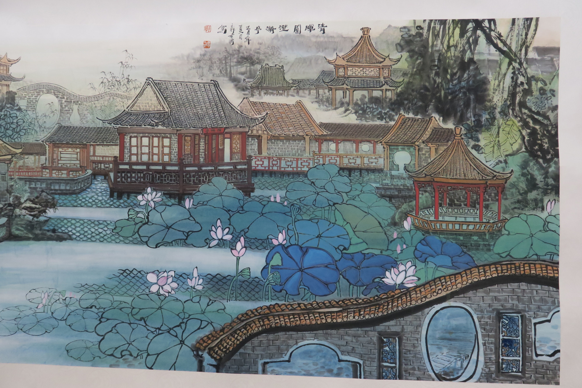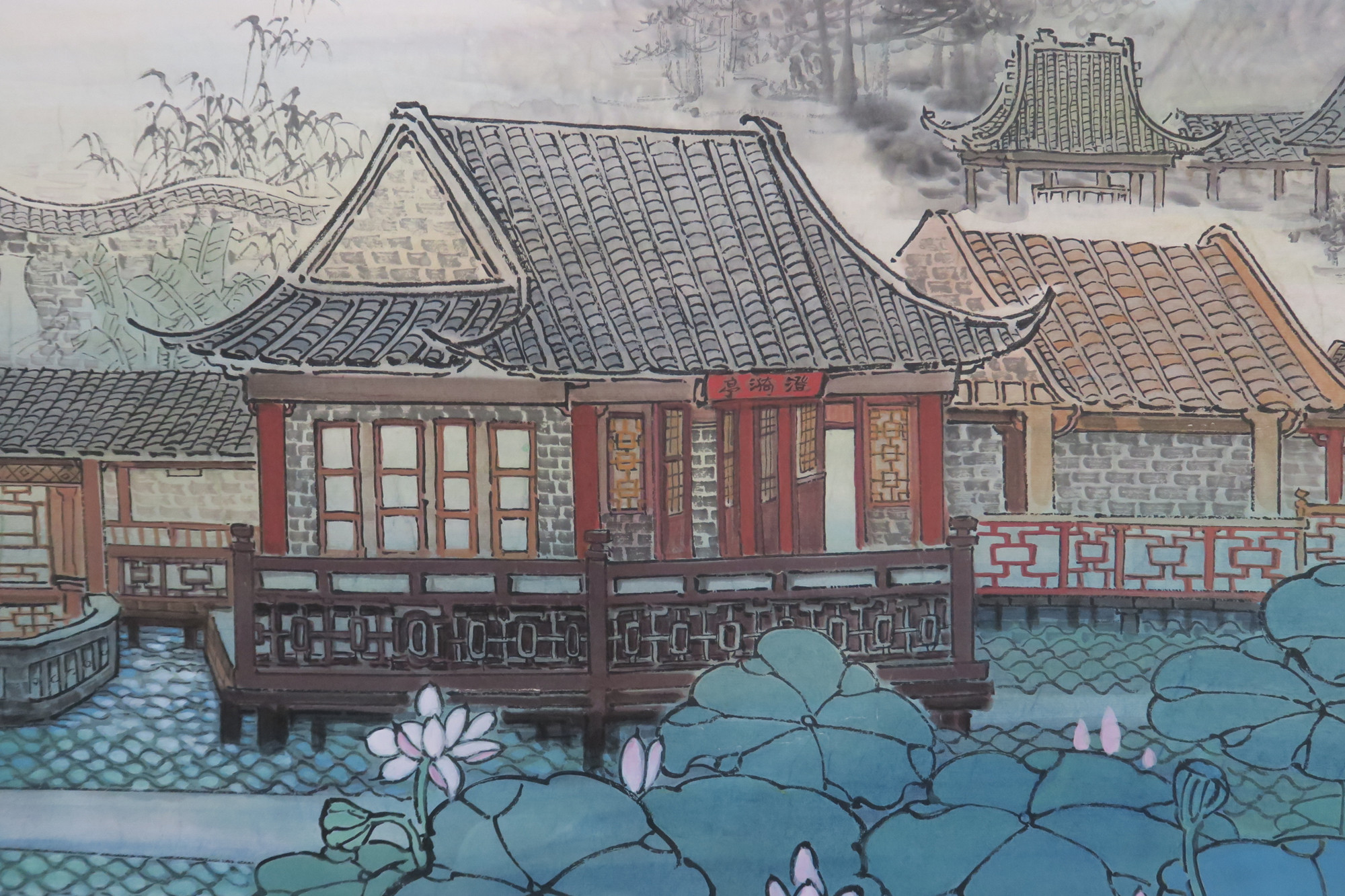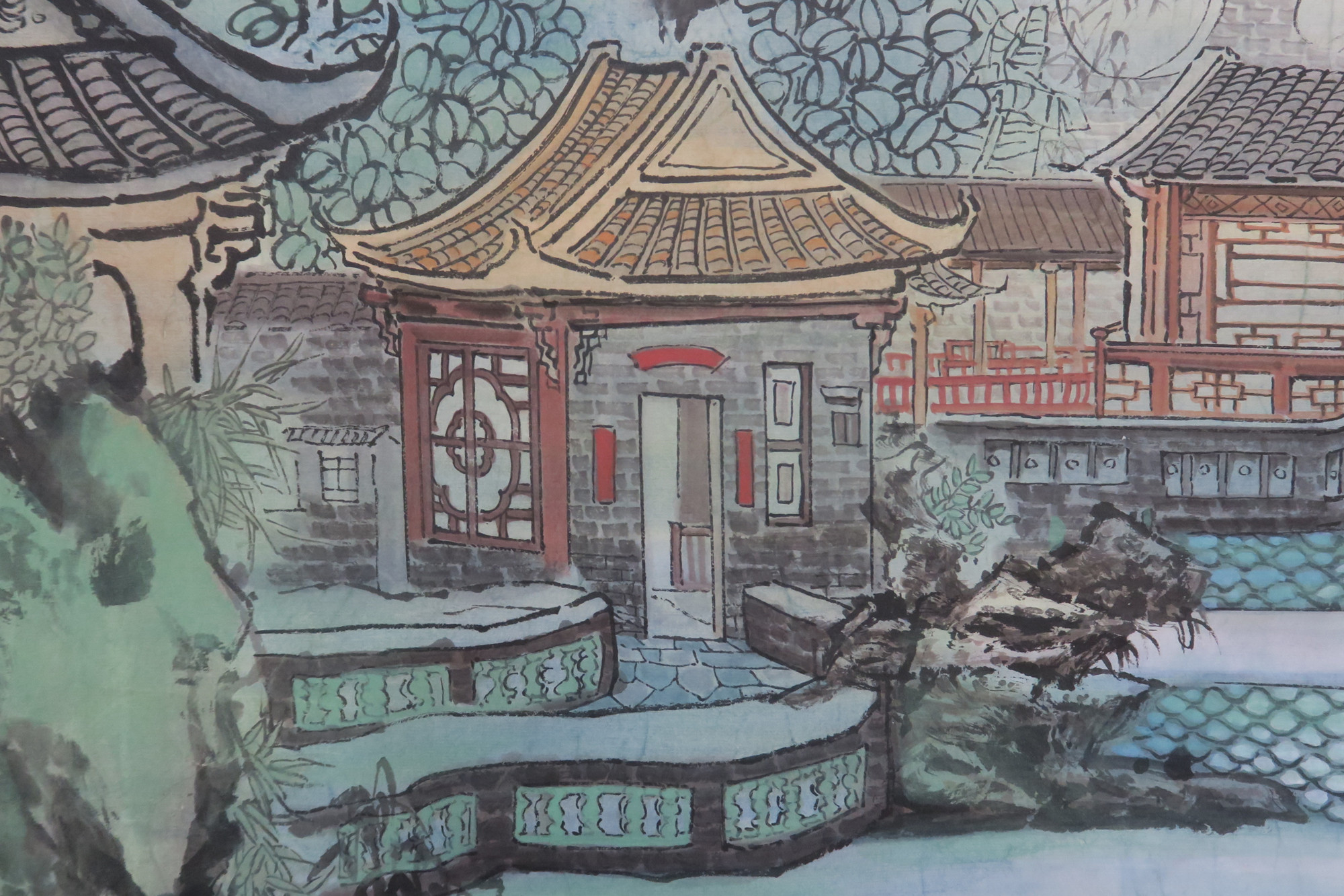2016年郭有河国画《清晖园澄漪亭》图镜片