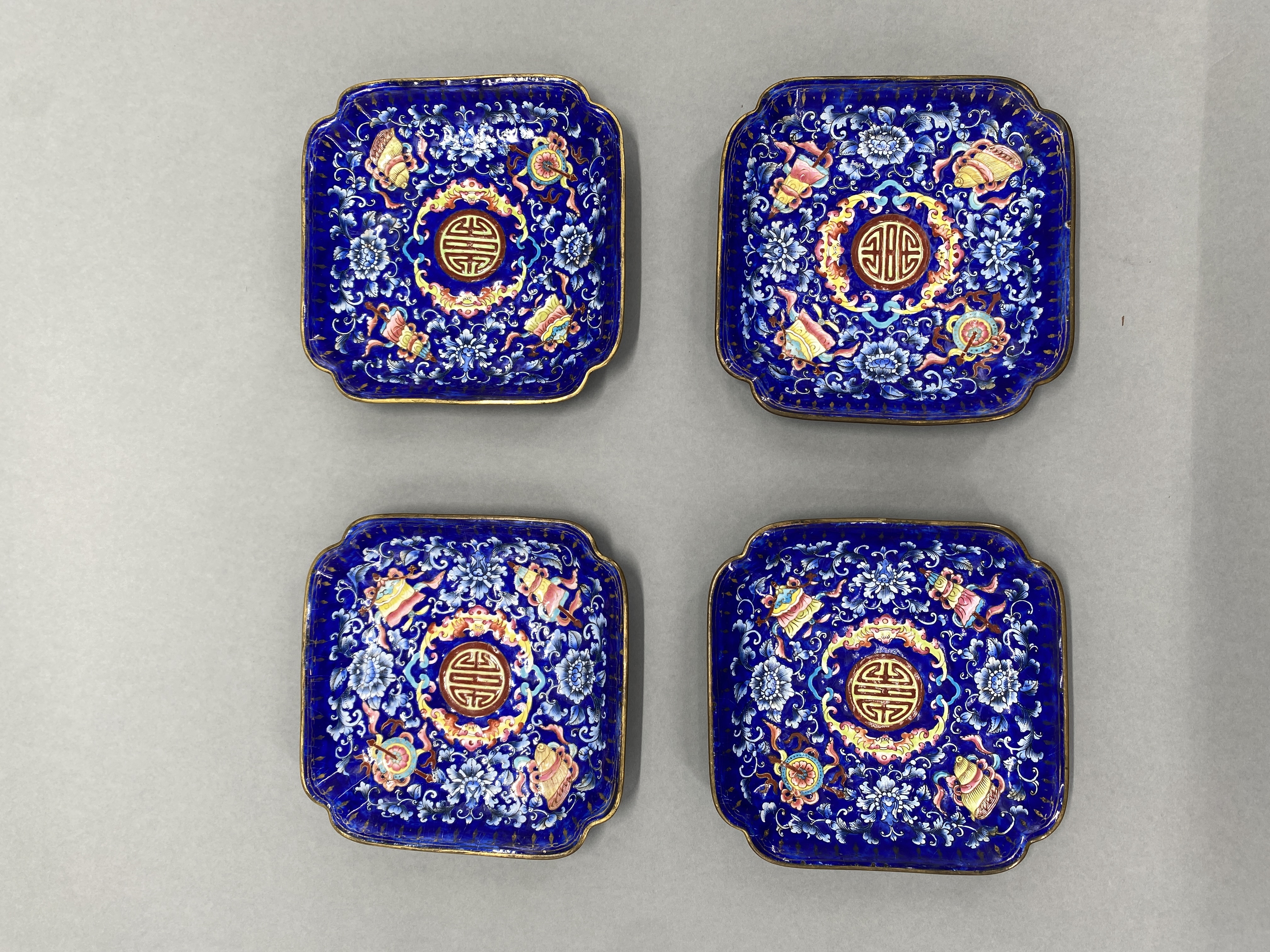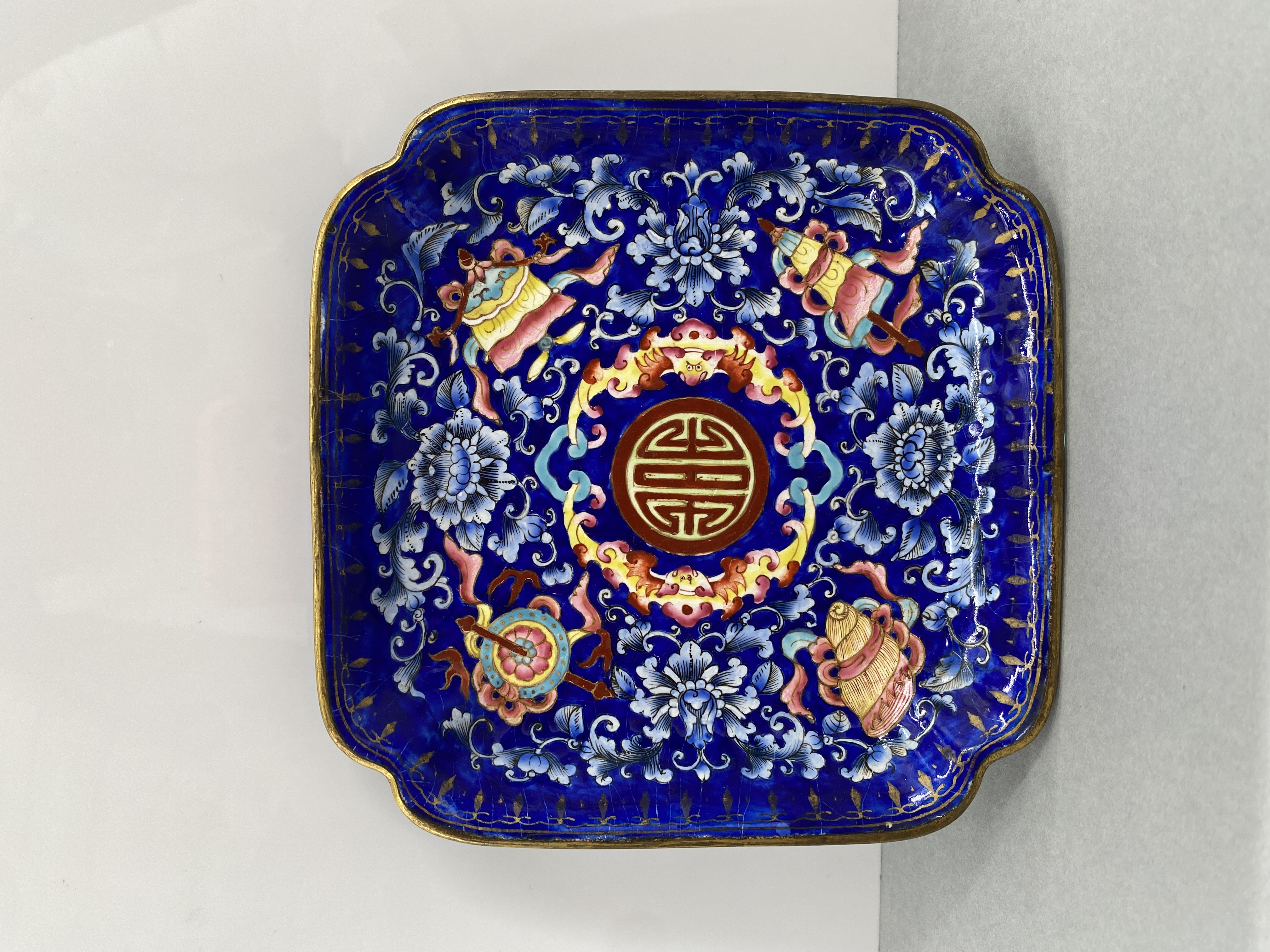 清广珐琅福寿八宝纹倭角方盘