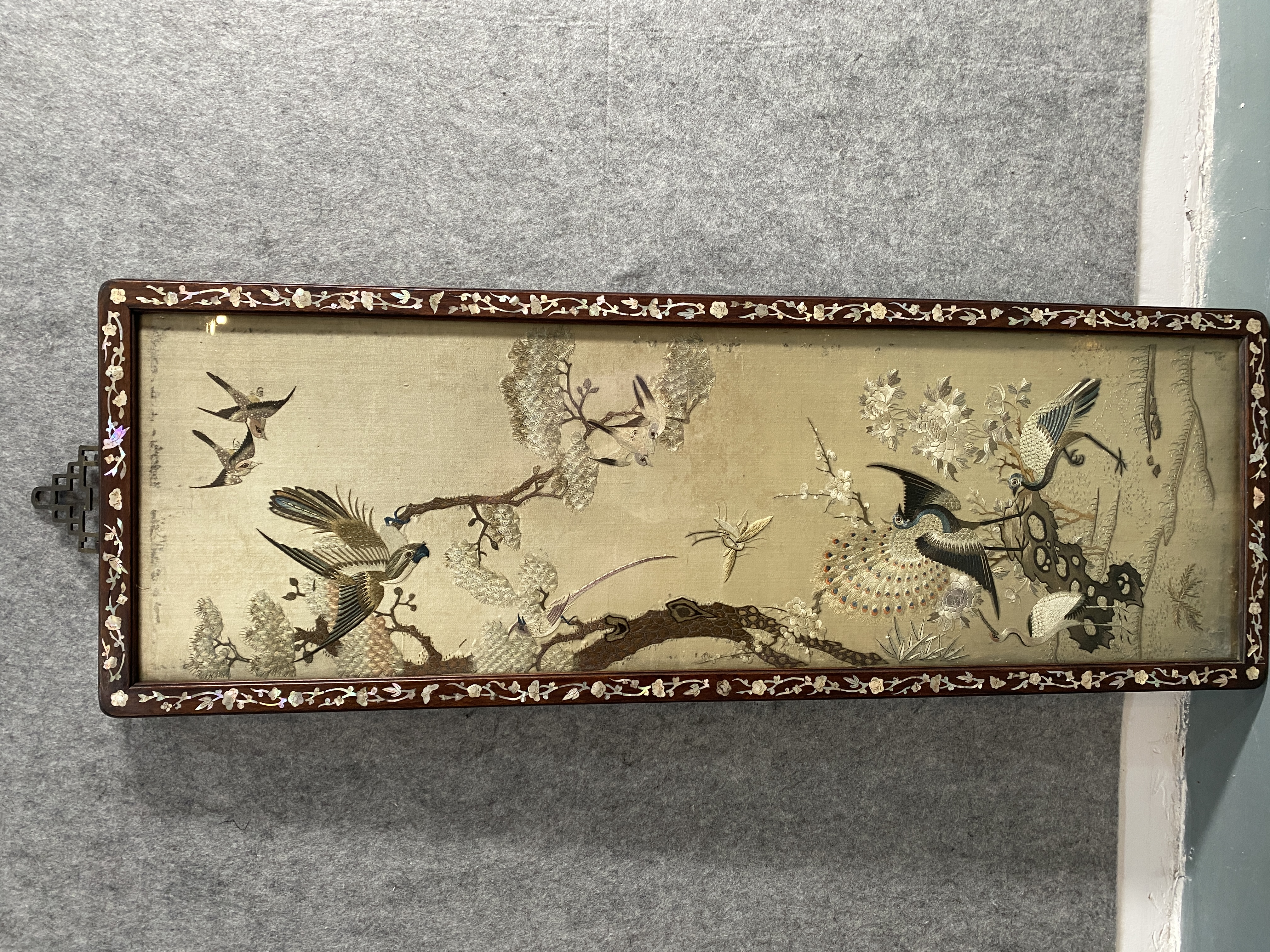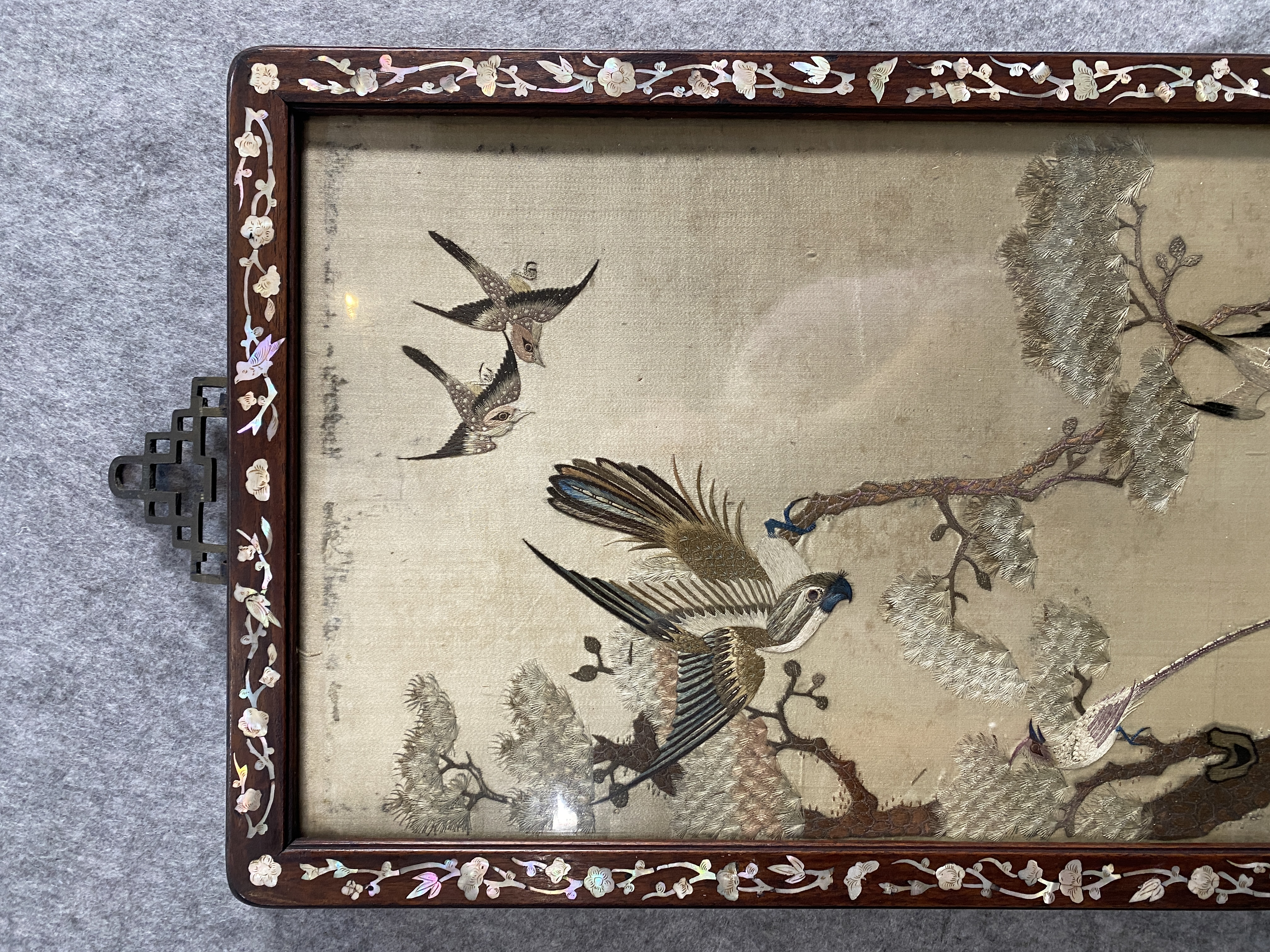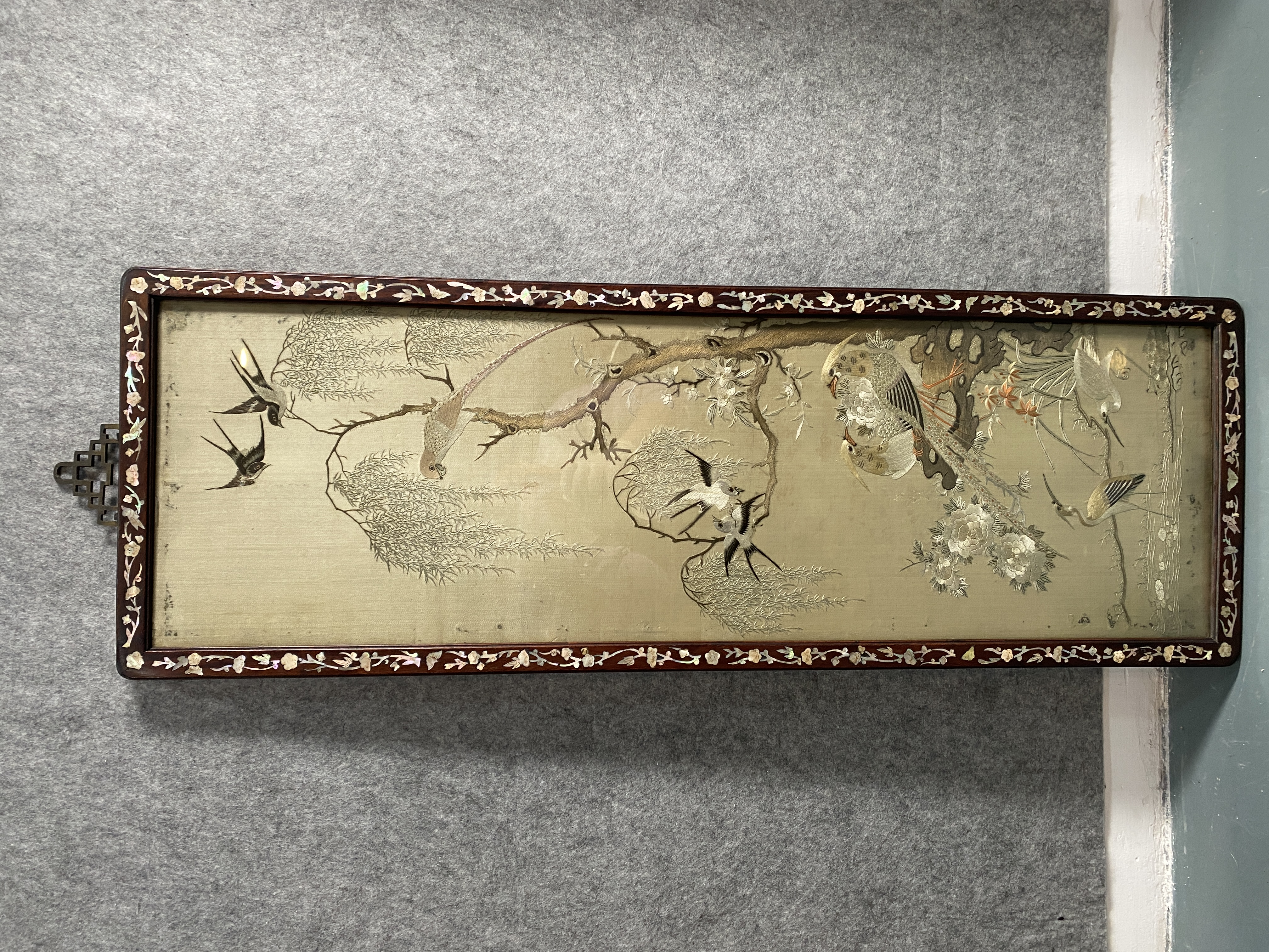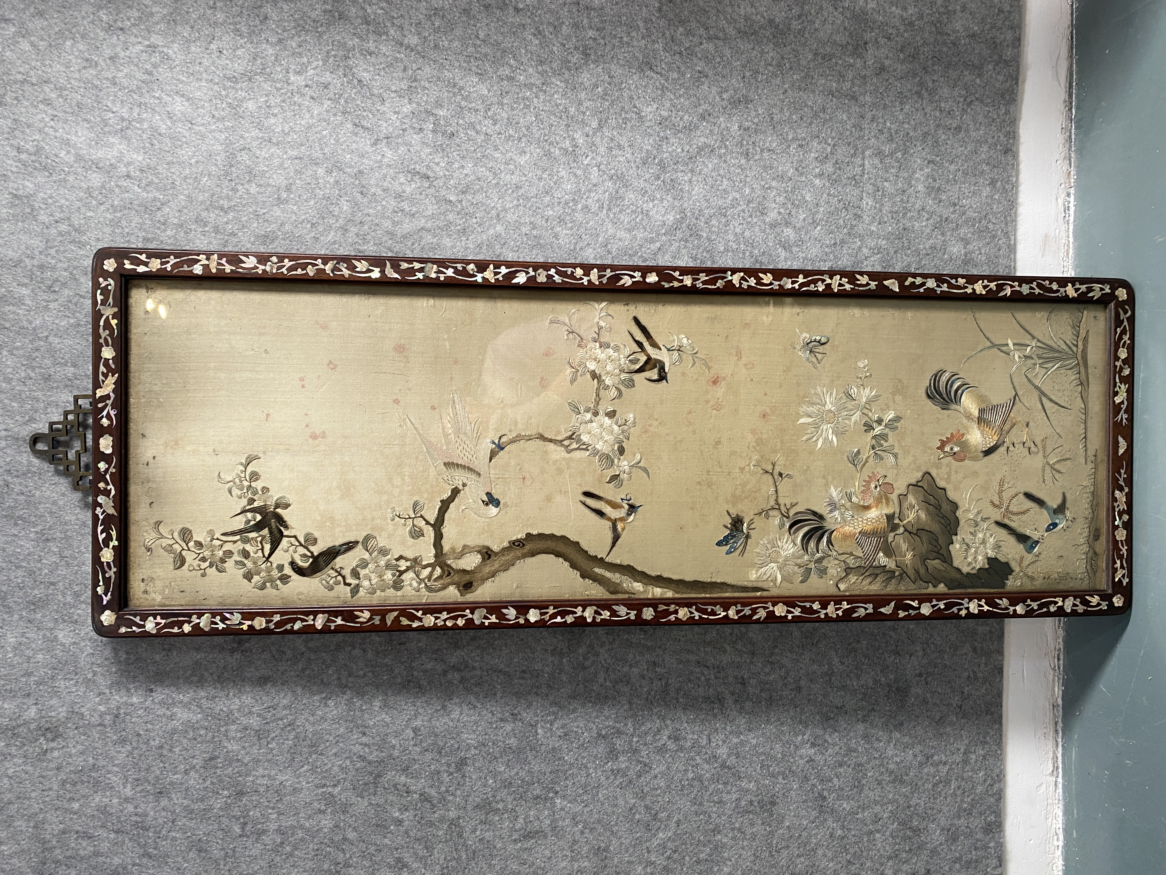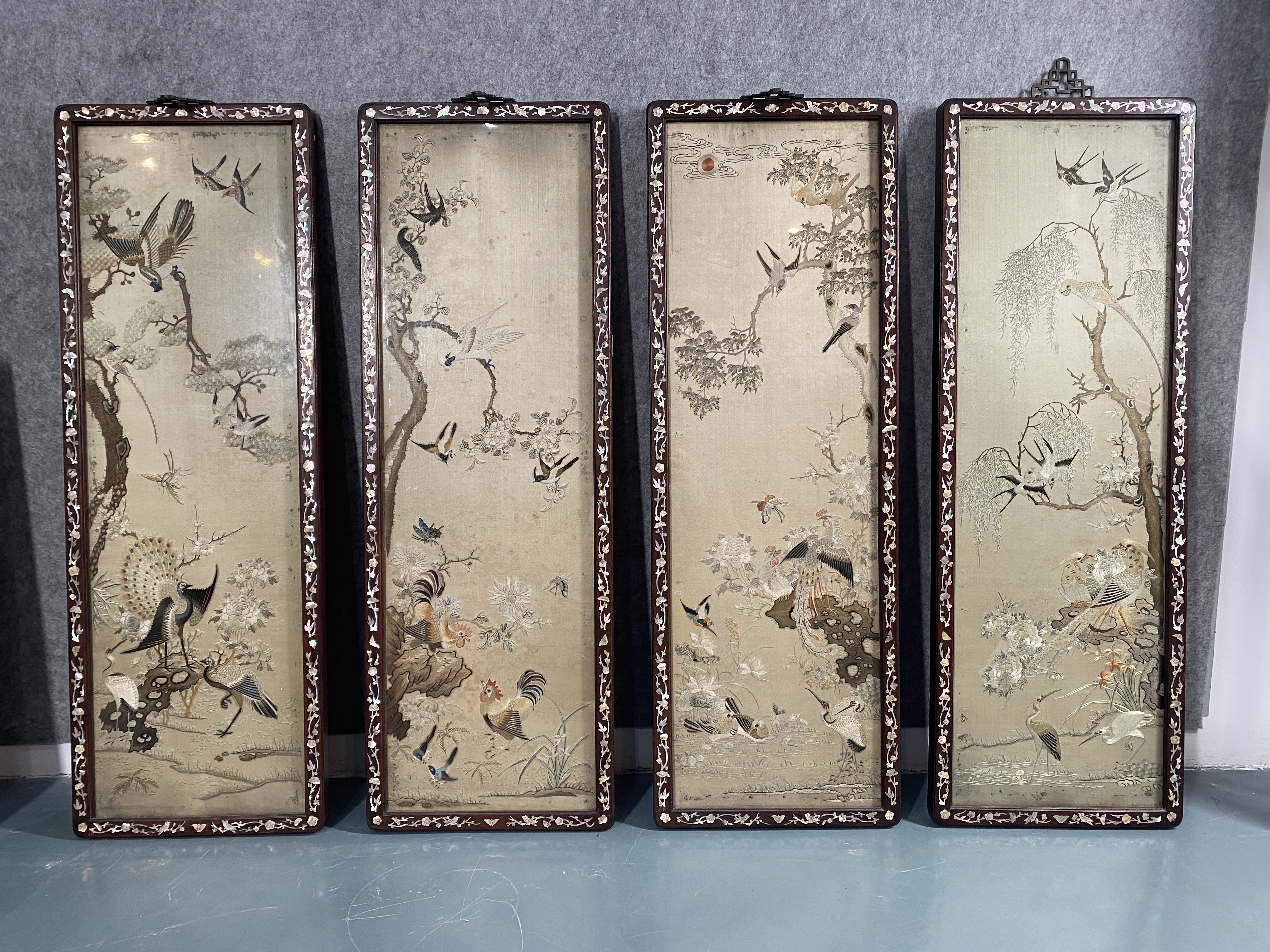 清红木螺钿框广绣百禽图挂屏(四屏)
