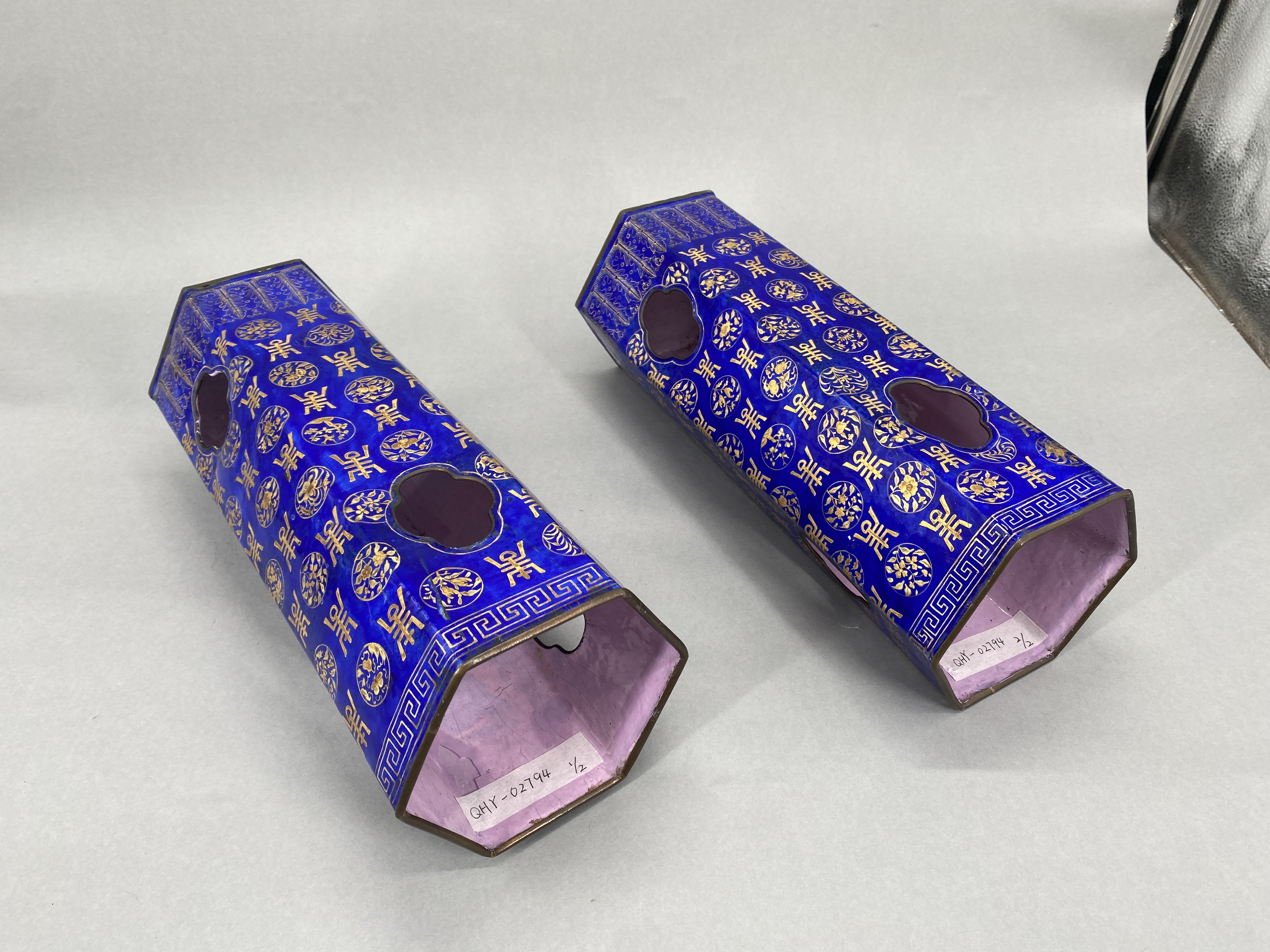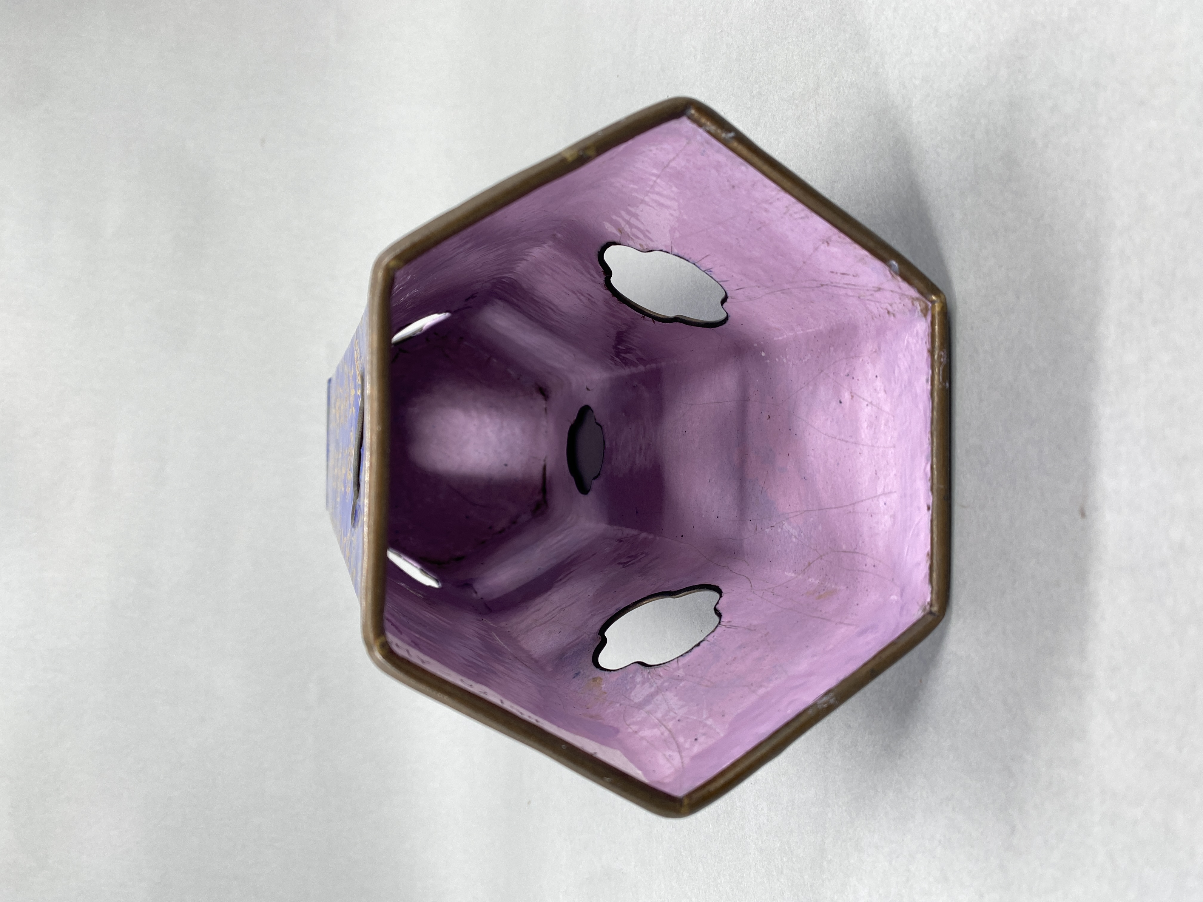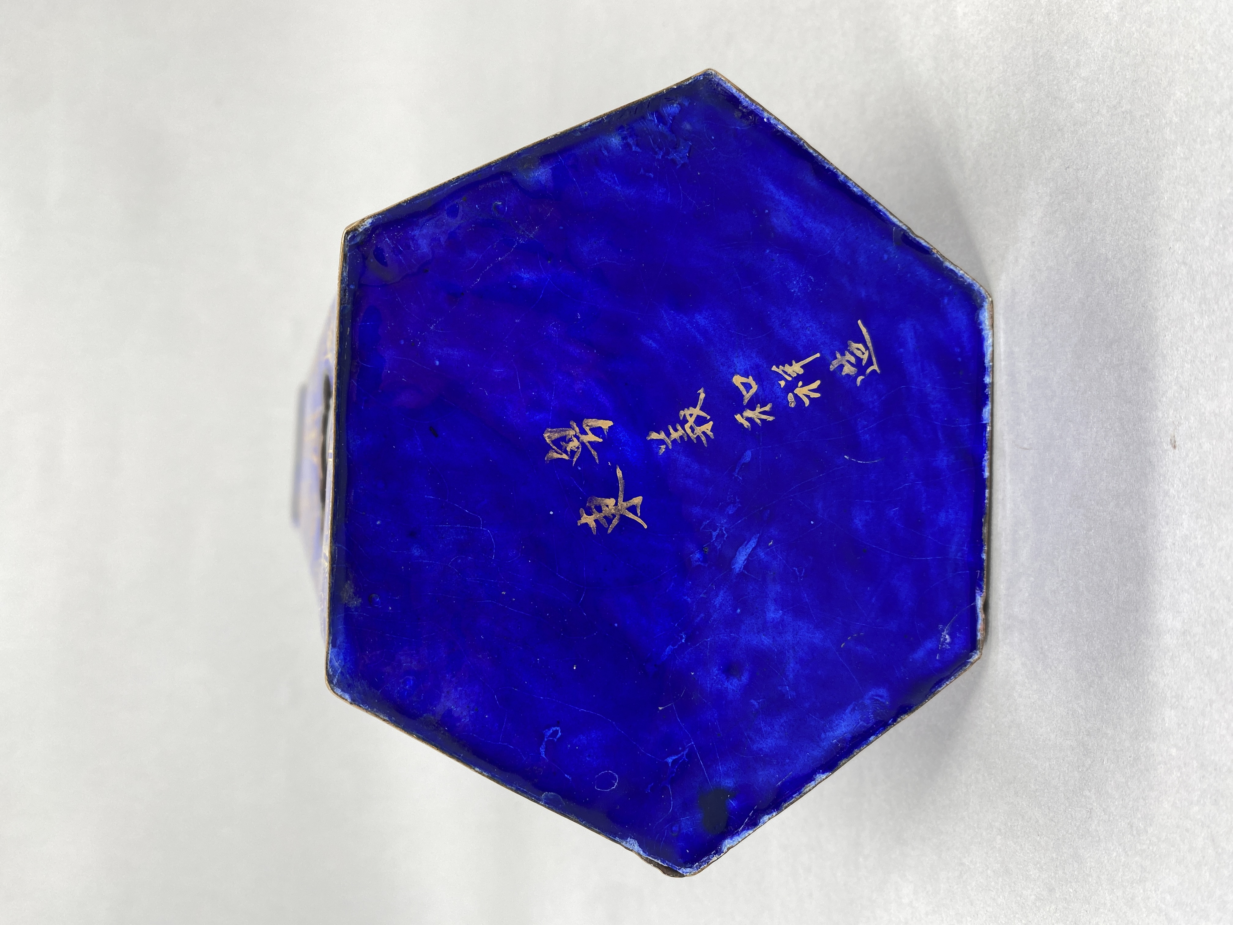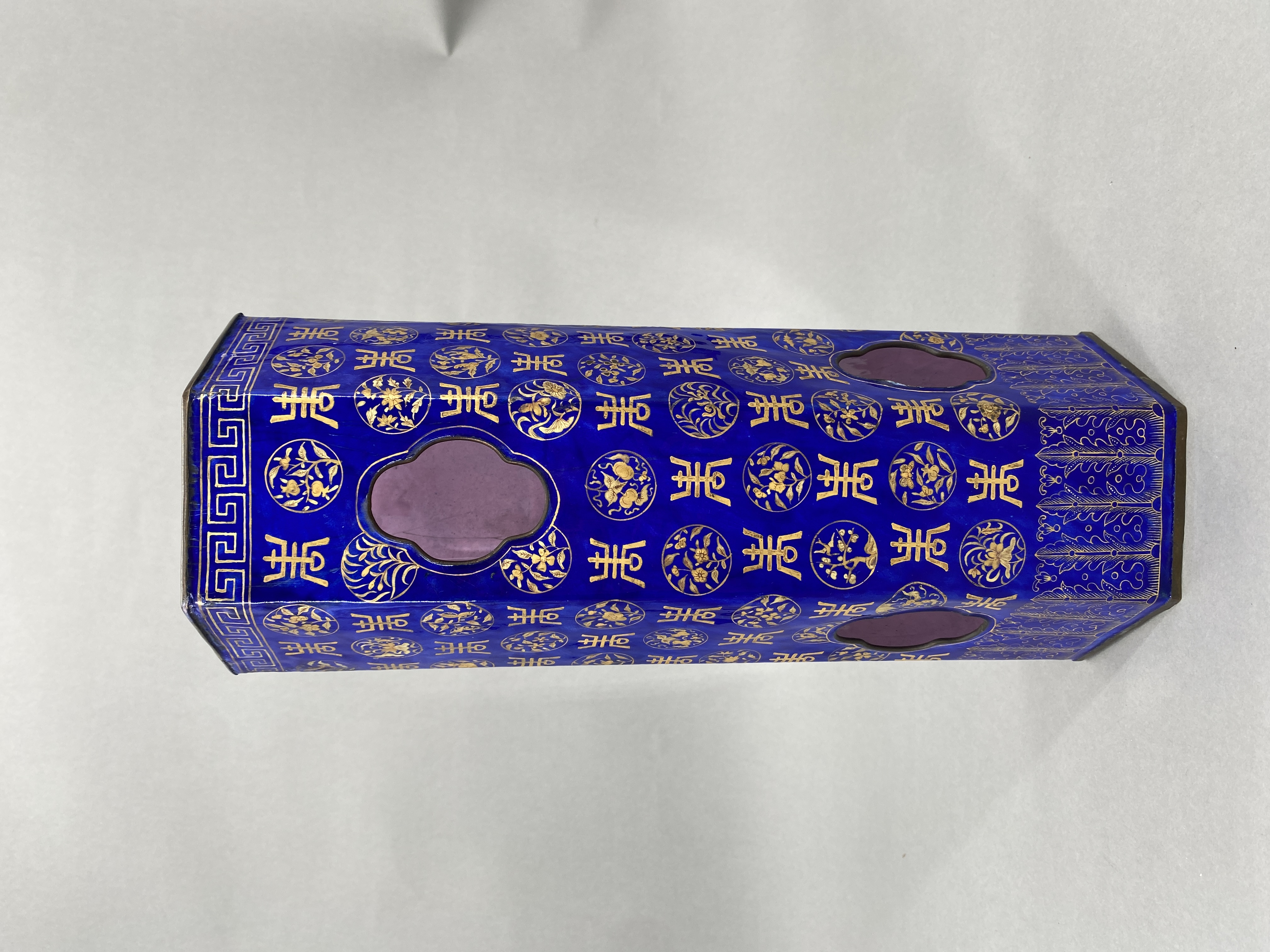 19世纪铜胎蓝地描金寿字皮球花纹六角帽筒