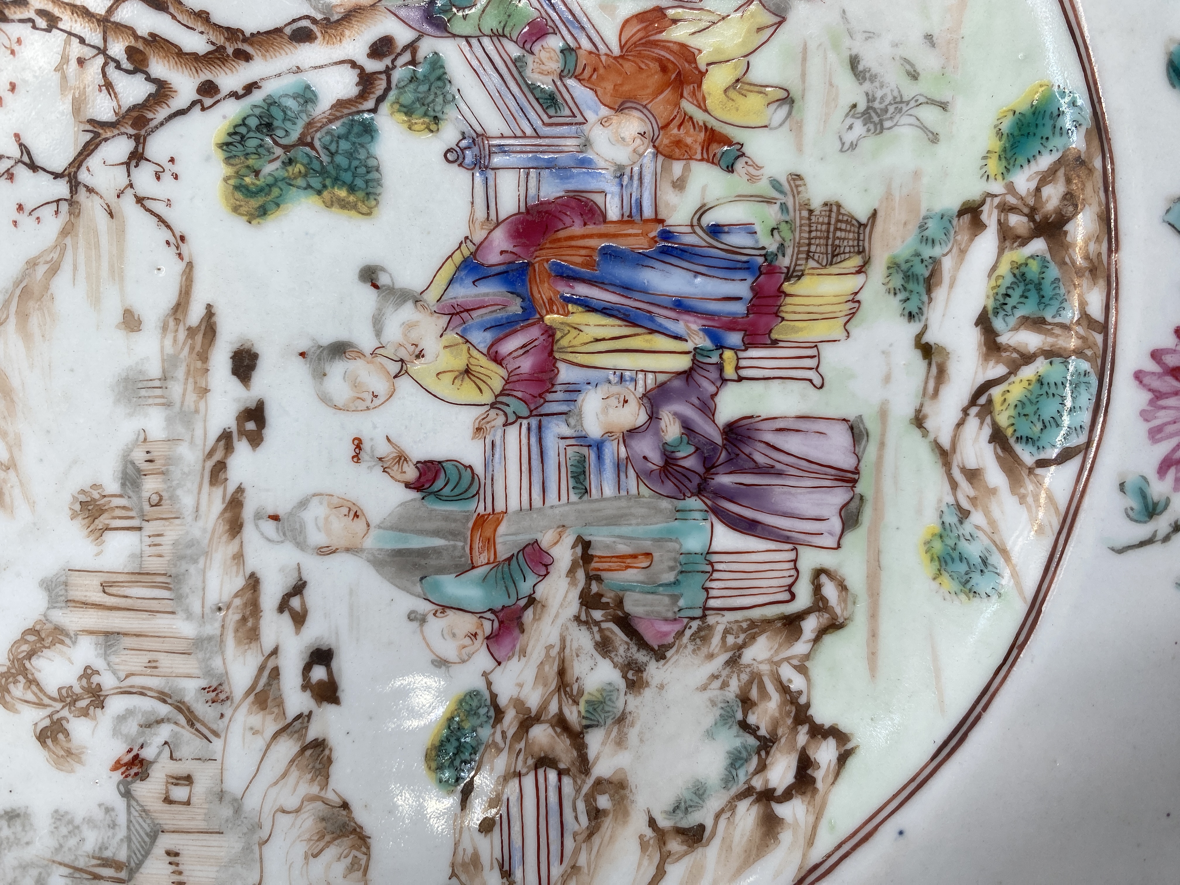 清广彩庭院人物图八方盘