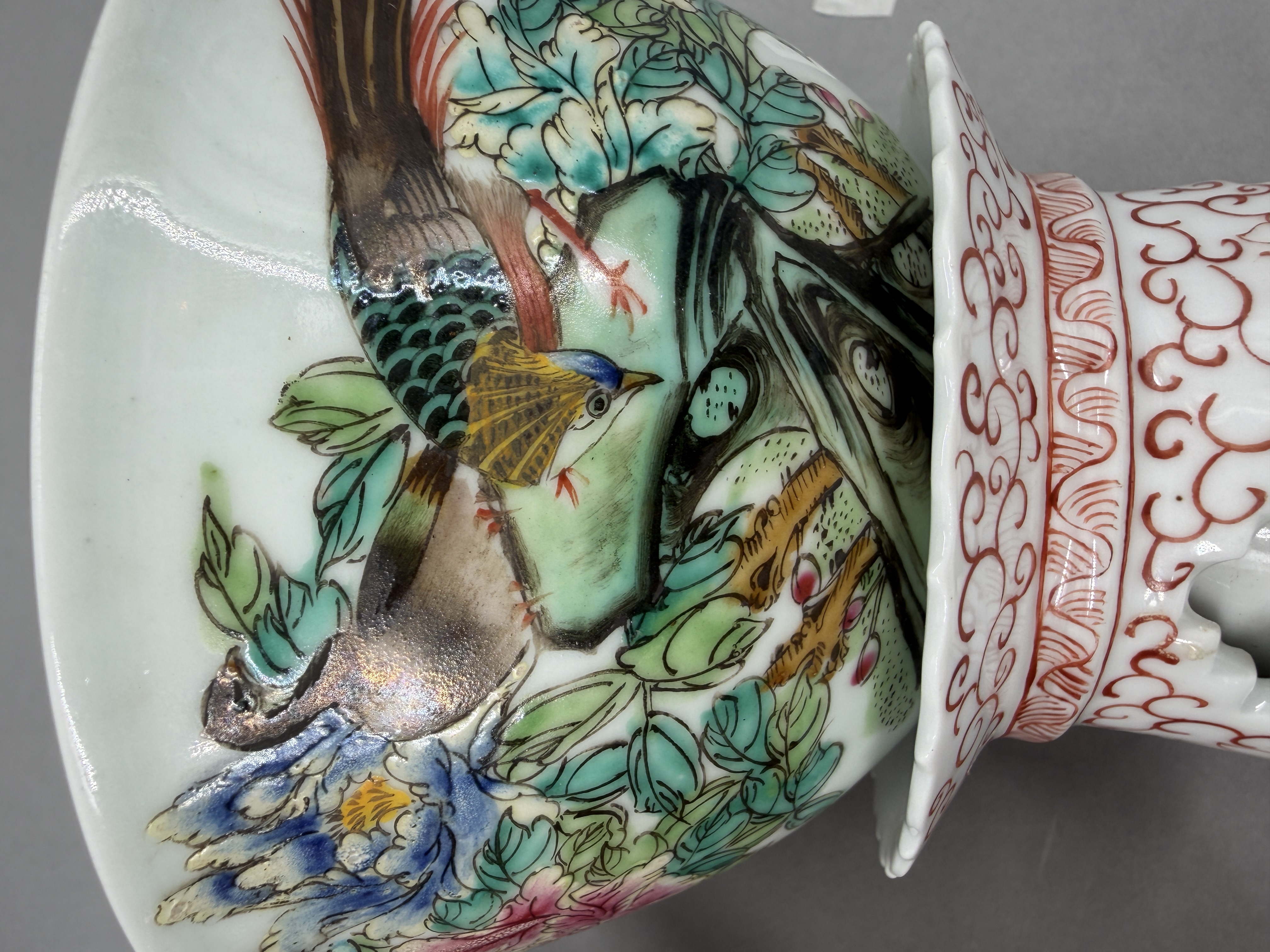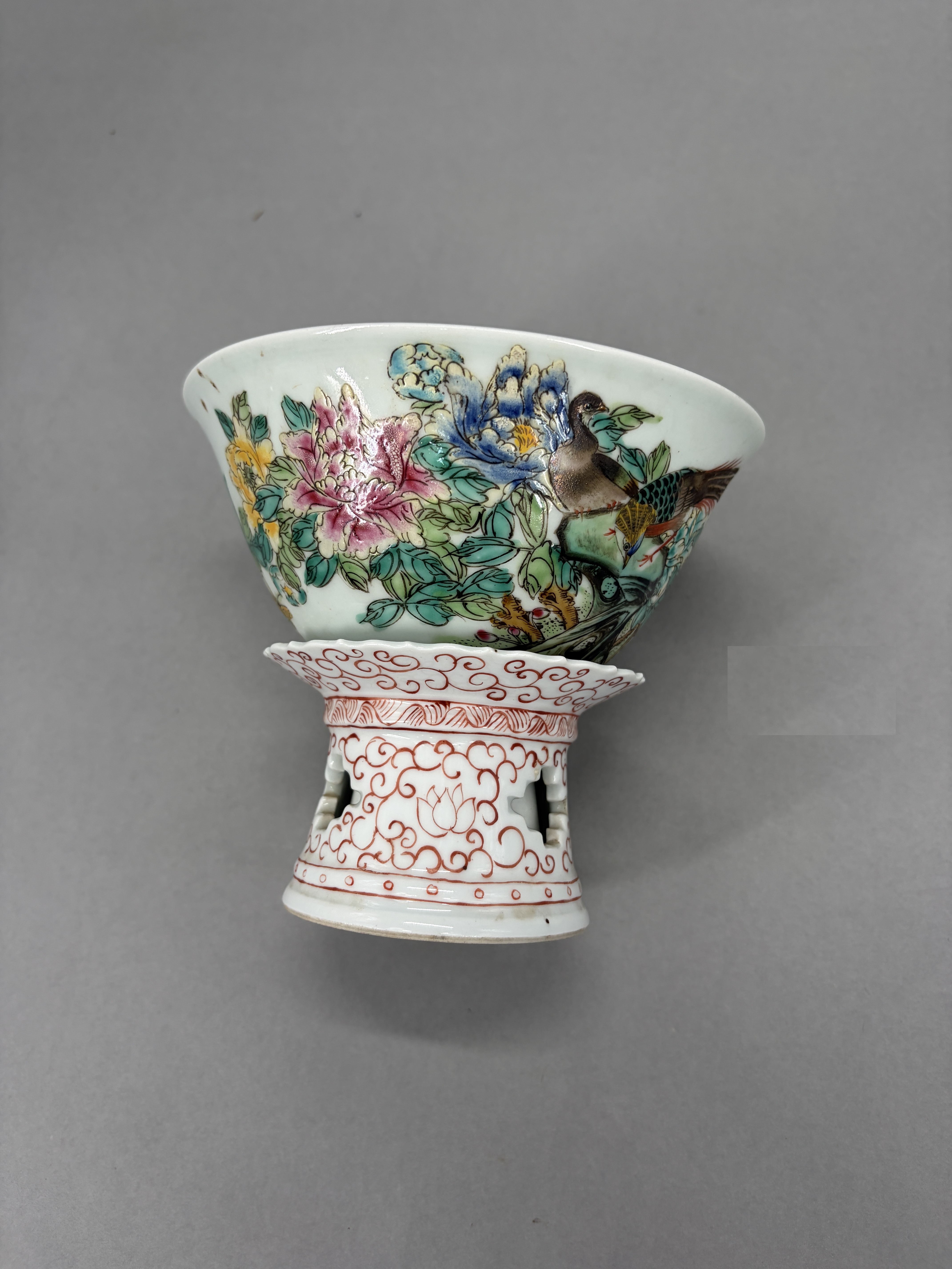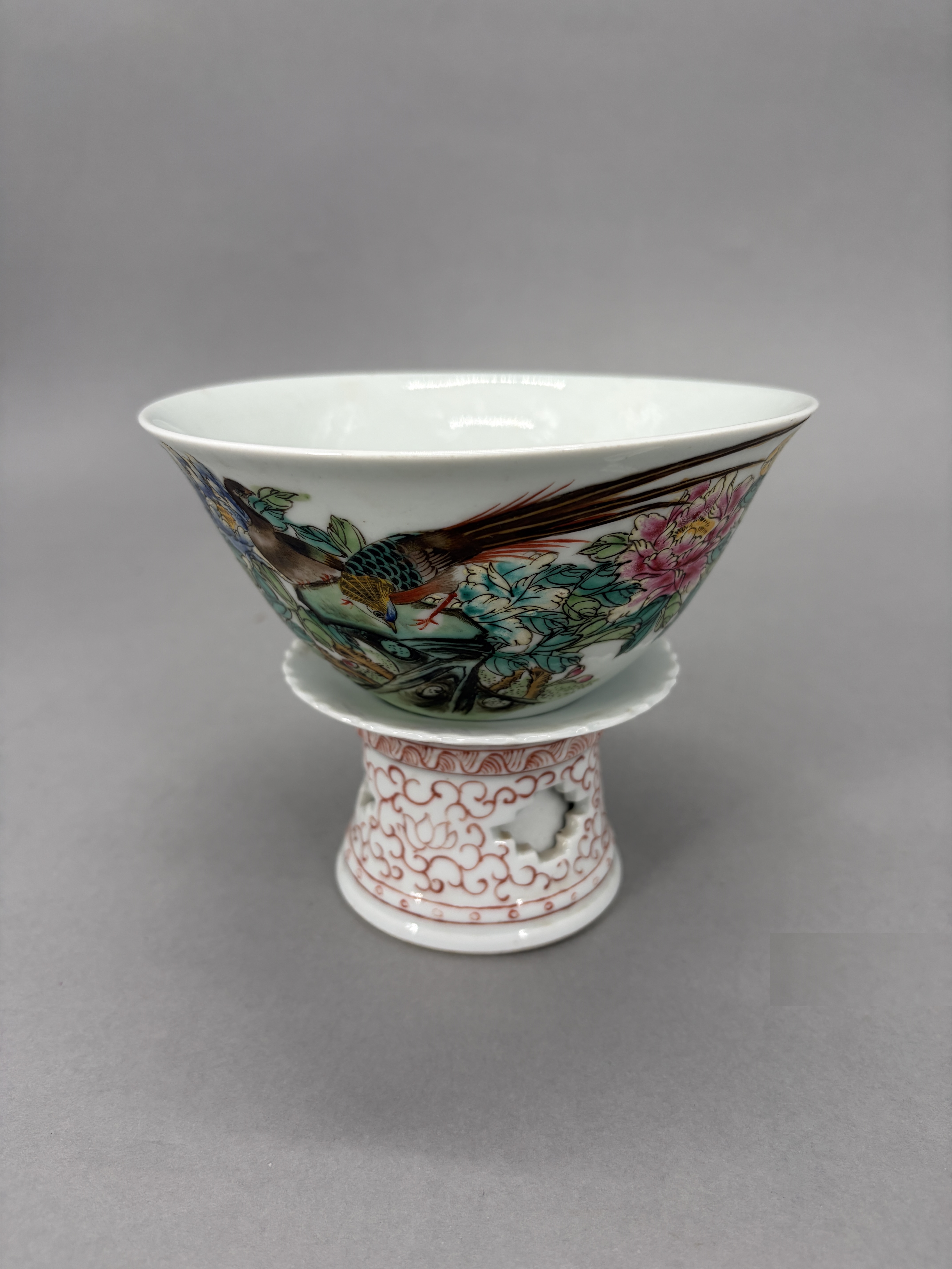清光绪款粉彩花鸟纹高足杯(带底座)