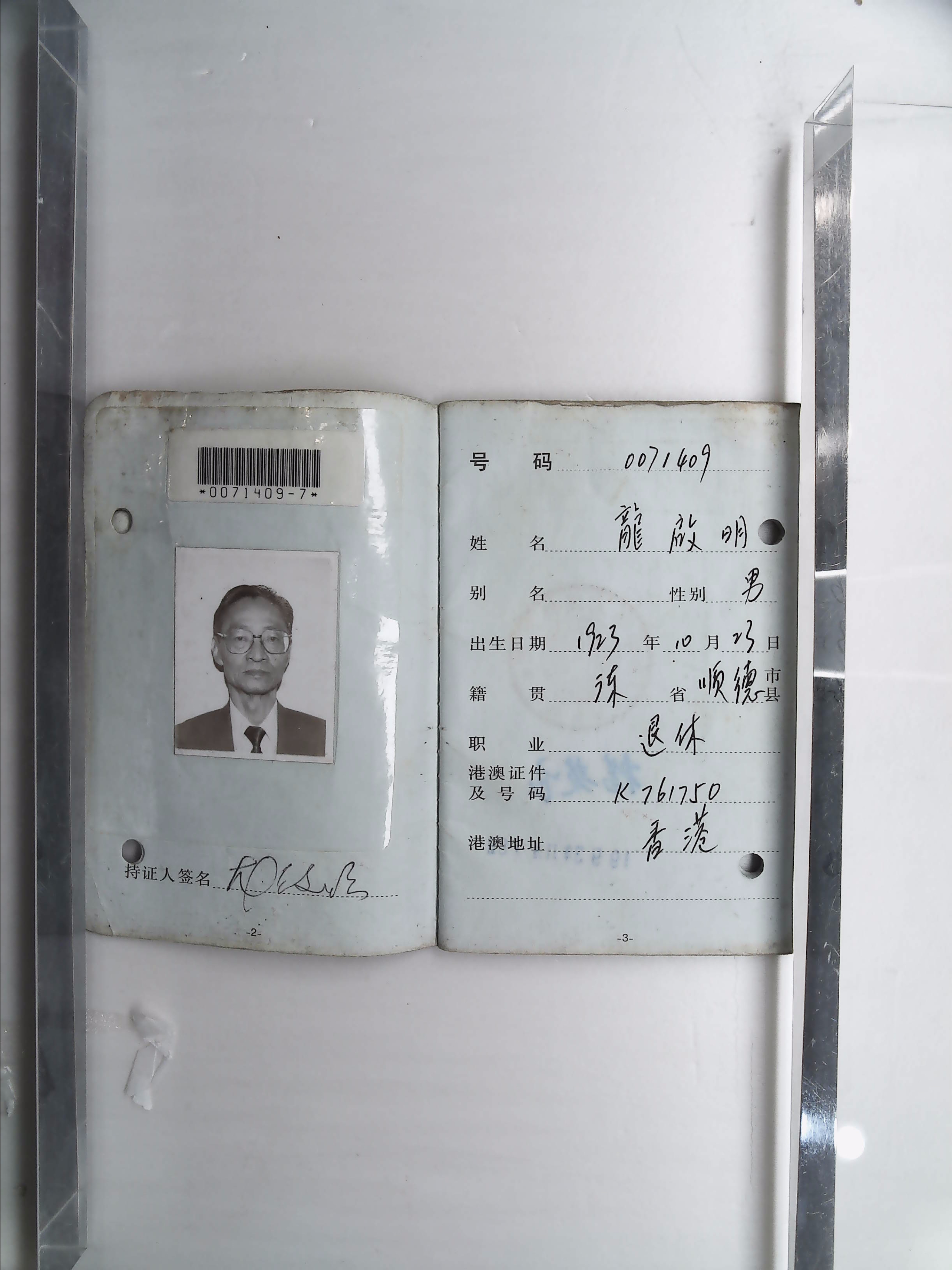 当代龙启明港澳同胞回乡证