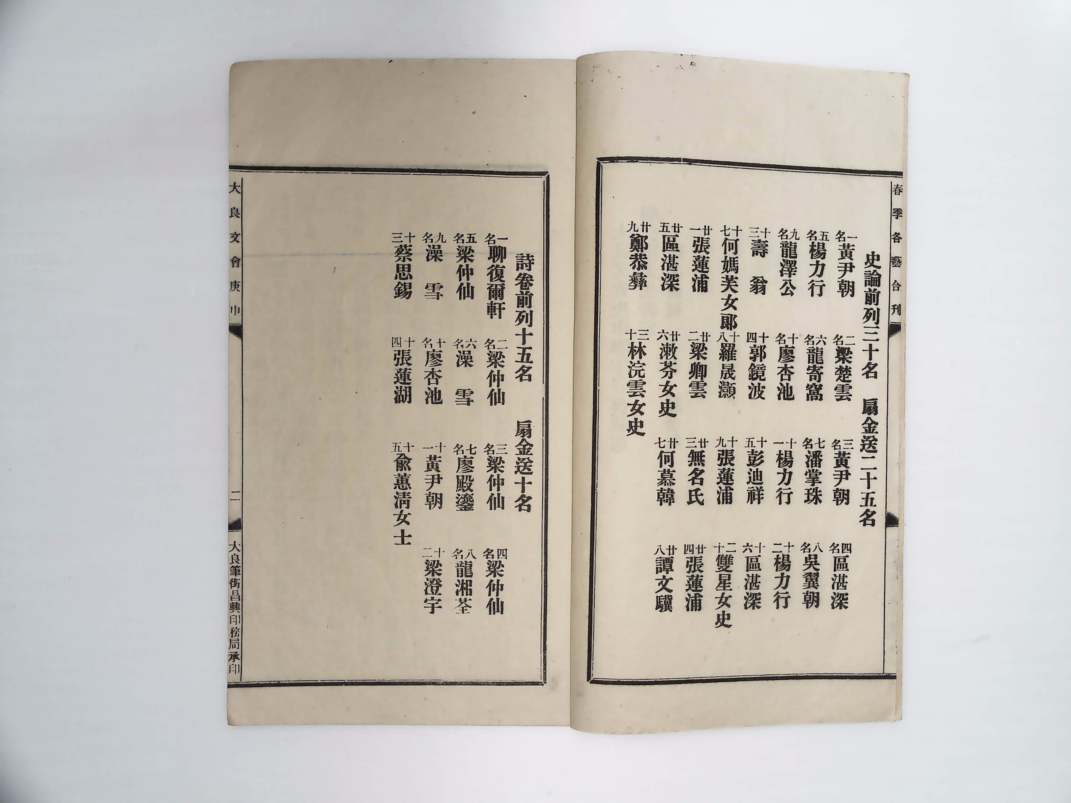 1920年、1921年《大良文社各艺合刻》刻本