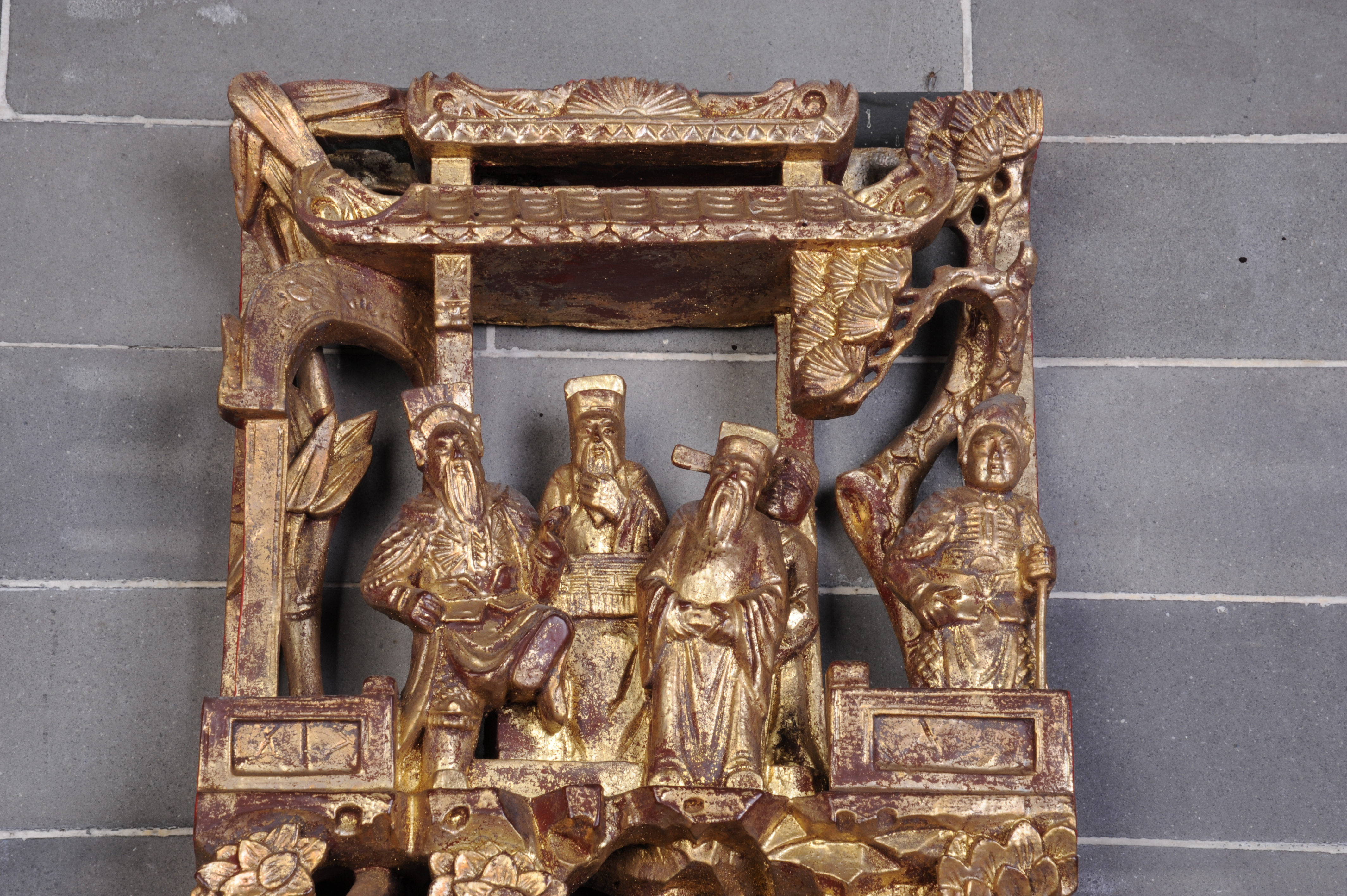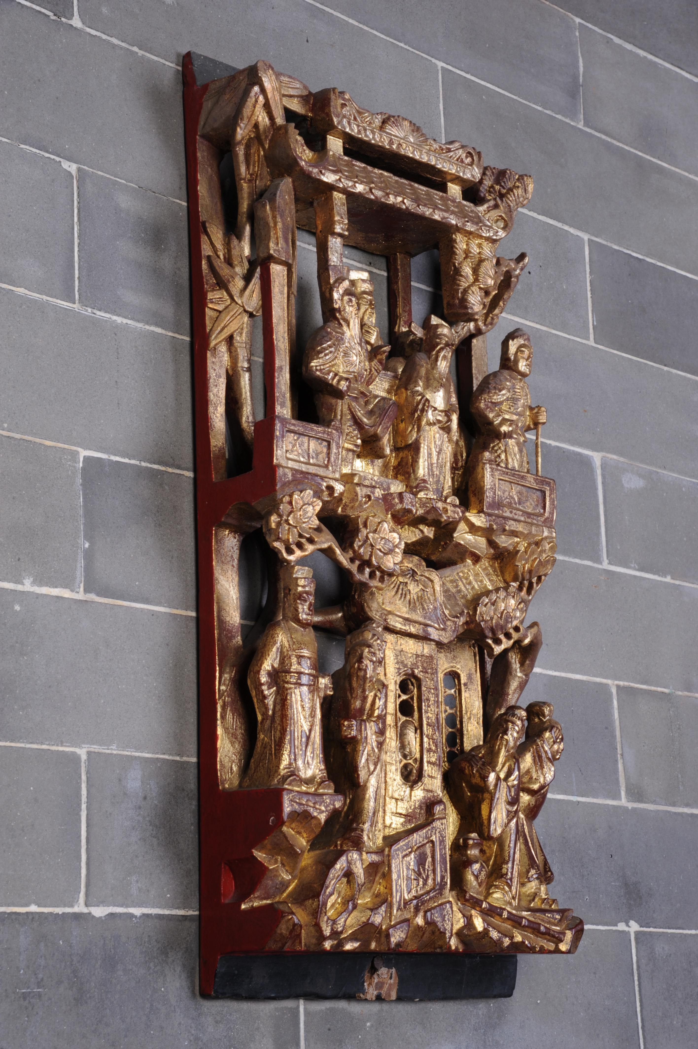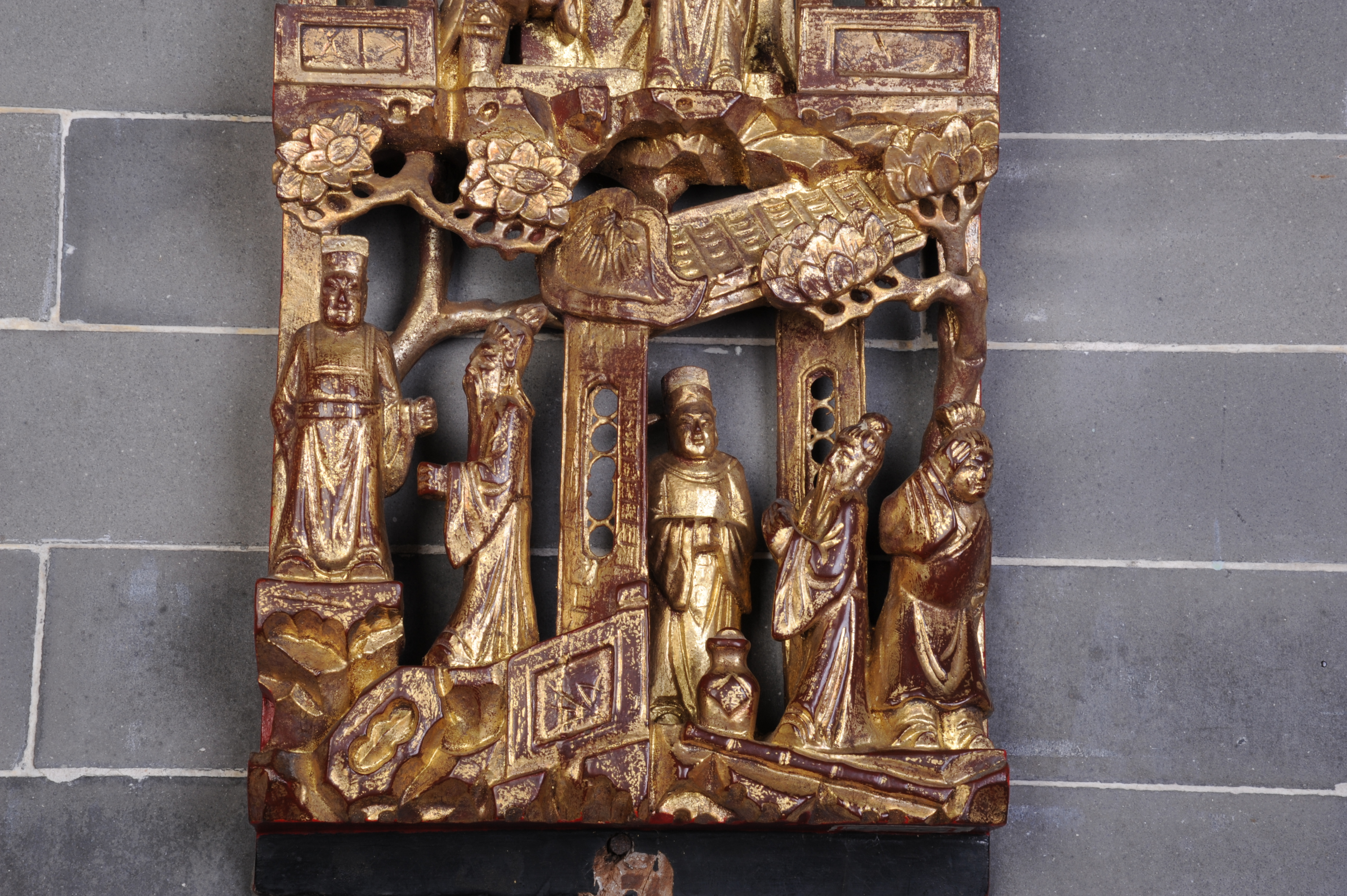 清金漆木雕花板