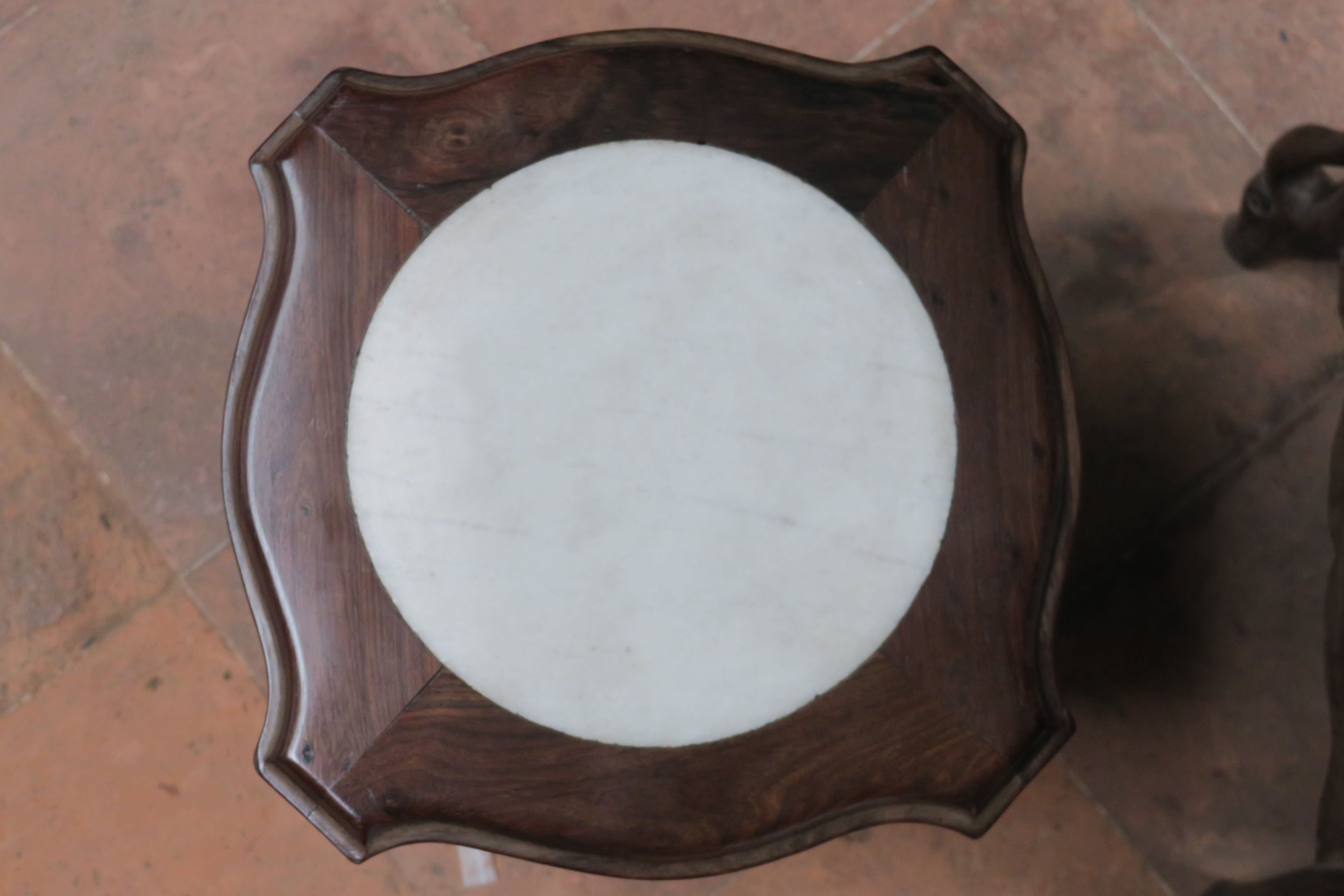 当代红木镶云石倭角凳
