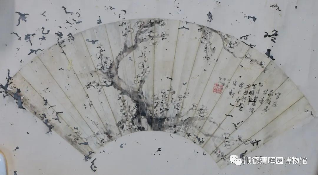 值得一提的是,在岑世昌先生的家中还收藏着龙氏家族成员龙玉书等人的字画,透过一幅幅布满历史痕迹的字画,让人们看到了龙家与岑家、清晖园的过往。岑世昌先生代替父亲岑公荣先生将龙玉书的民国“花卉图四屏”及“梅花图扇面”无偿捐赠给清晖园博物馆。