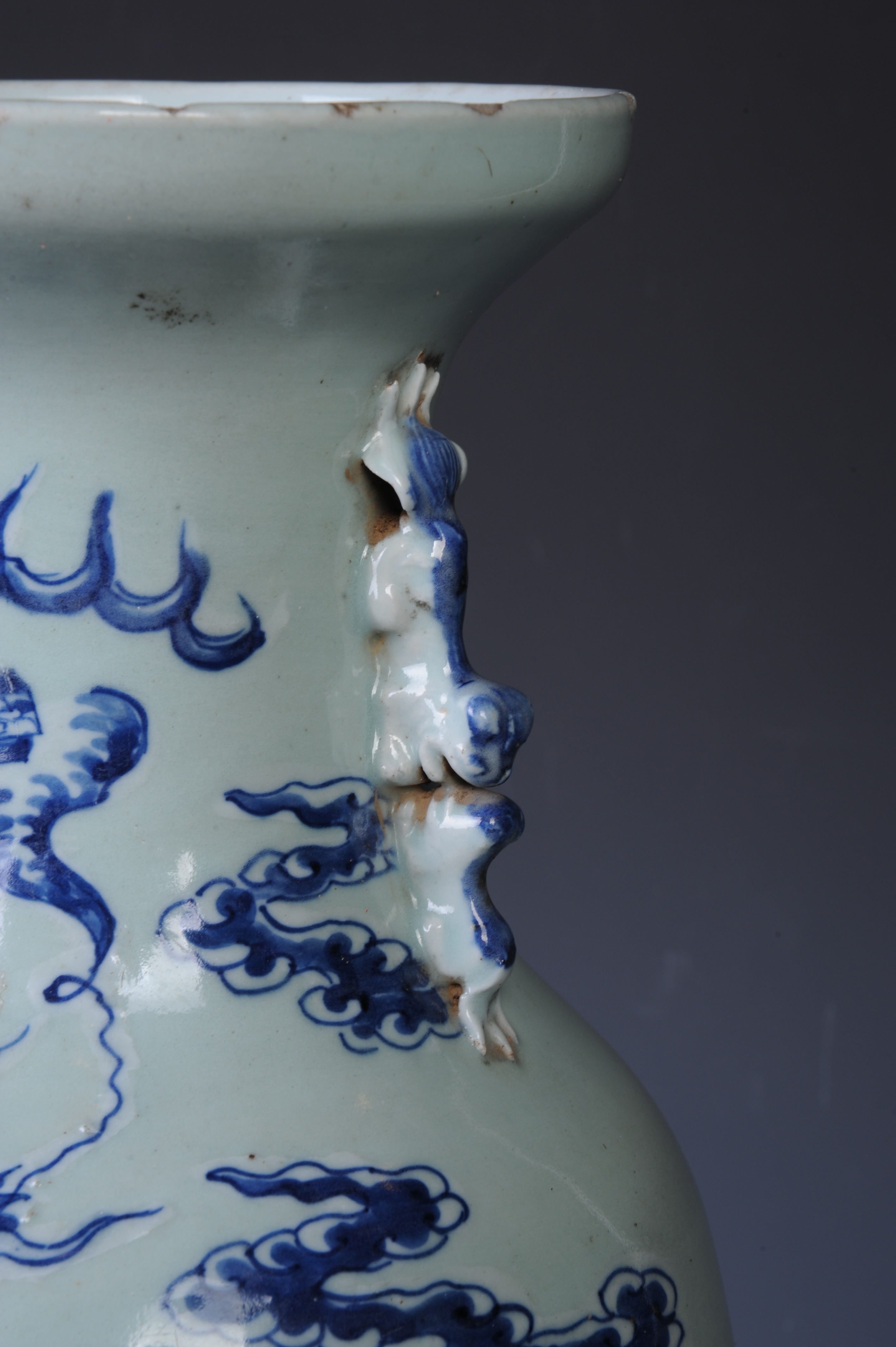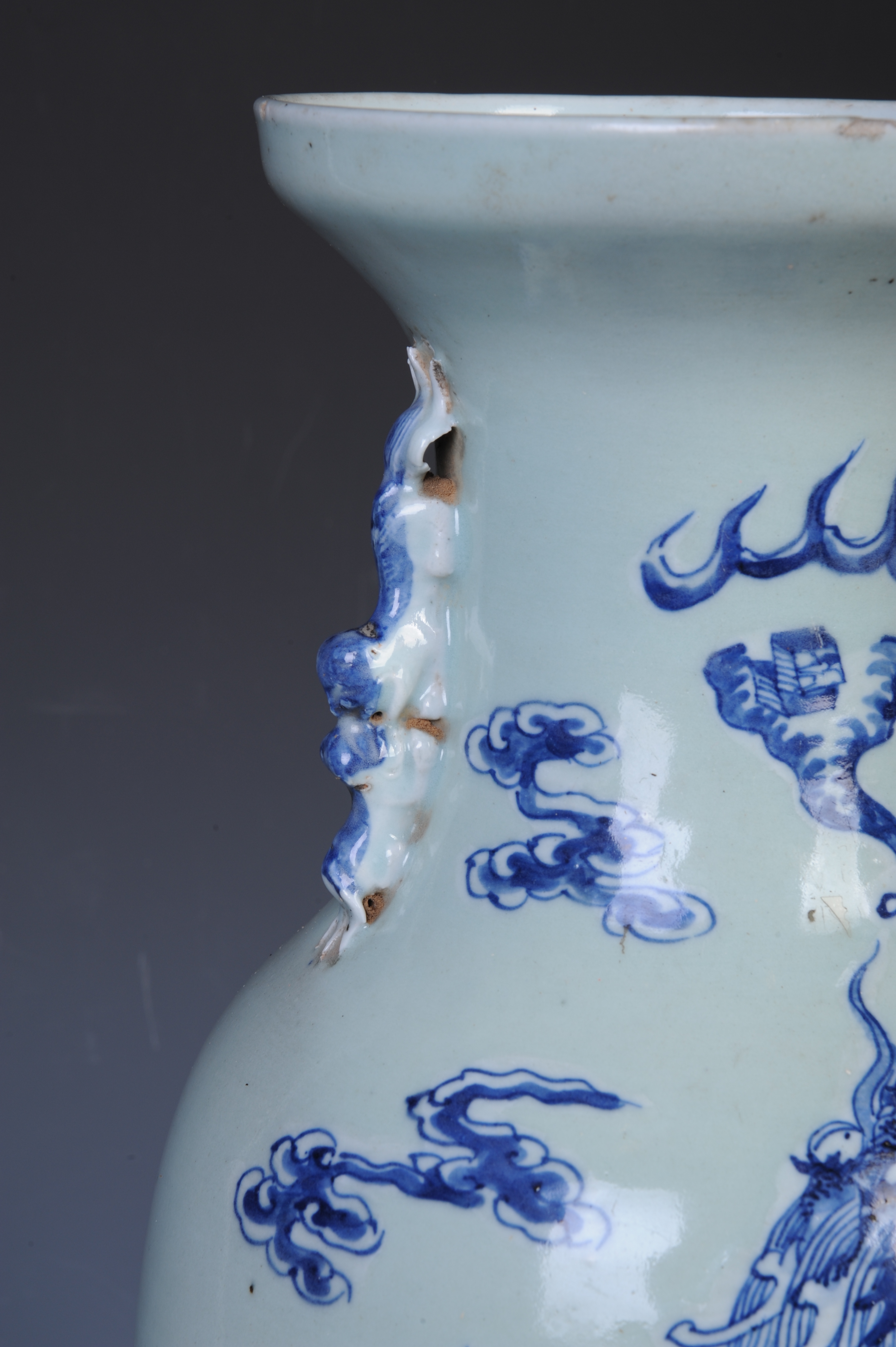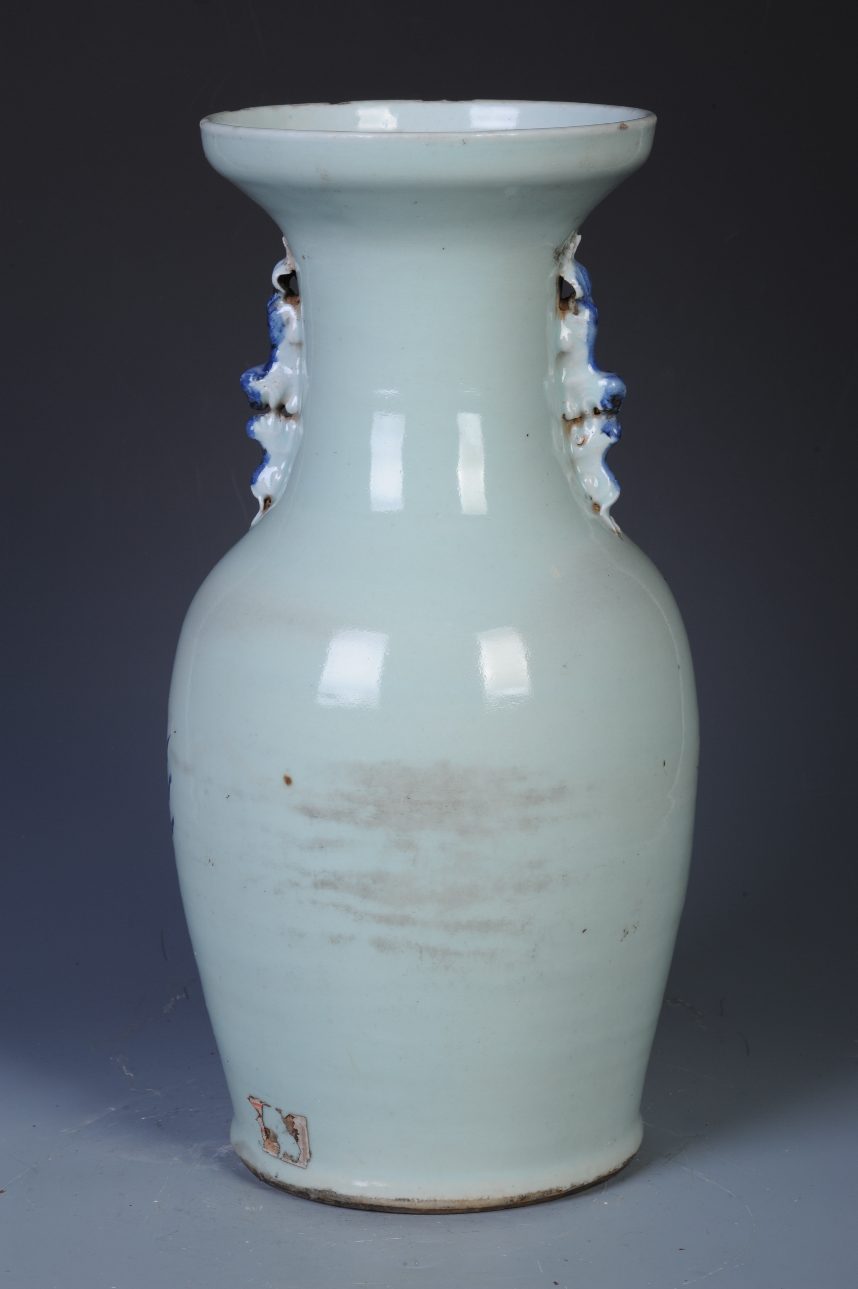 晚清青花麒麟纹双狮耳瓶