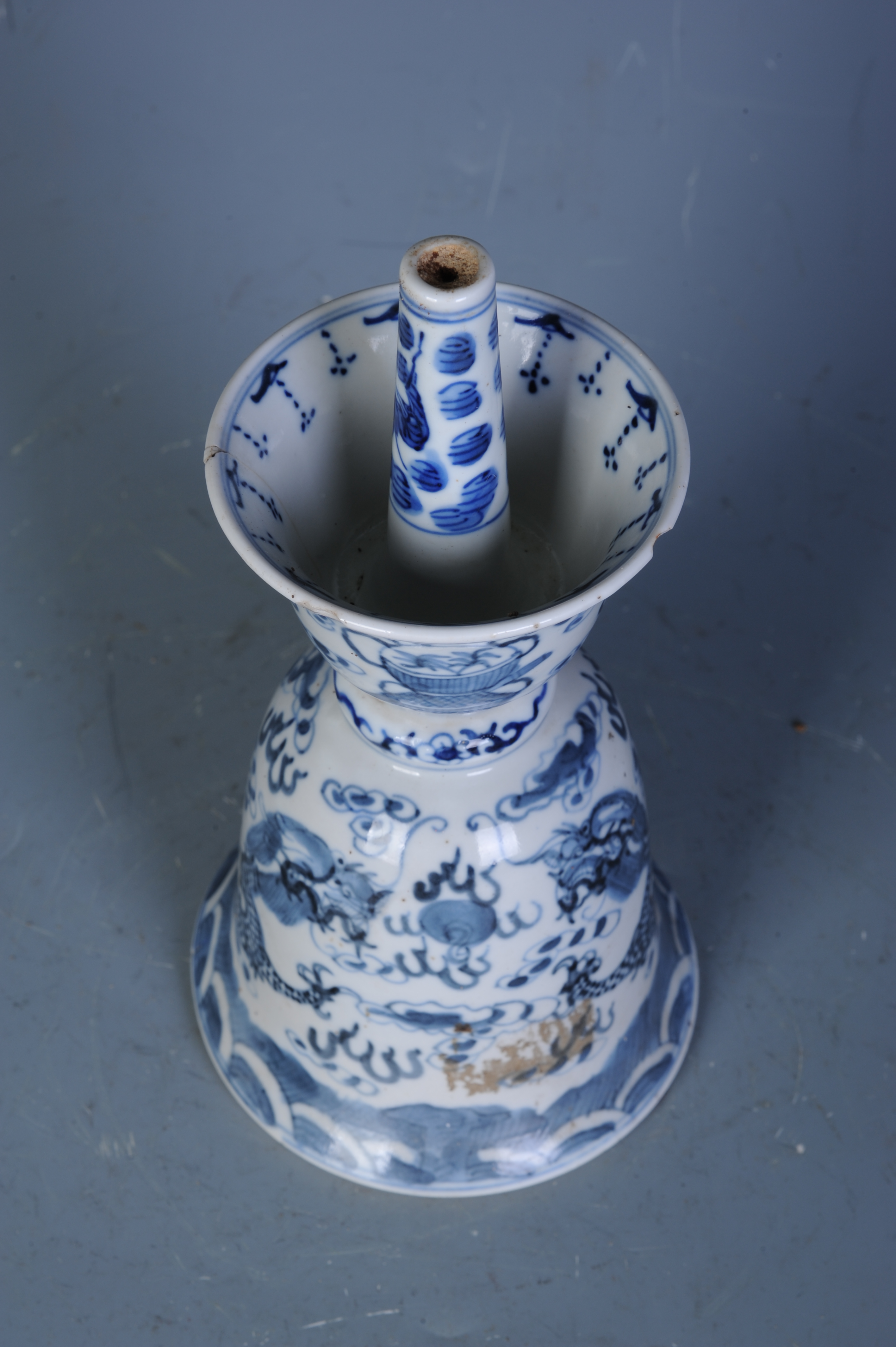 中华民国青花双龙纹烛台