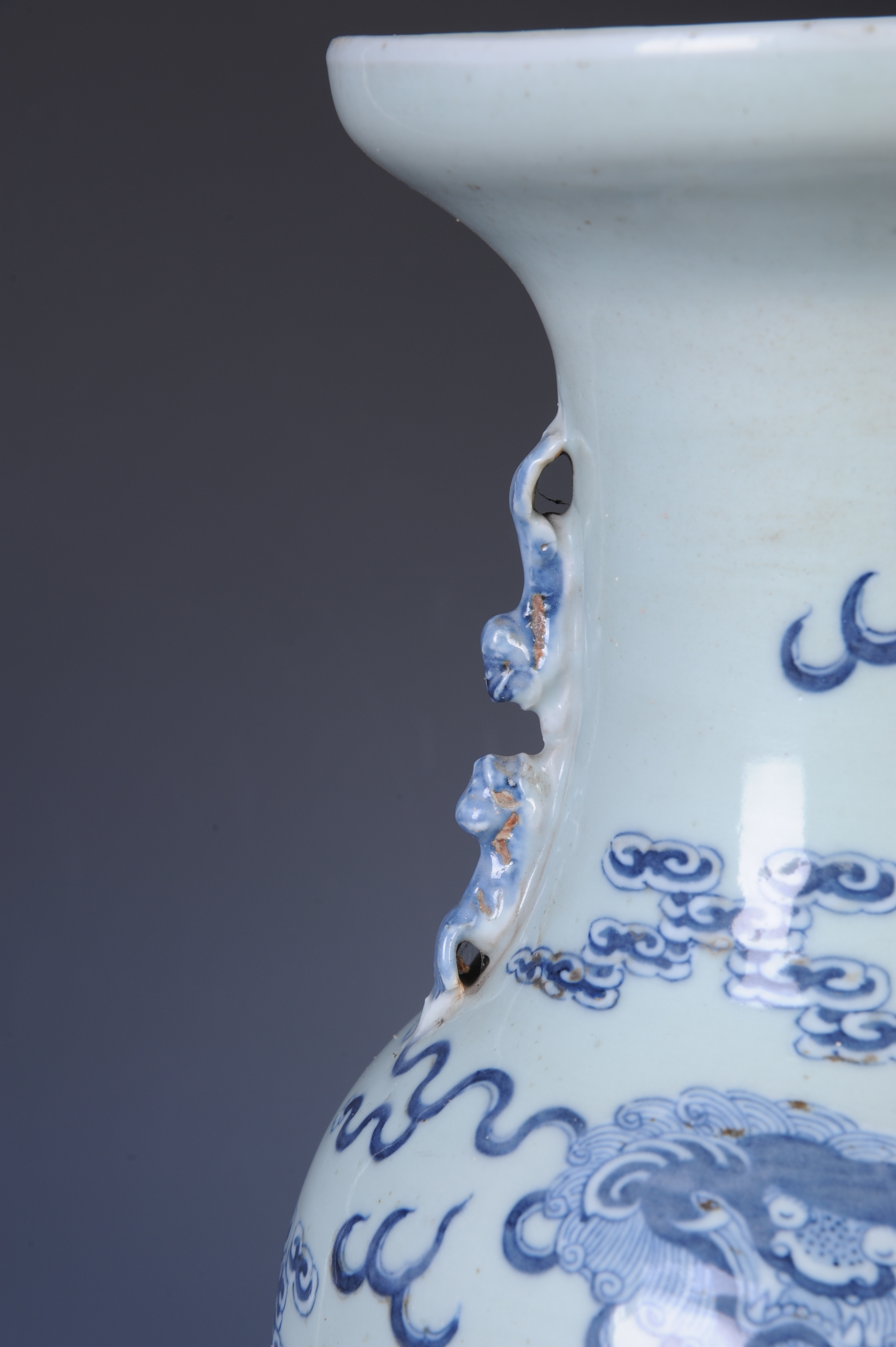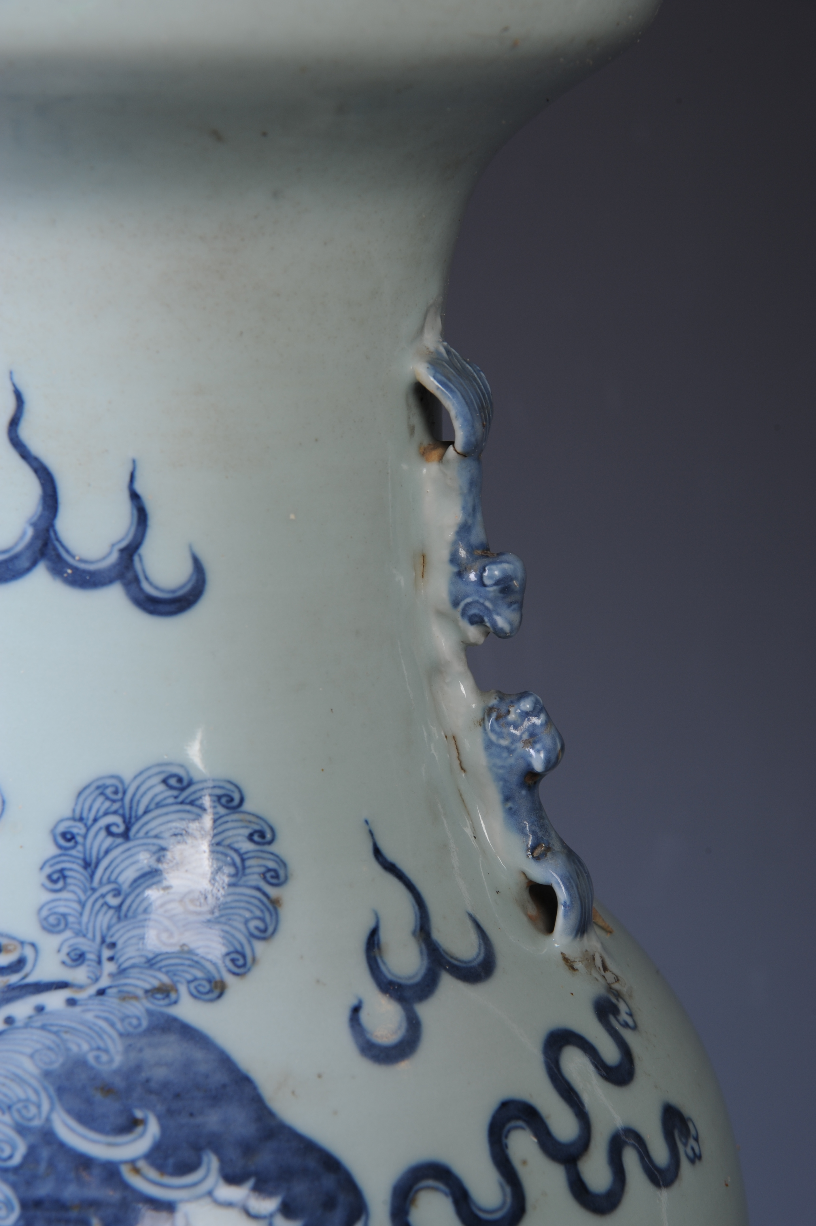 晚清青花狮子纹双狮耳瓶