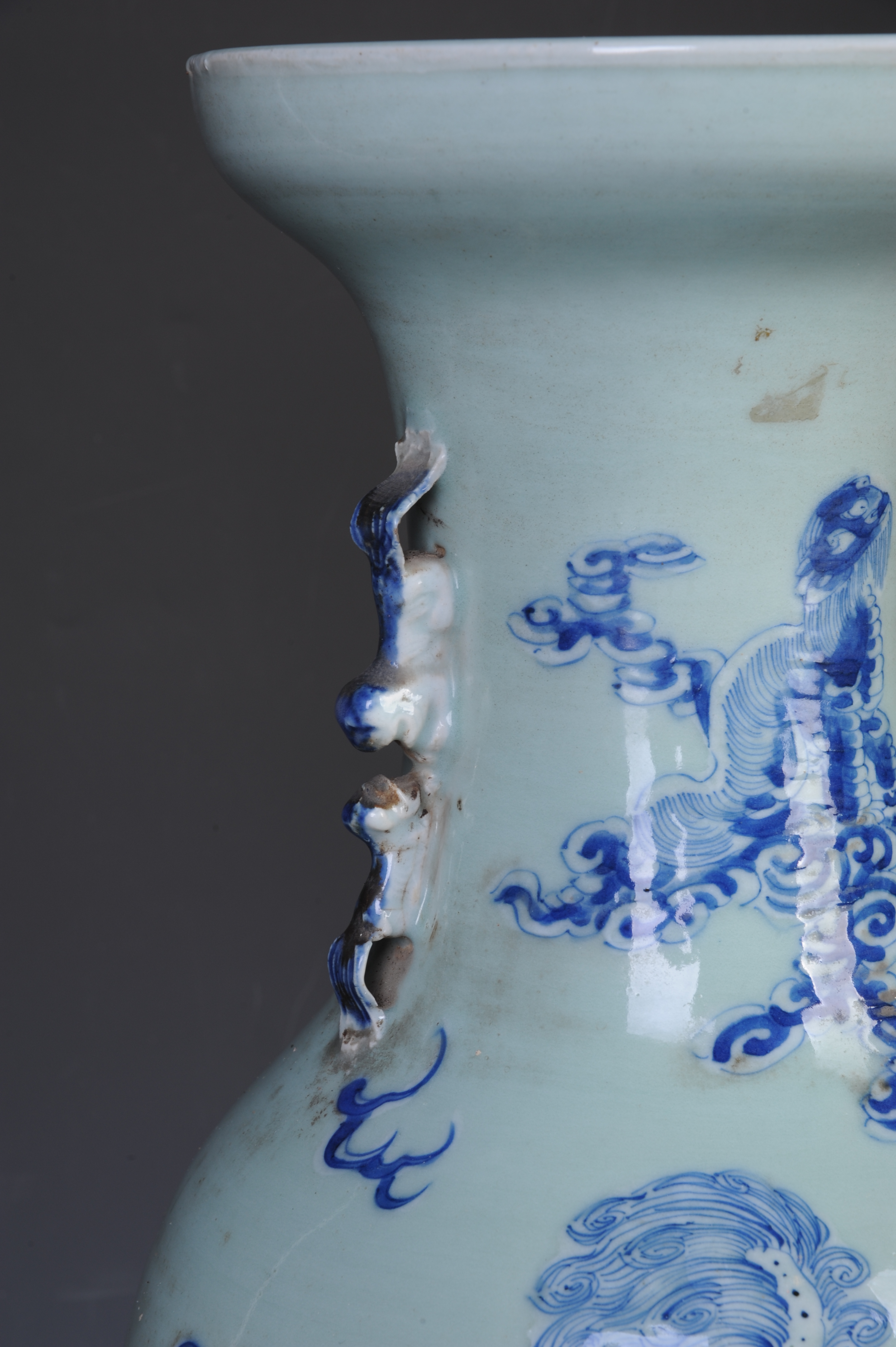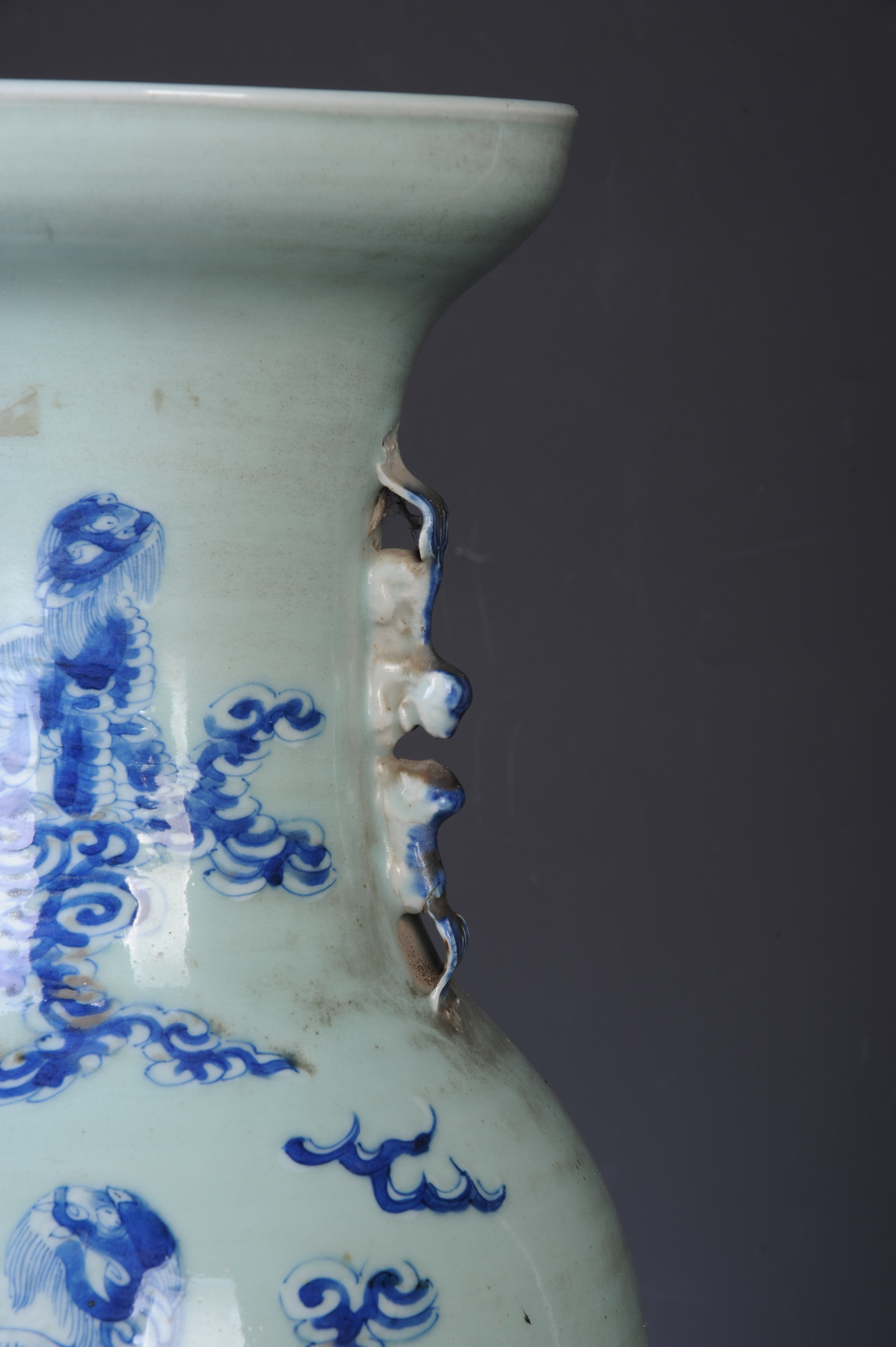 晚清青花狮子纹双狮耳瓶