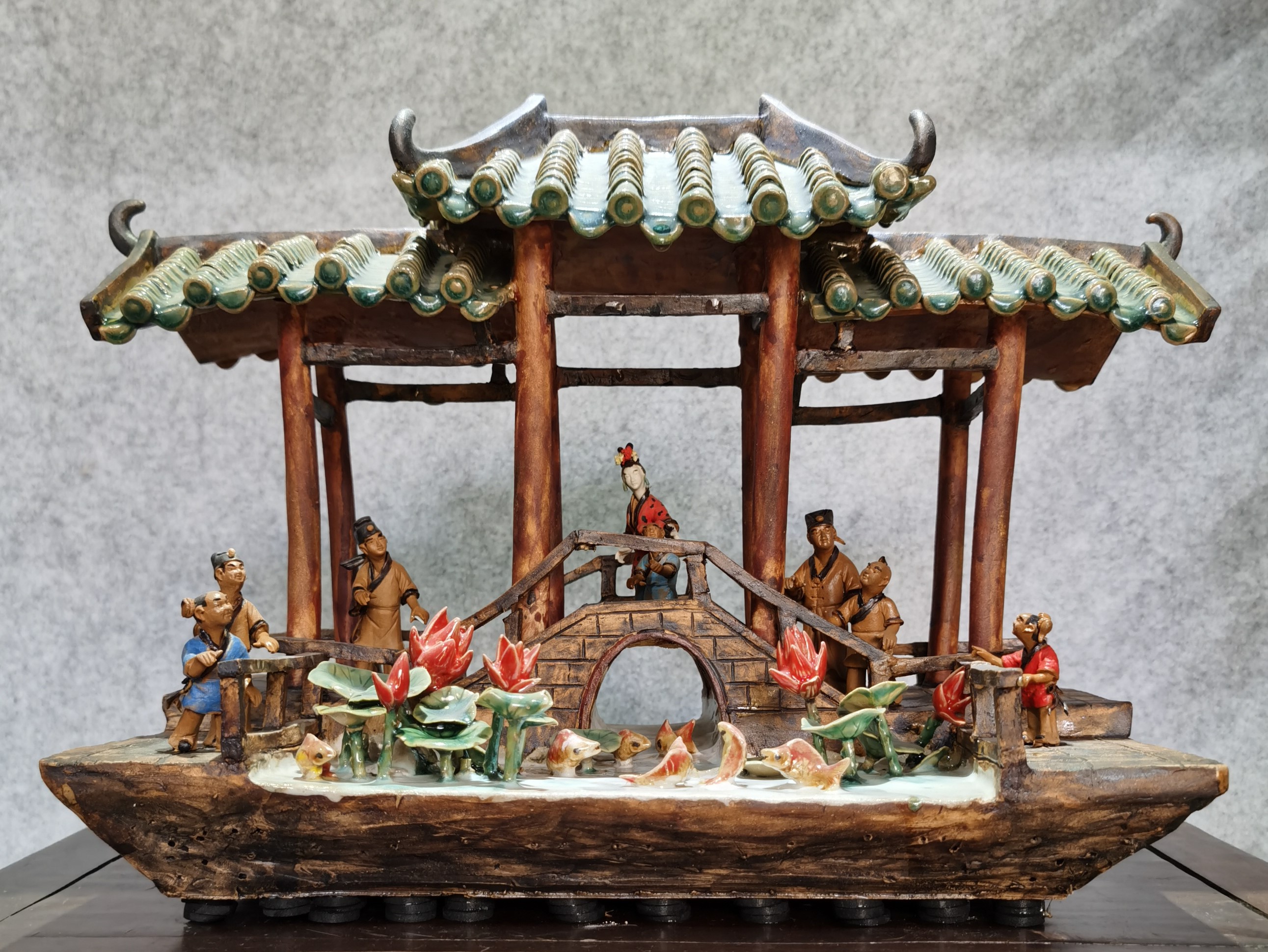 2016年夏少丽《清晖荷塘》陶微塑摆件