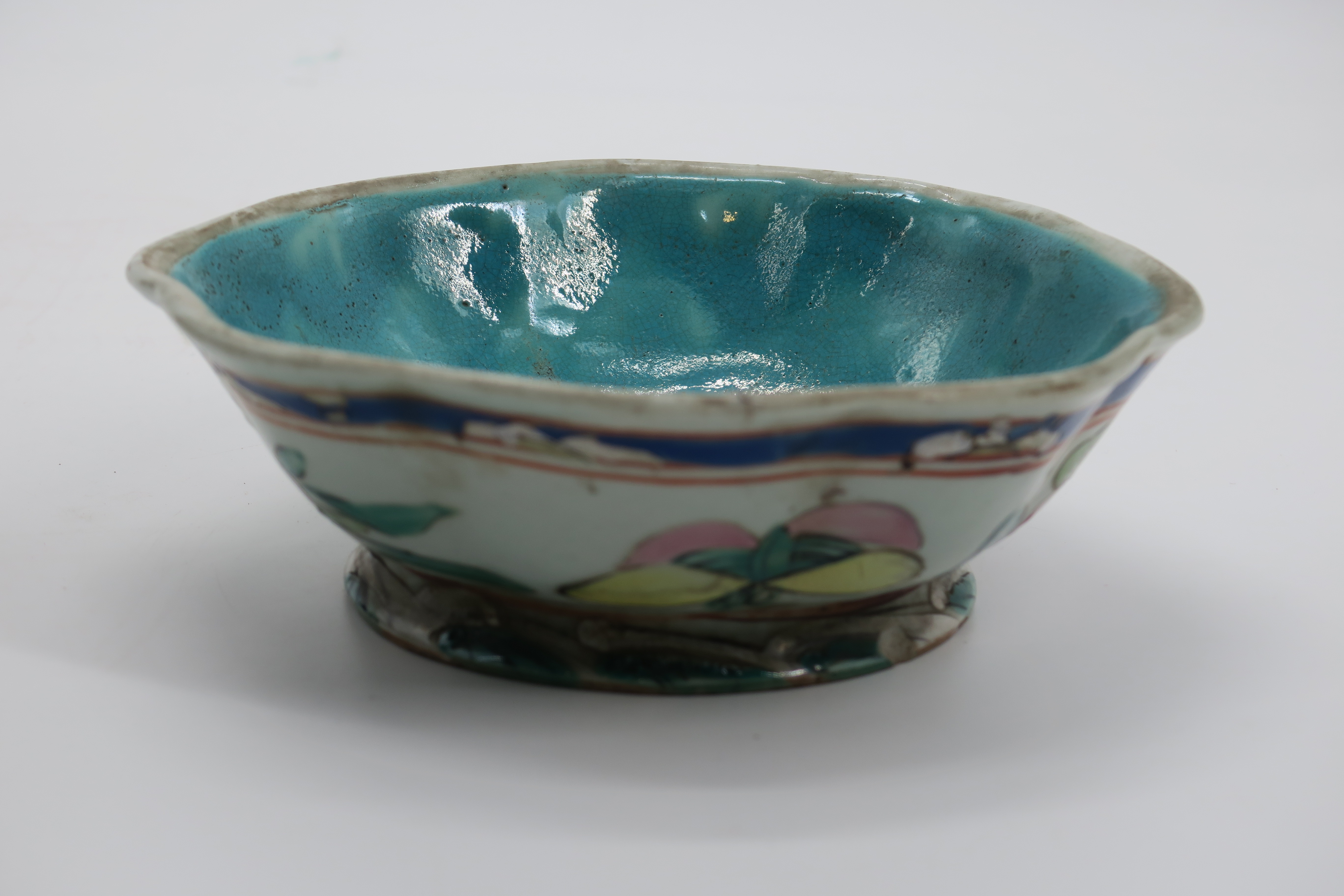 当代粉彩花果纹葵花式果托