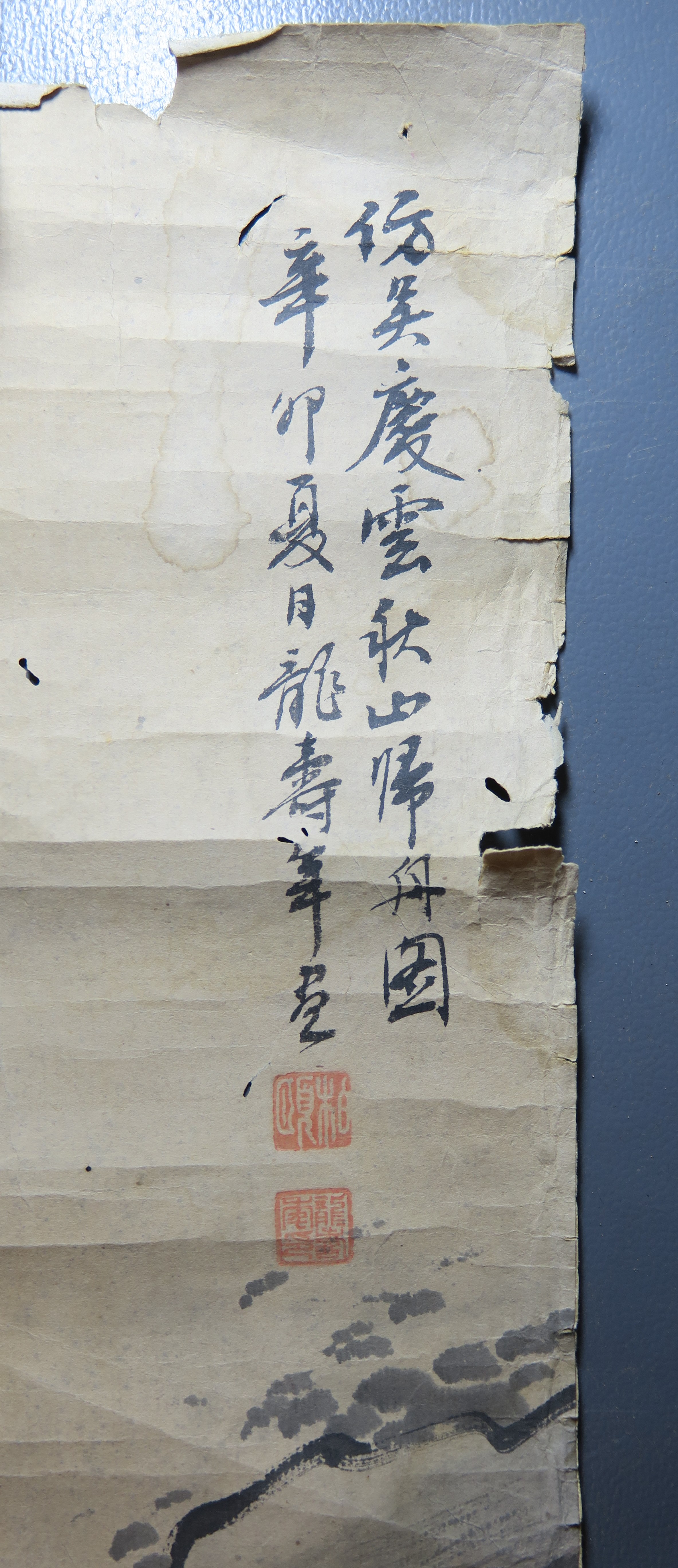 1891年龙寿年仿吴庆云秋山归舟图条幅