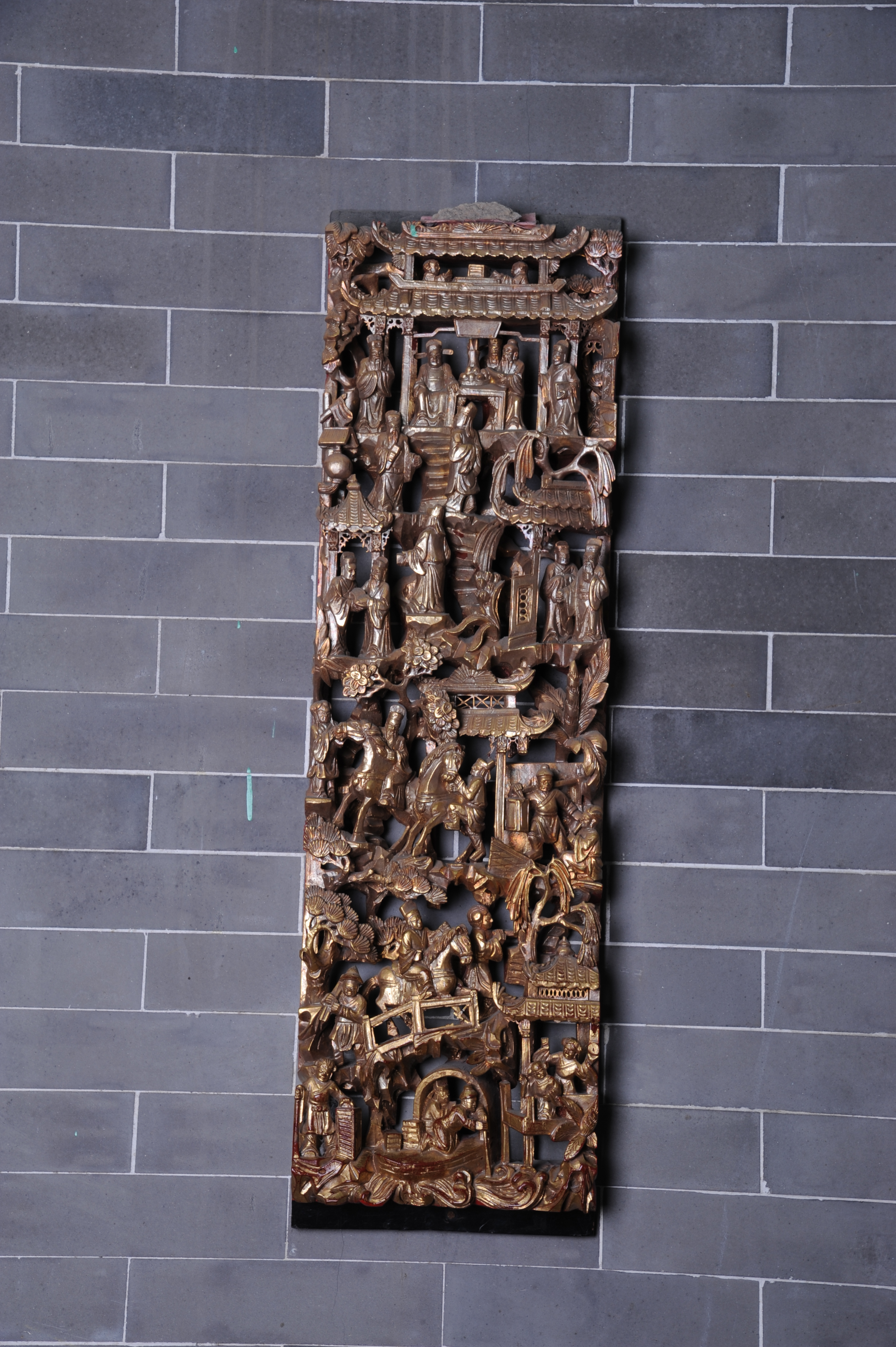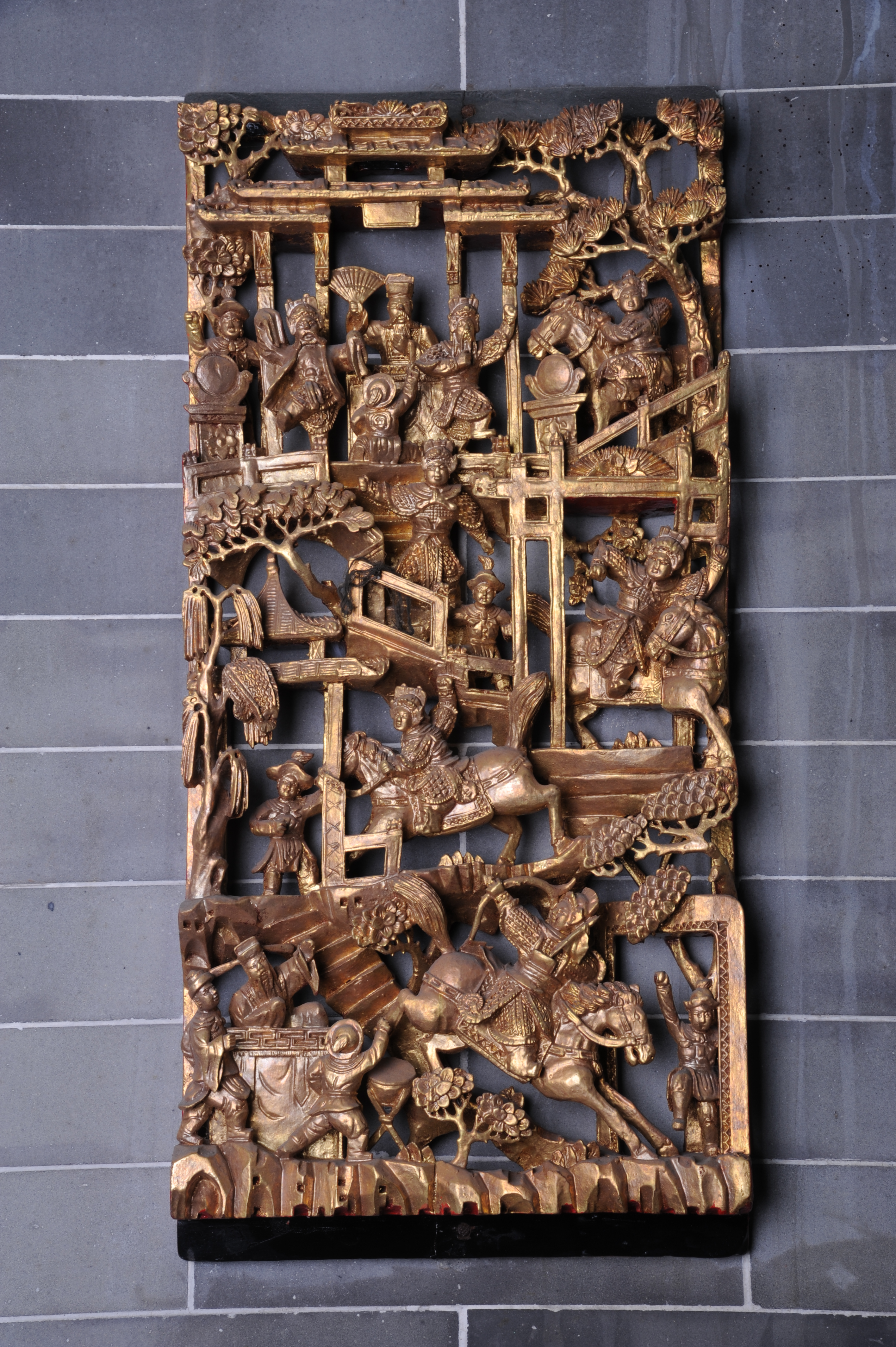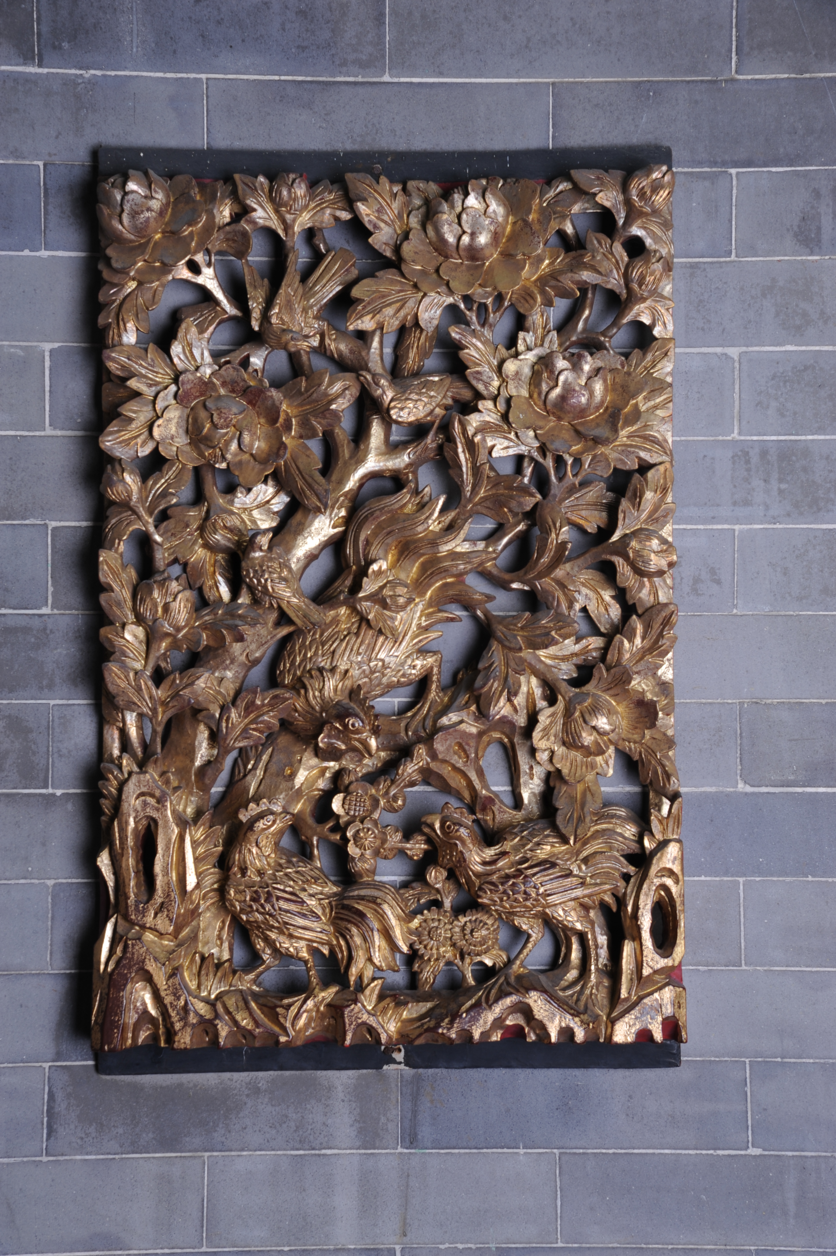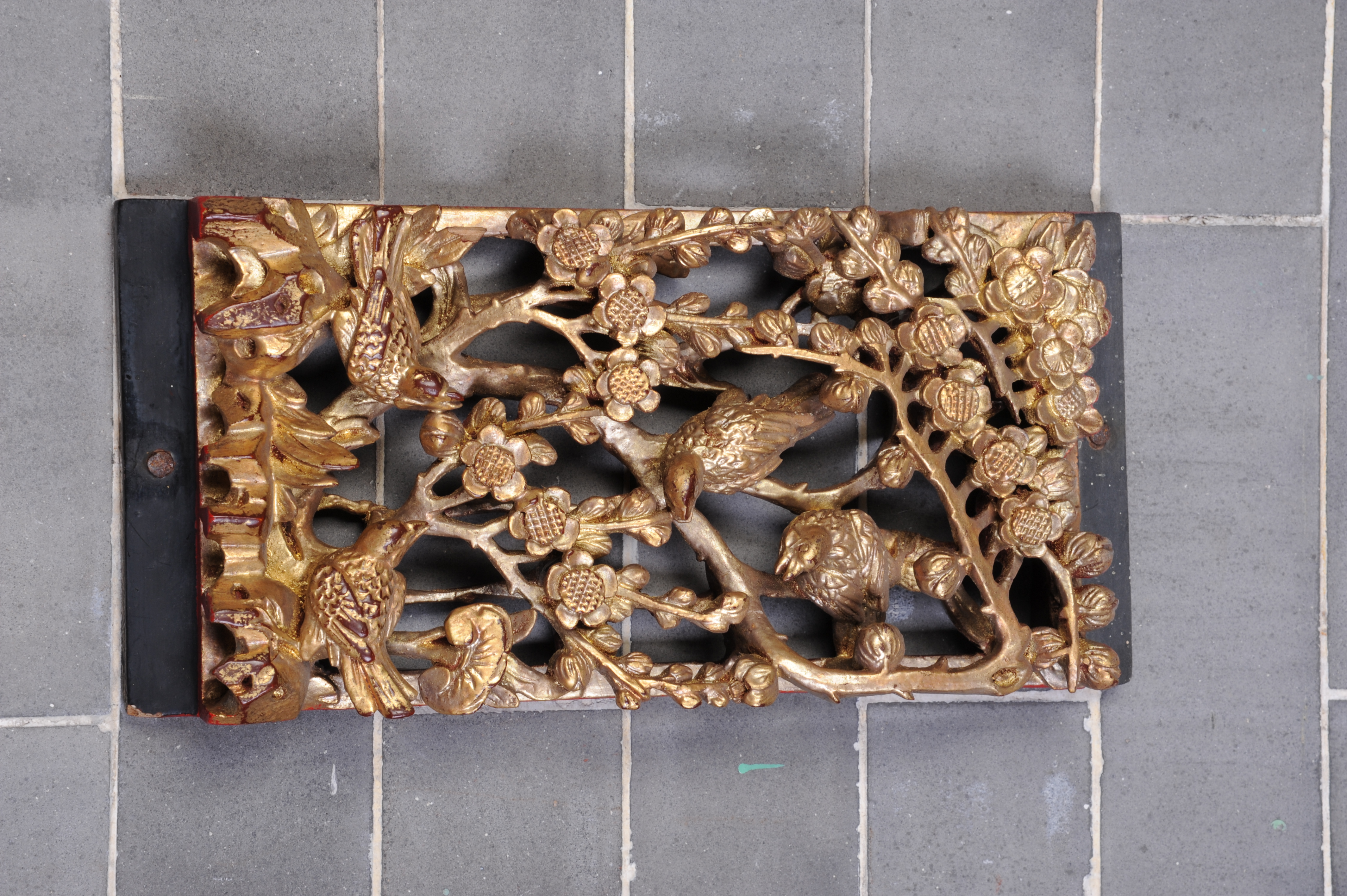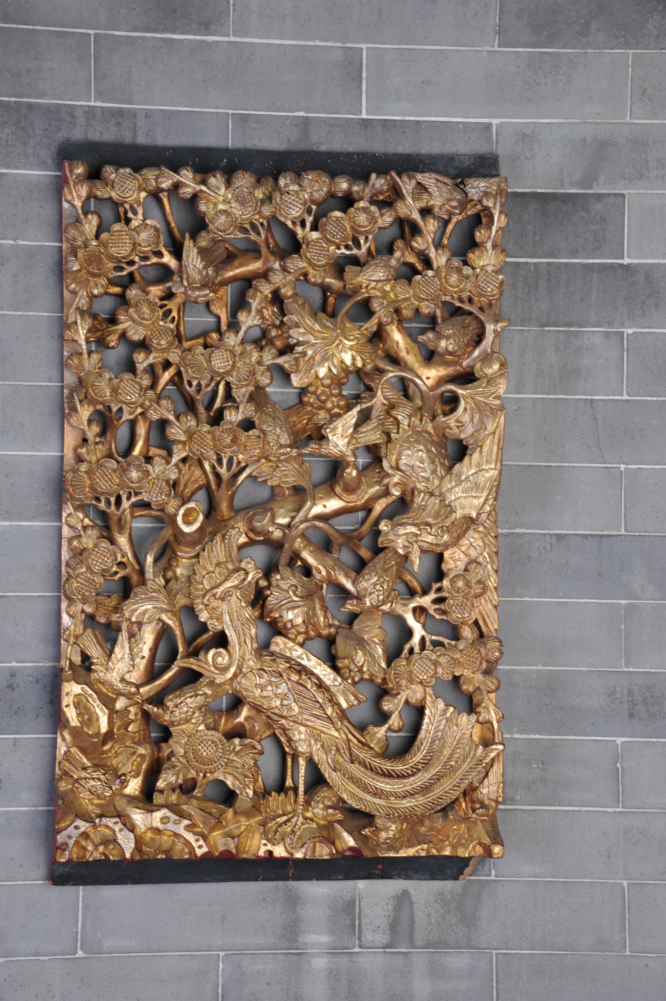 清金漆木雕花板