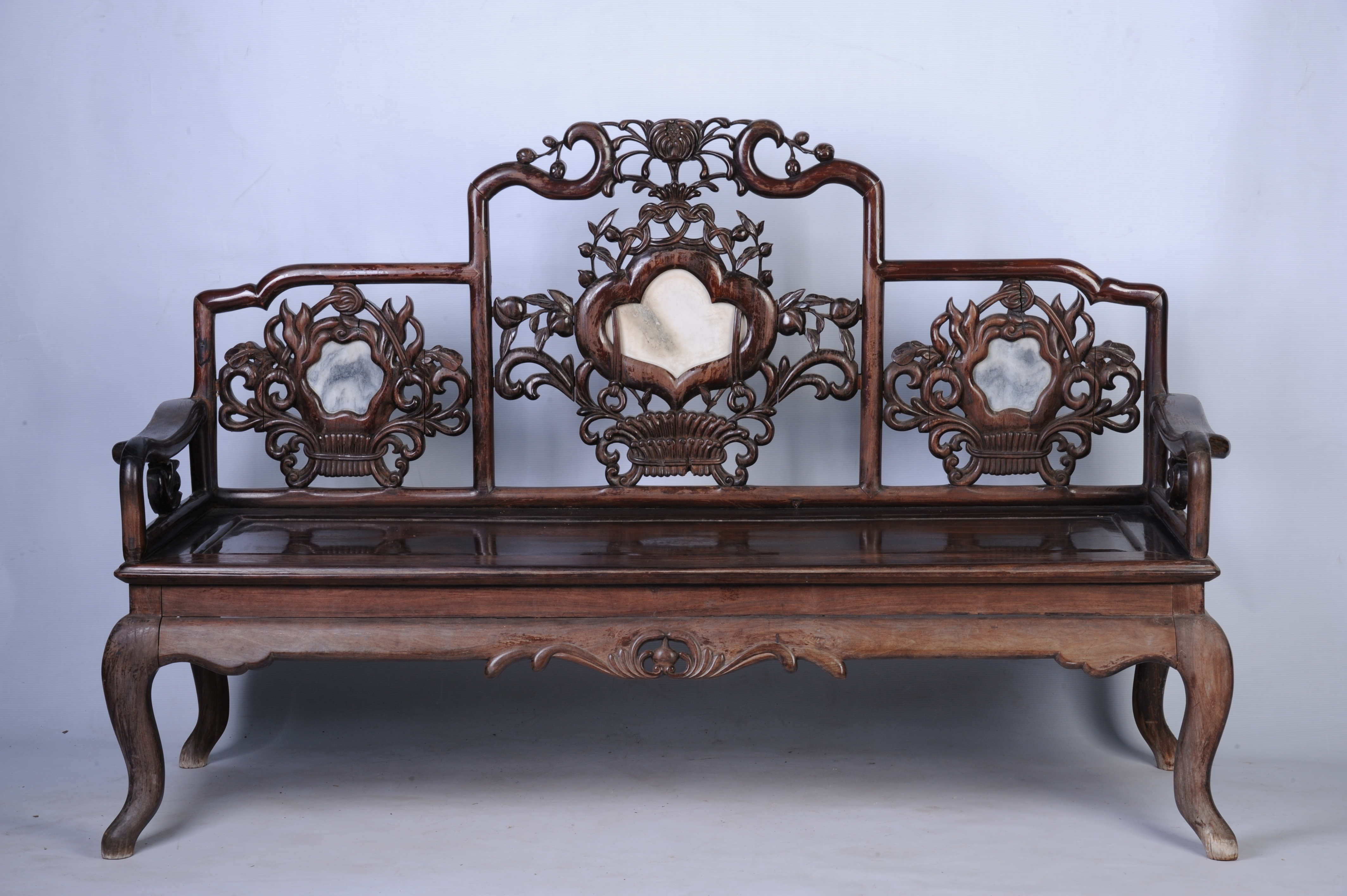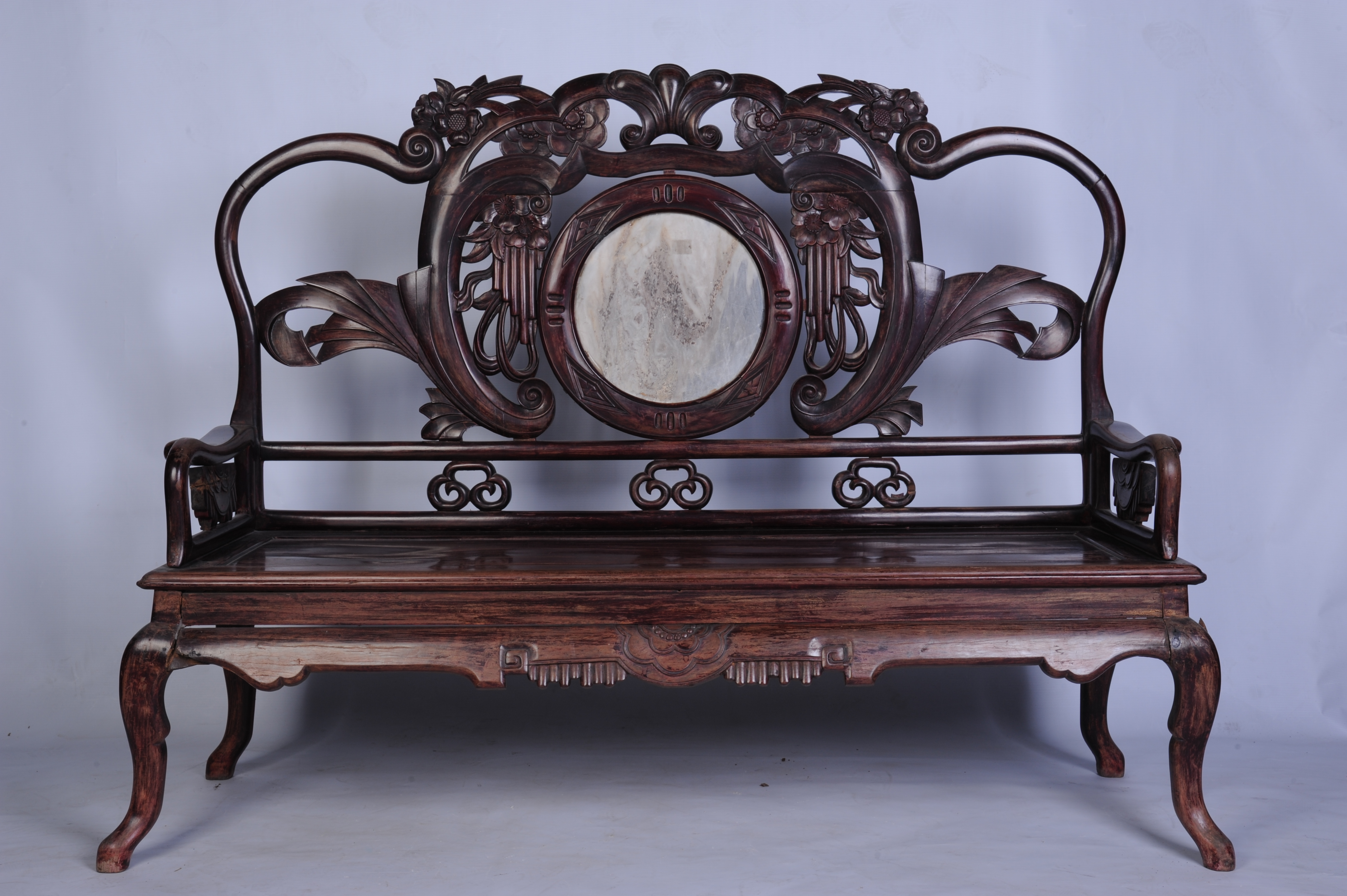 中华民国酸枝镶石靠背长椅