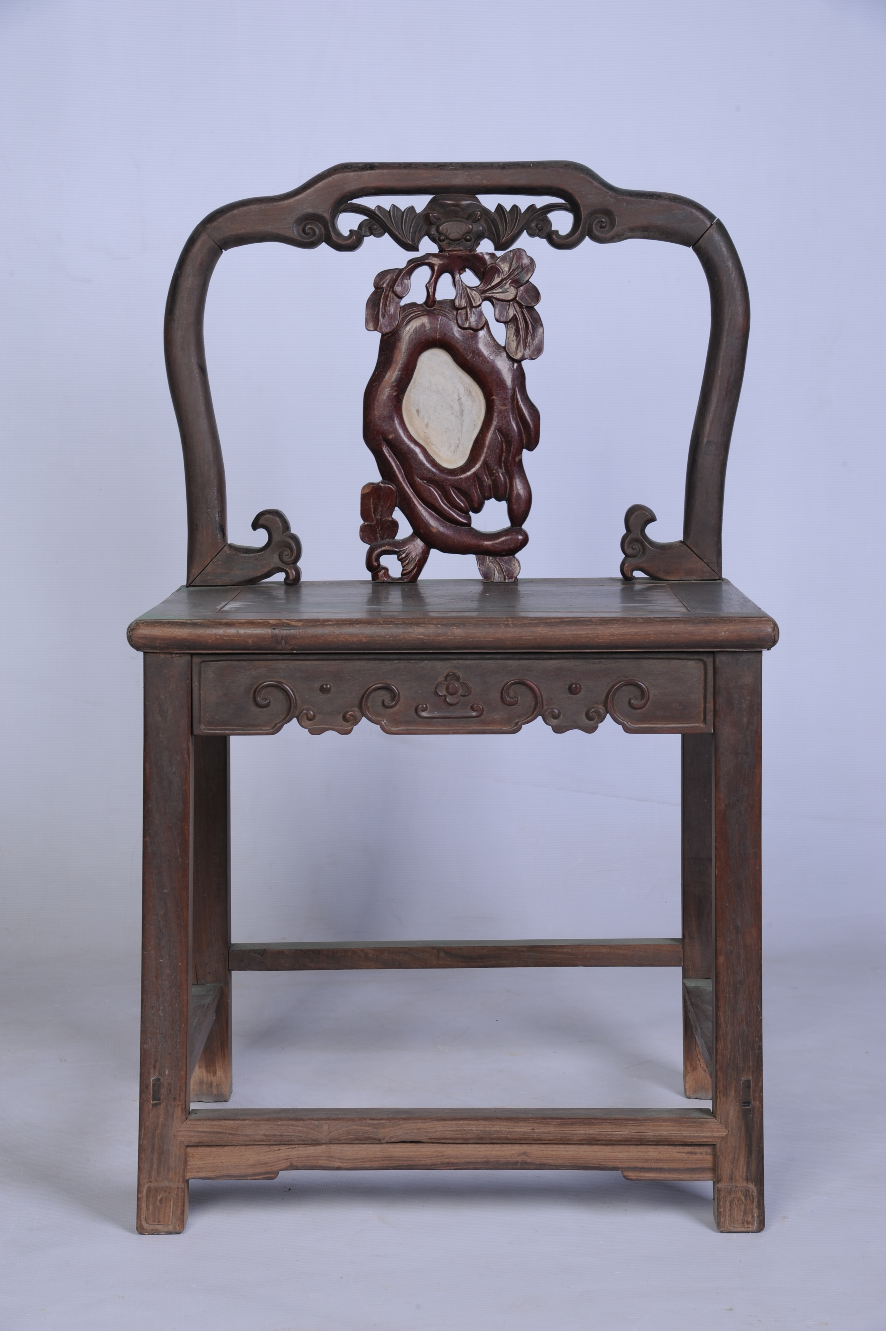 中华民国花梨镶石靠背椅