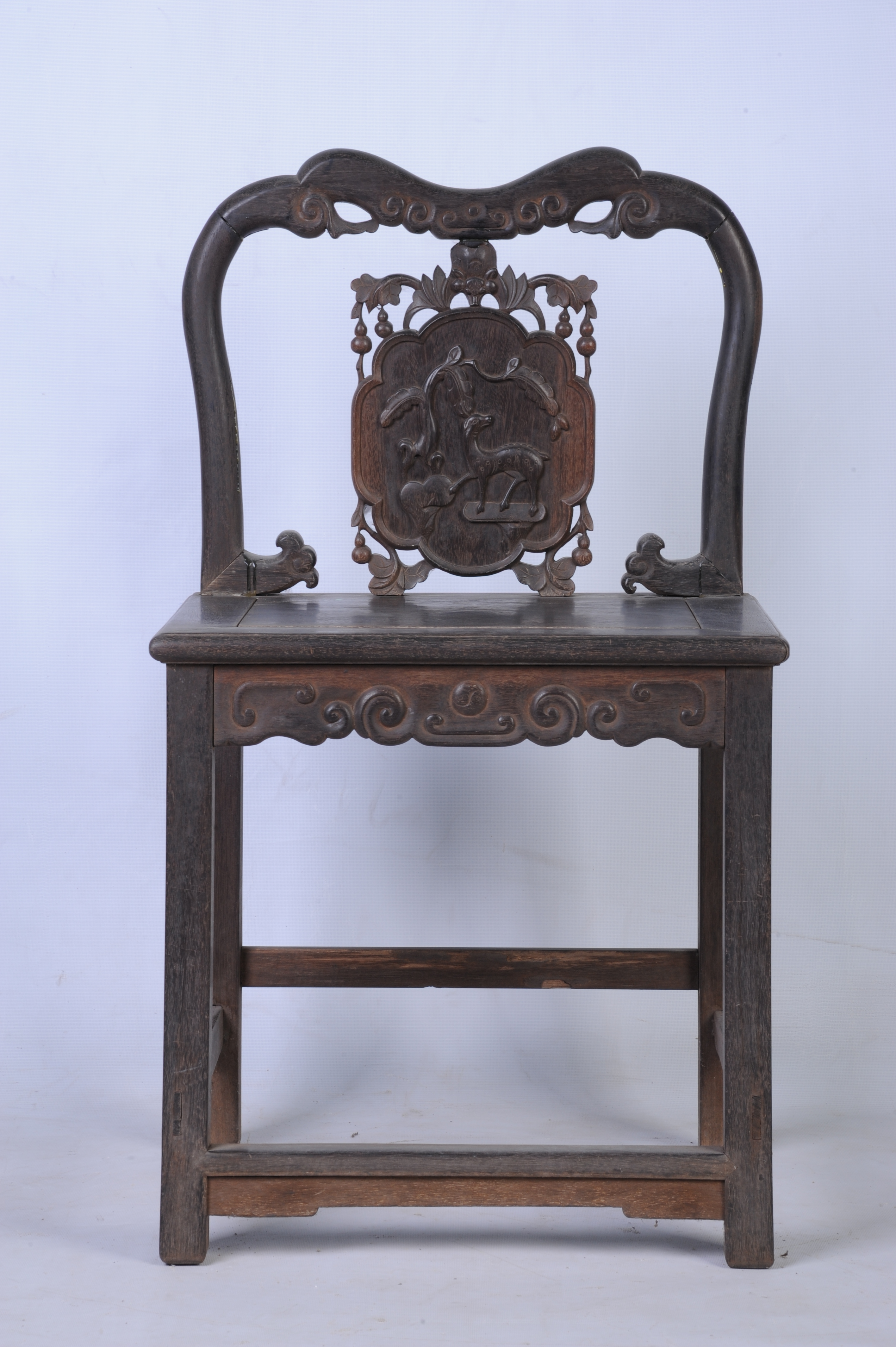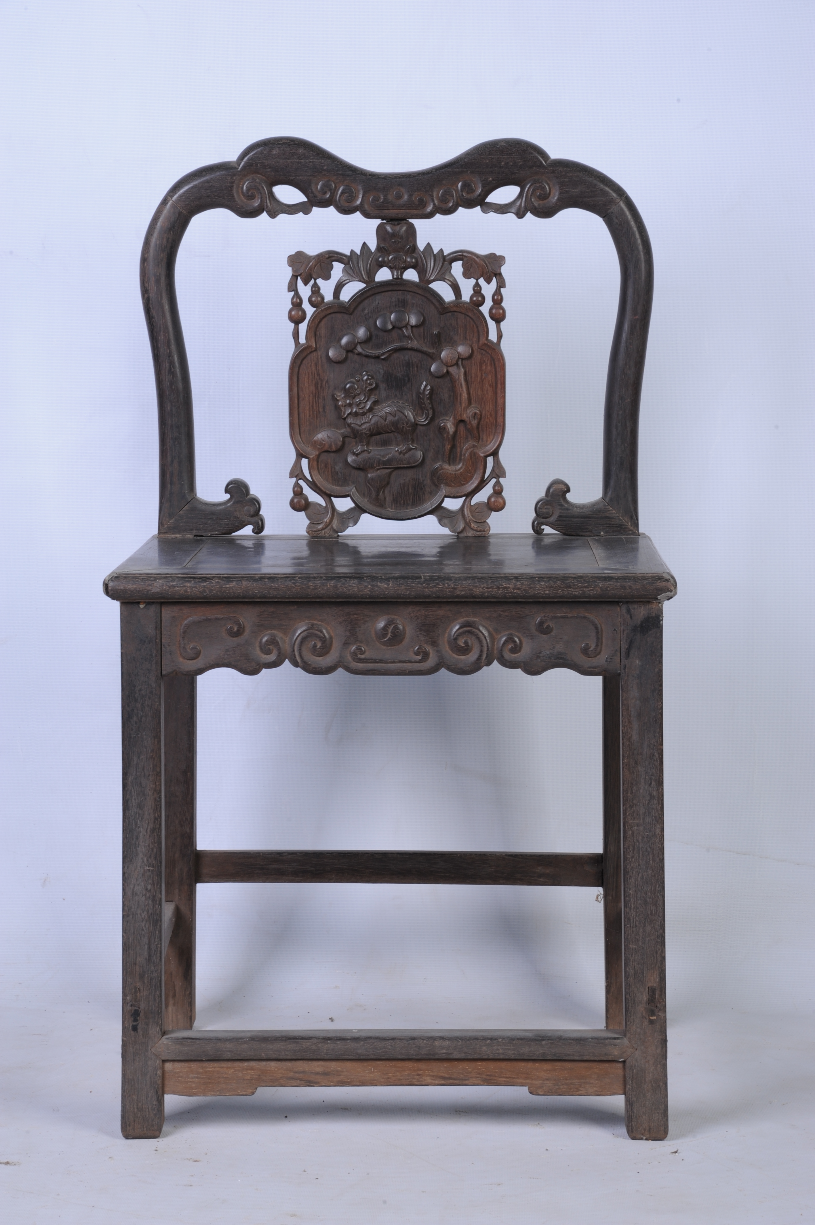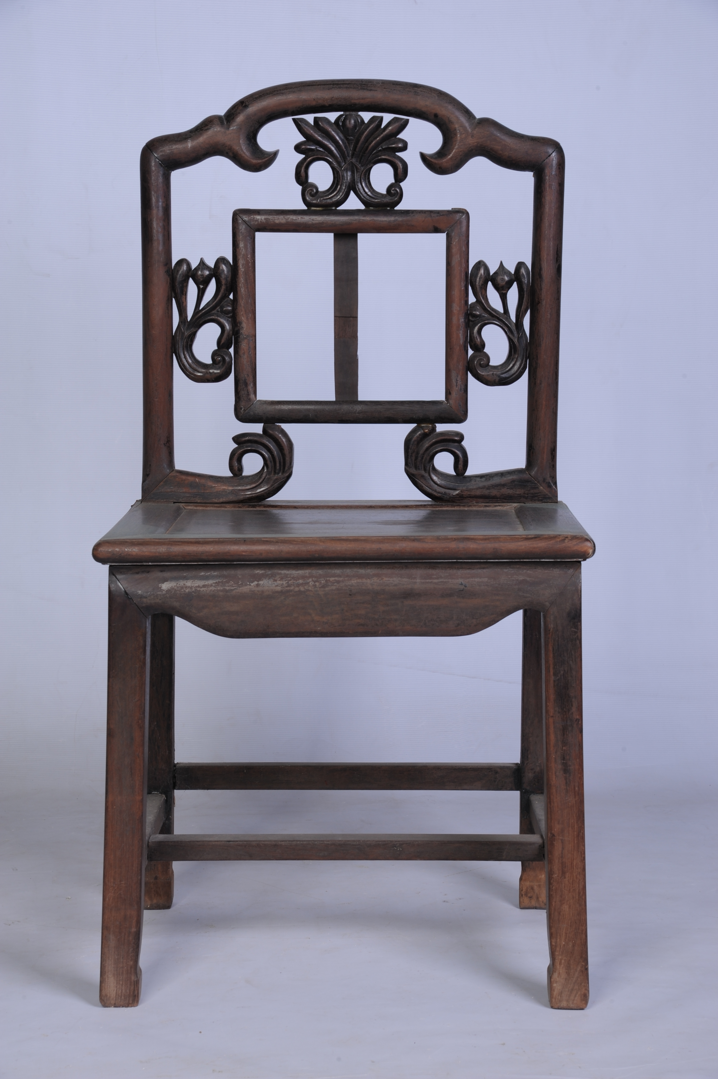 清末酸枝镶石靠背椅(缺石)