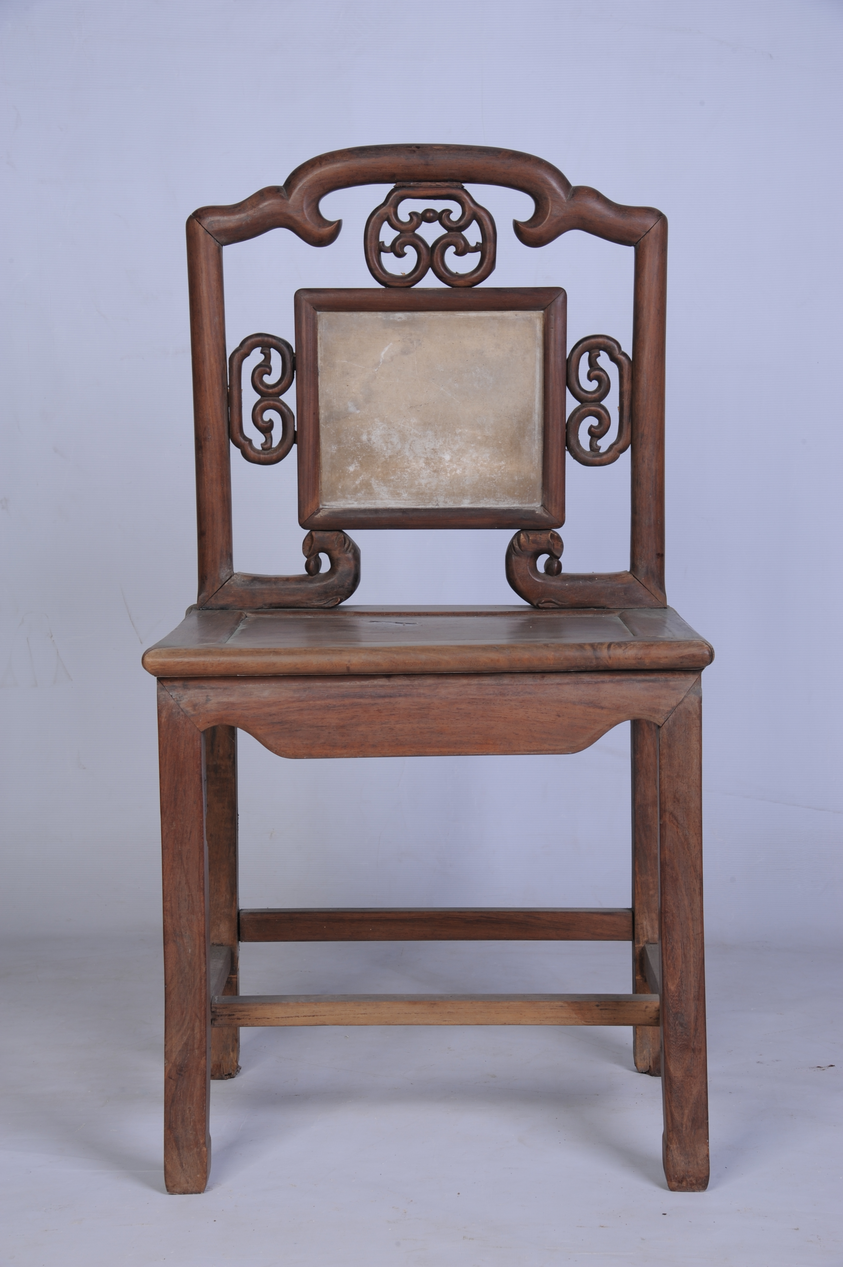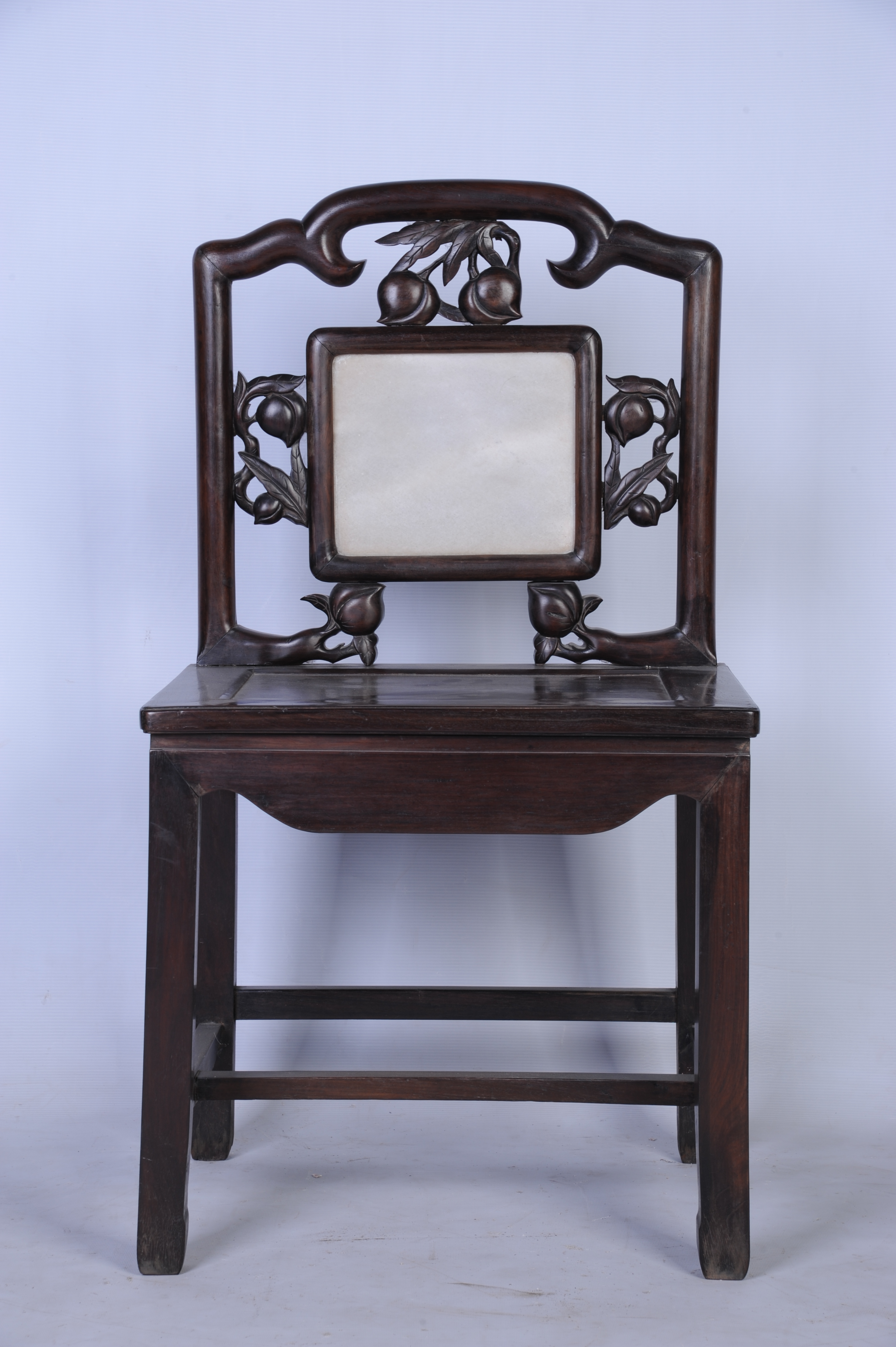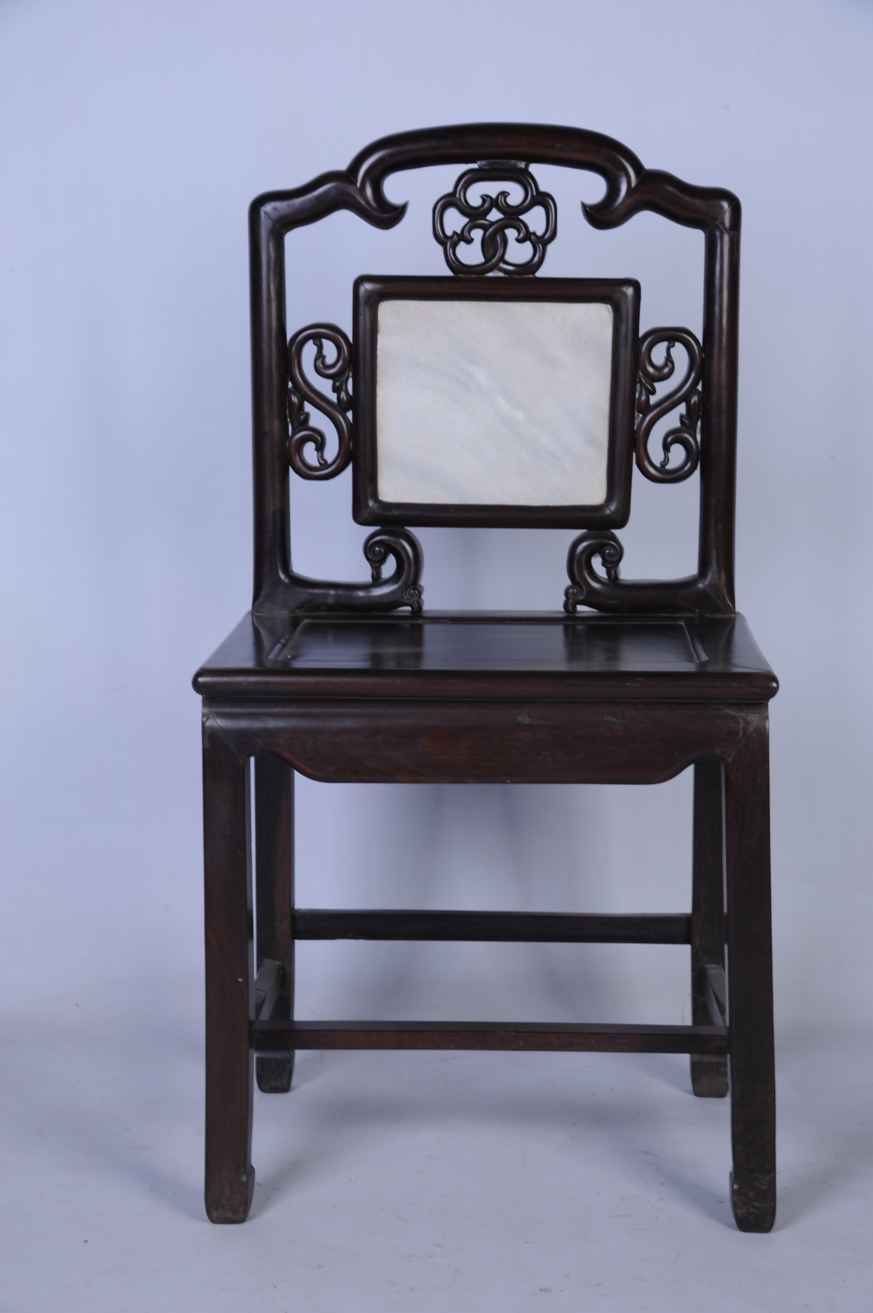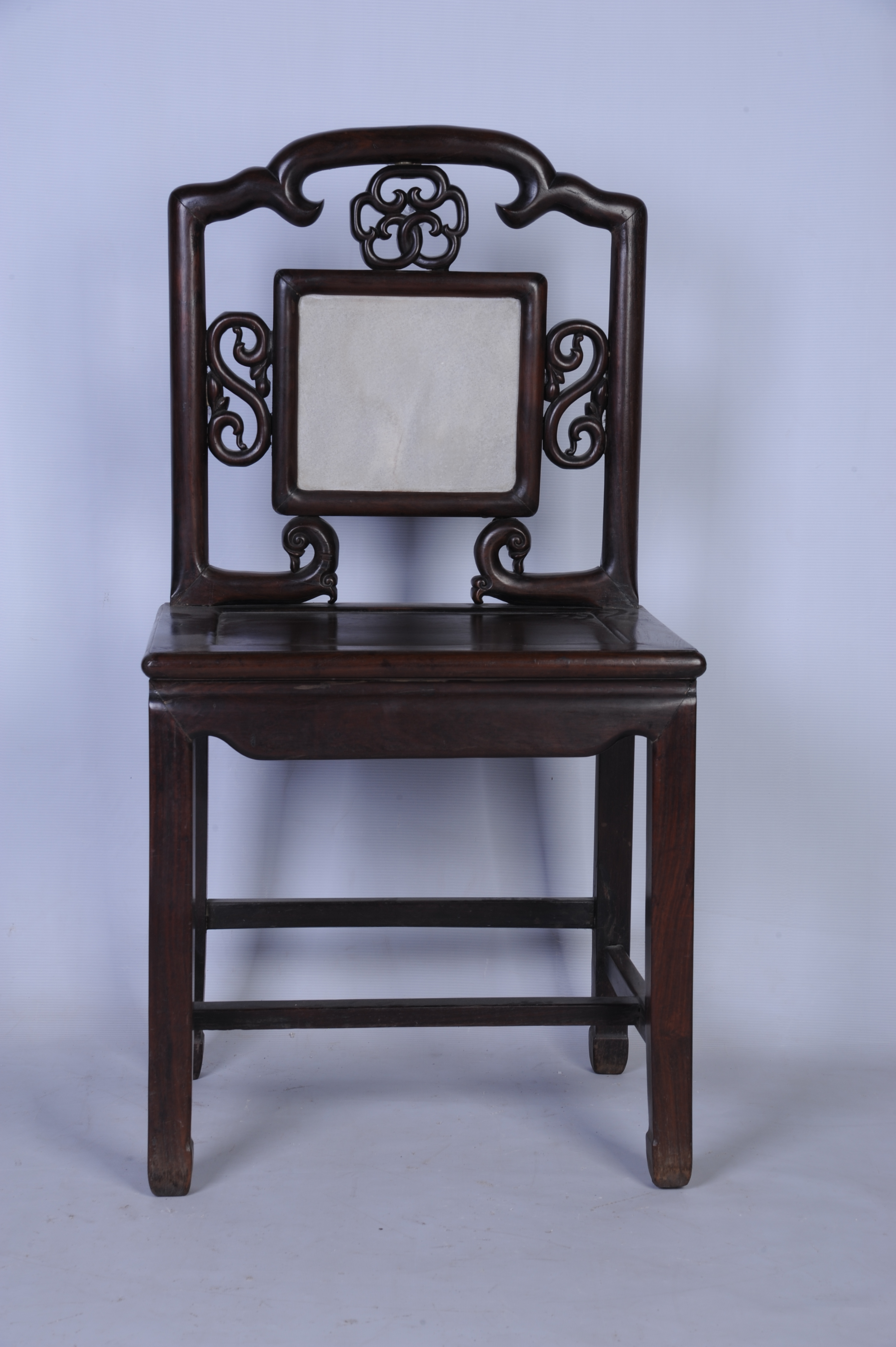 清末酸枝镶云石靠背椅