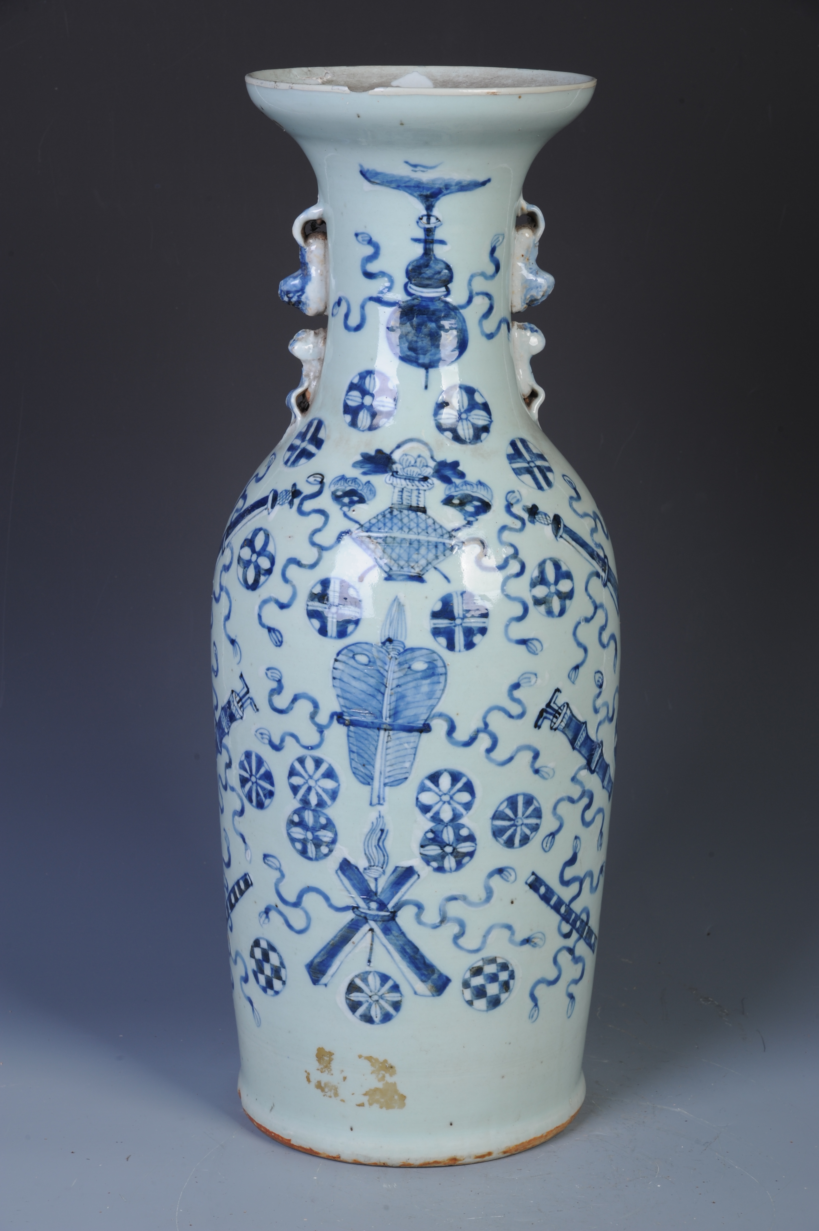 晚清青花八宝纹双狮耳瓶