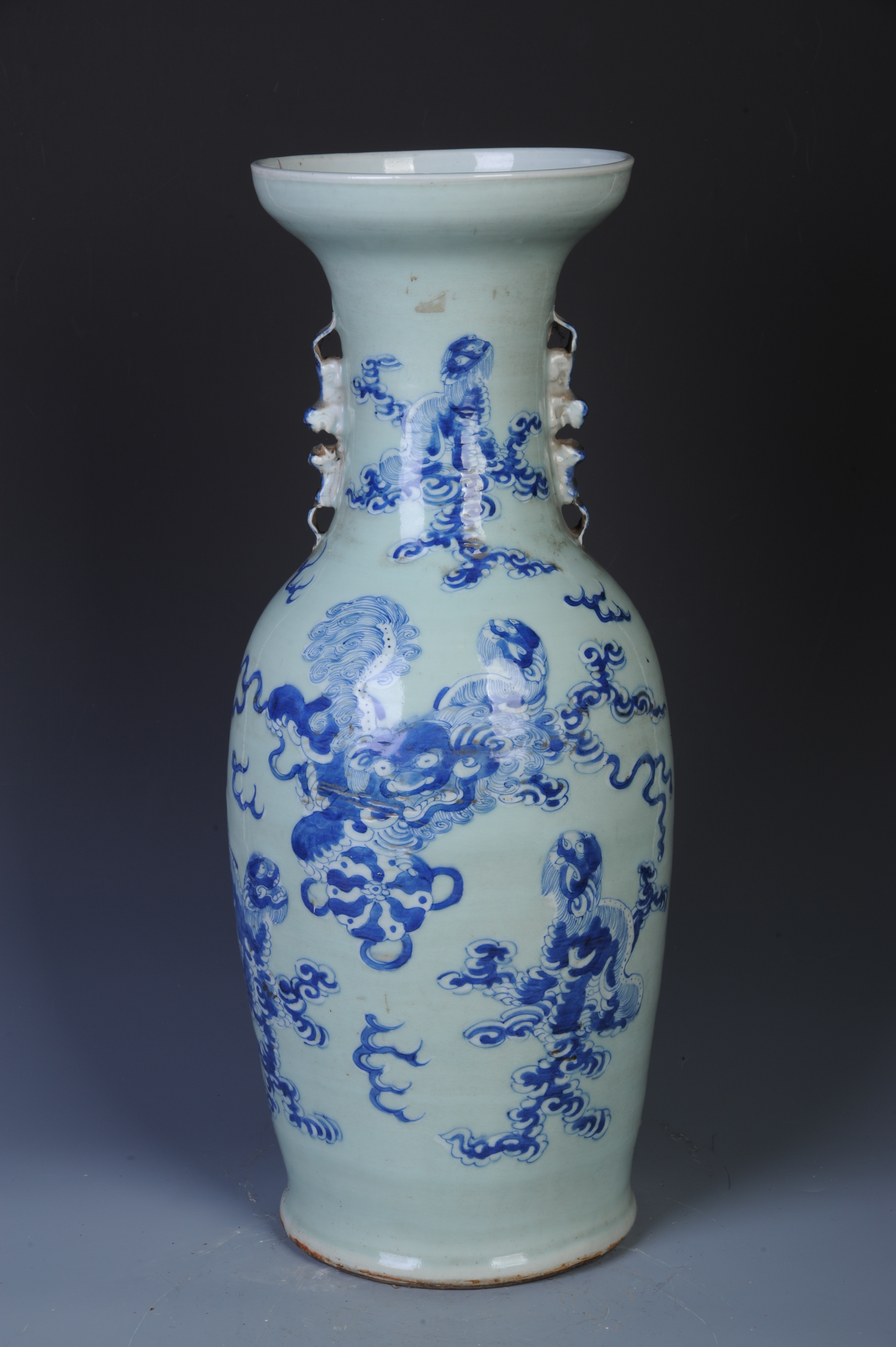 晚清青花狮子纹双狮耳瓶