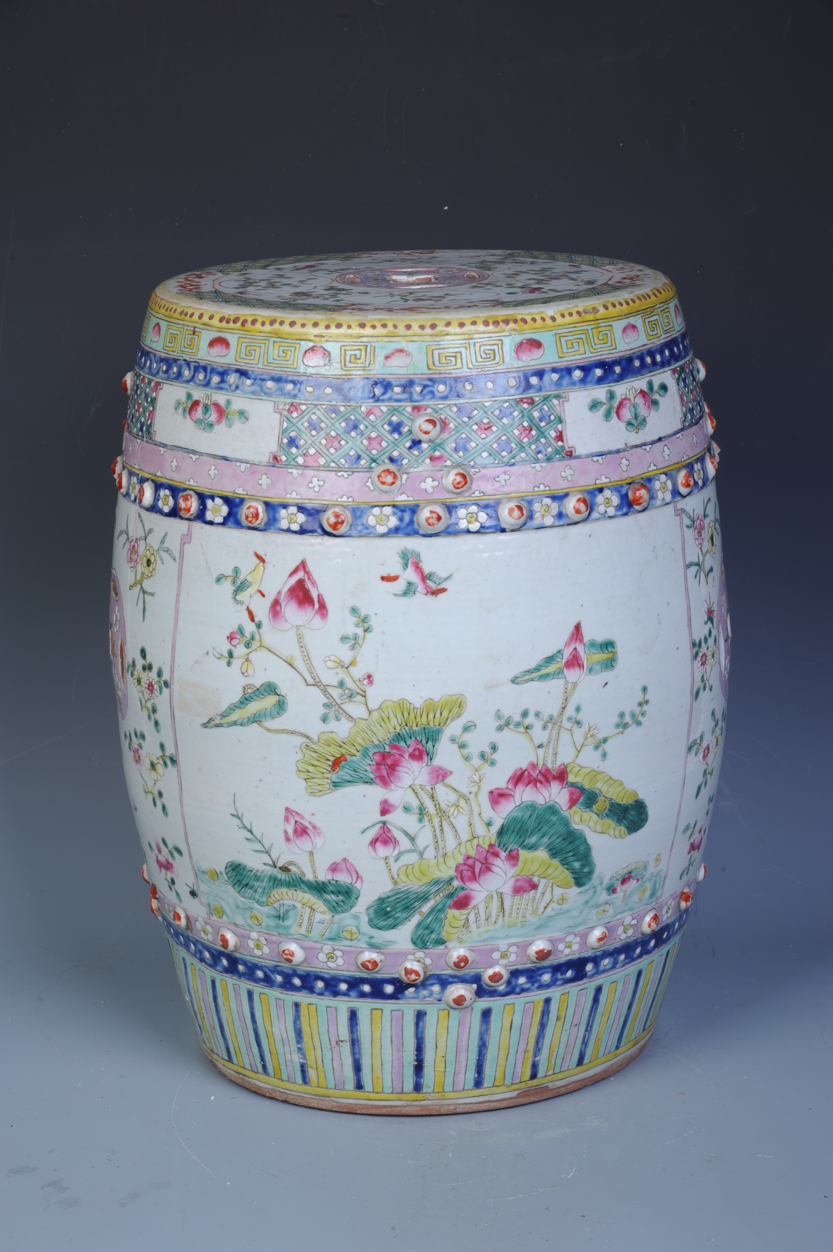 清粉彩花鸟纹鼓形绣墩