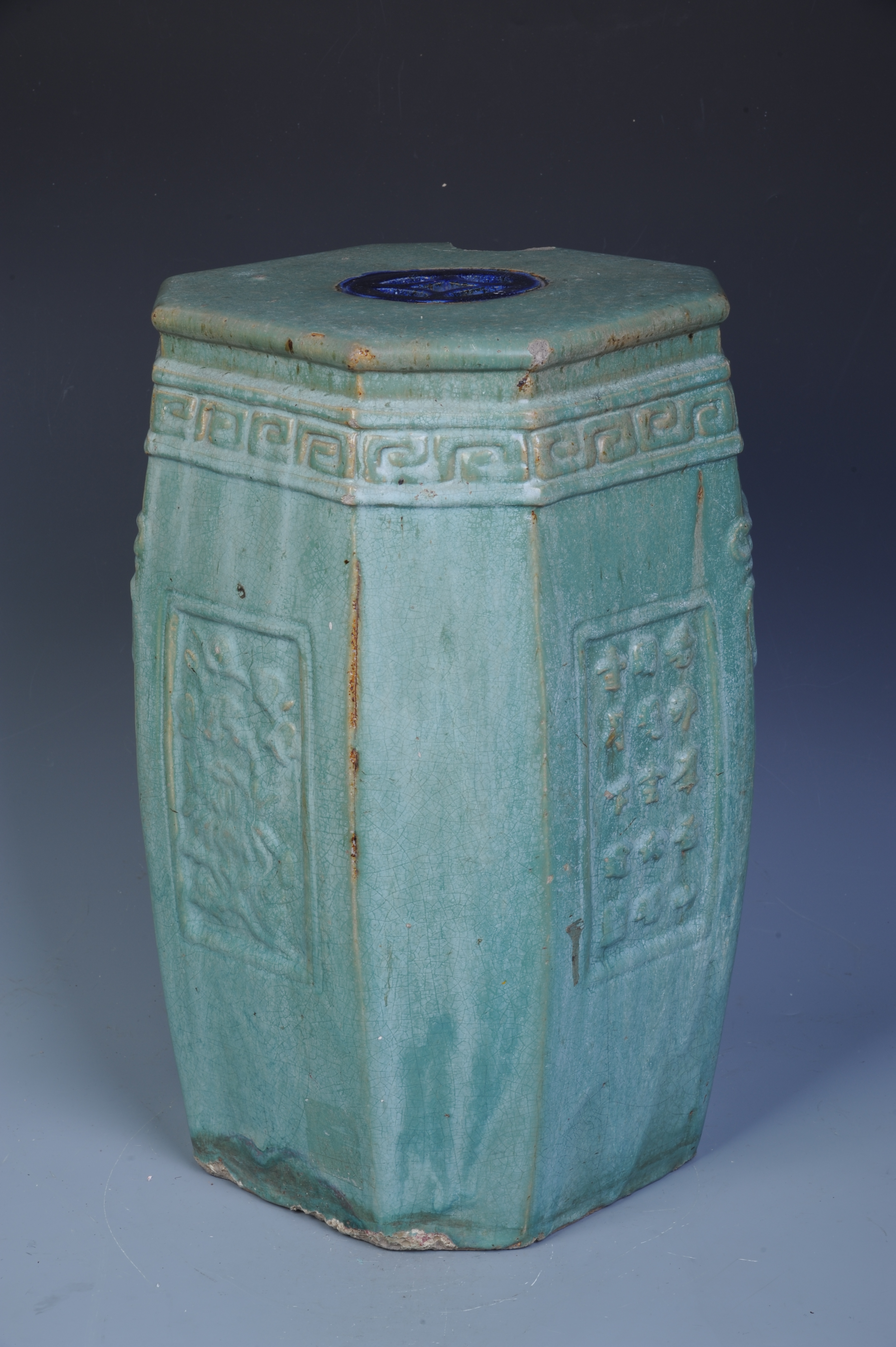 清末石湾窑绿釉印花八角绣墩