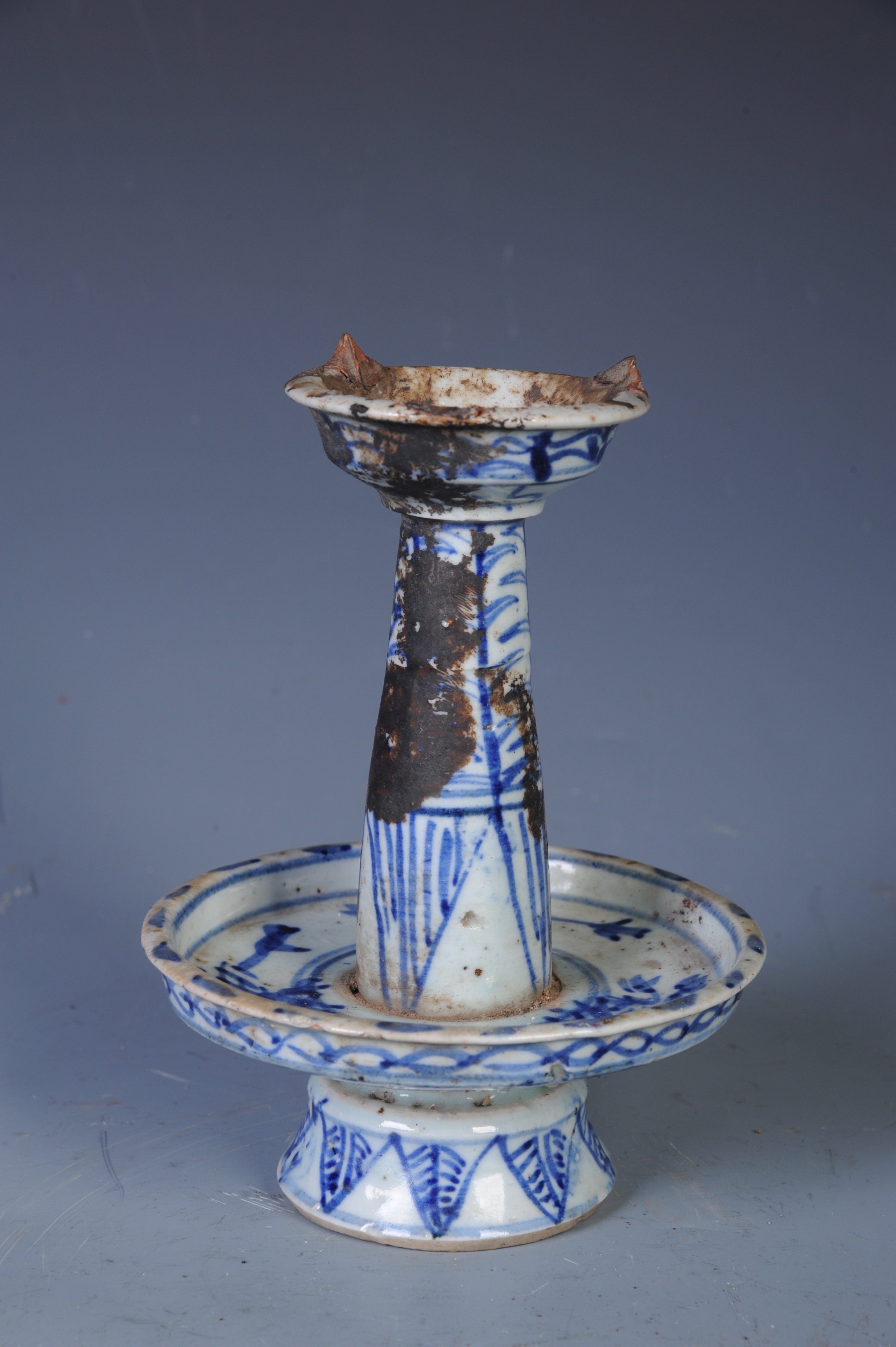 晚清青花花卉纹圆柱烛台