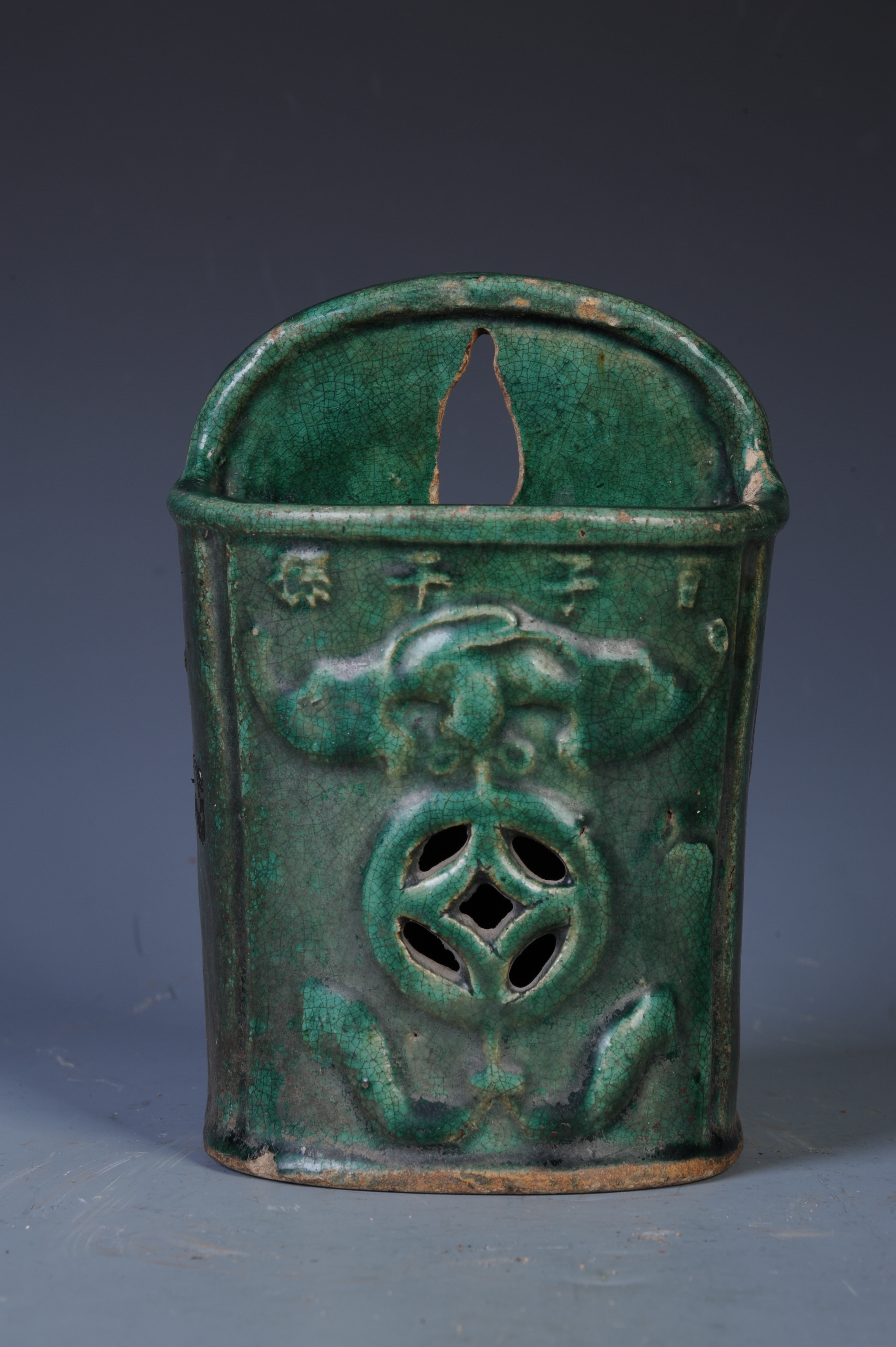 中华民国石湾窑绿釉百子千孙筷子筒