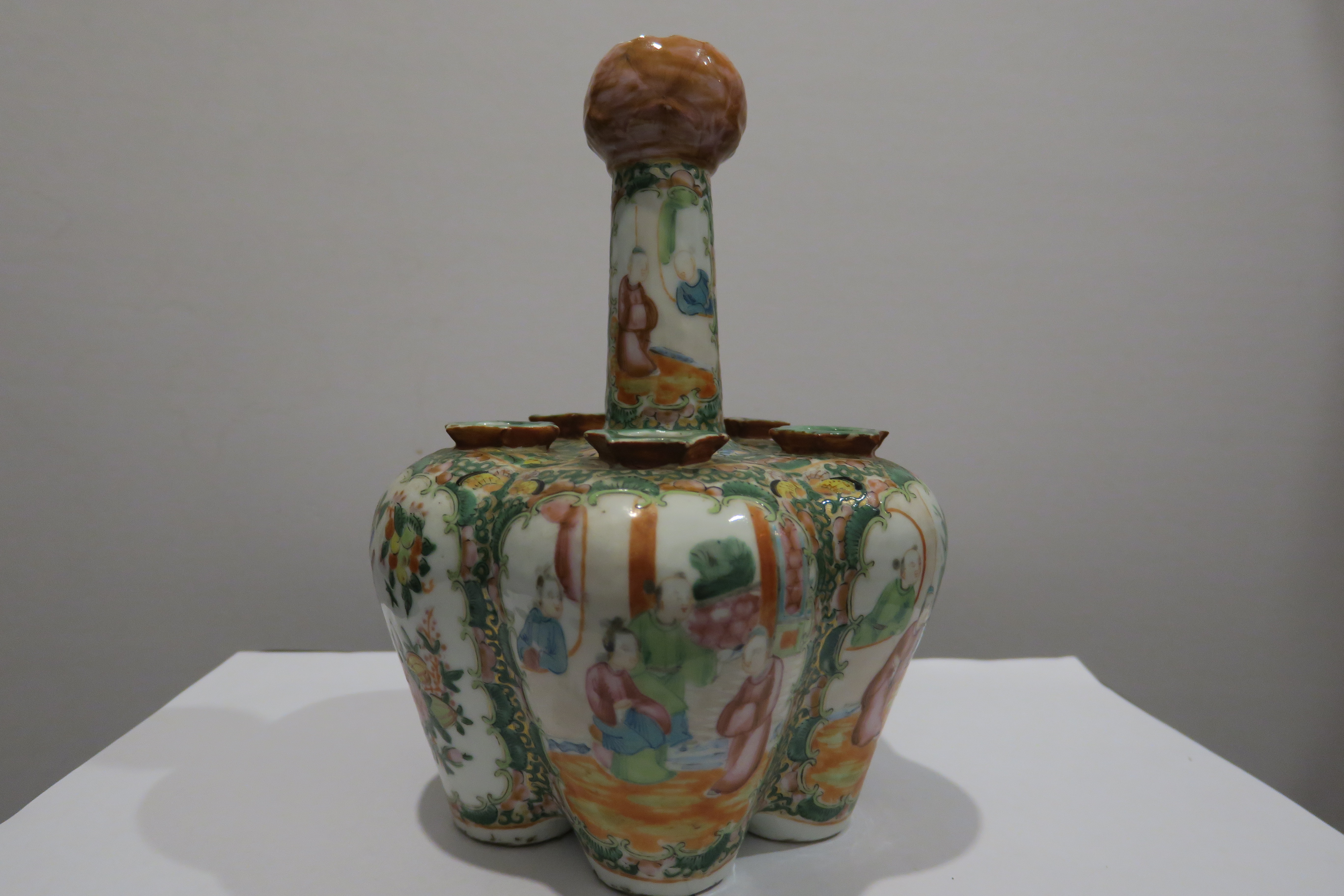清末广彩人物花鸟纹多孔瓶