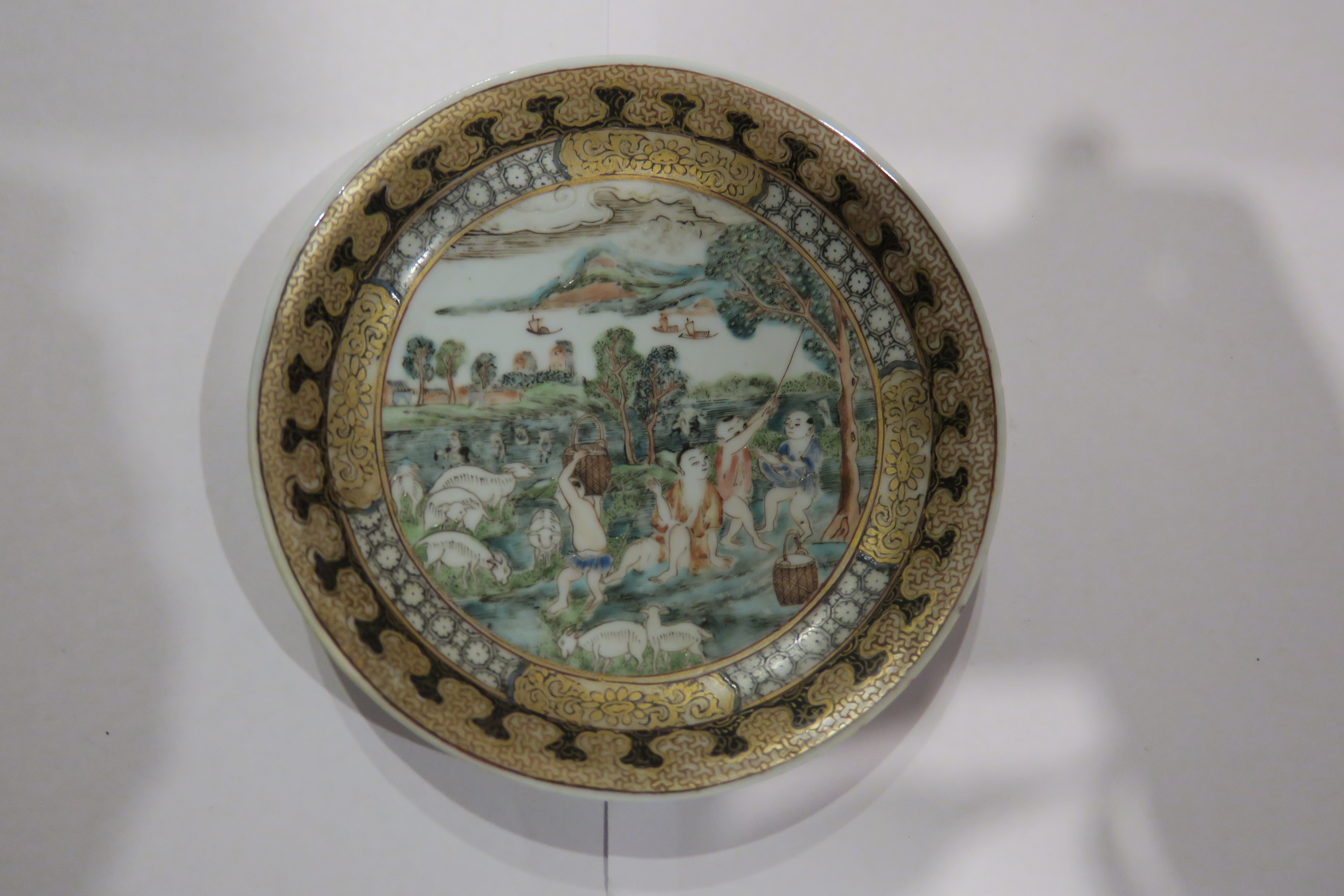 清雍正广彩牧羊图小碟