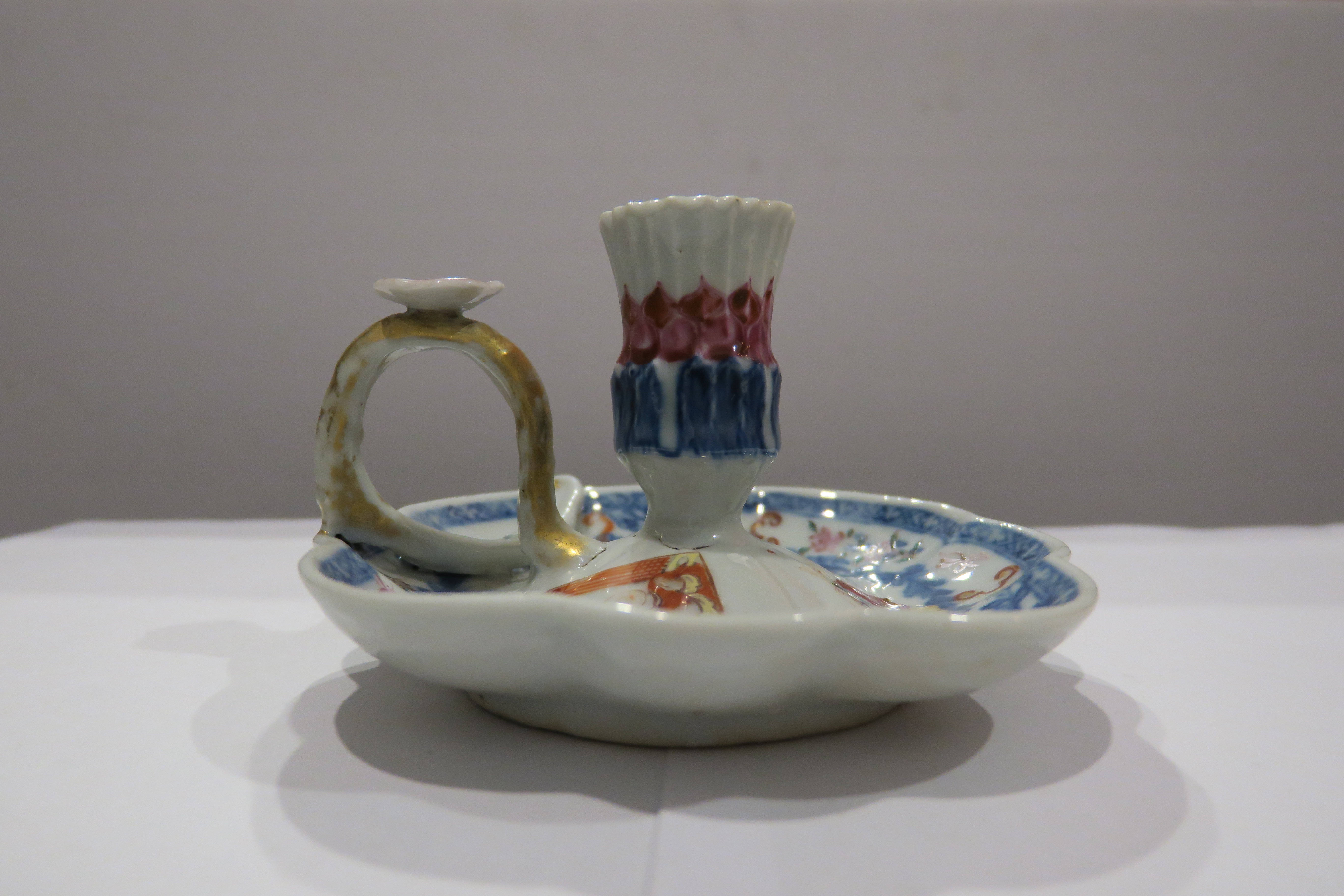 清乾隆广彩人物纹把手烛台
