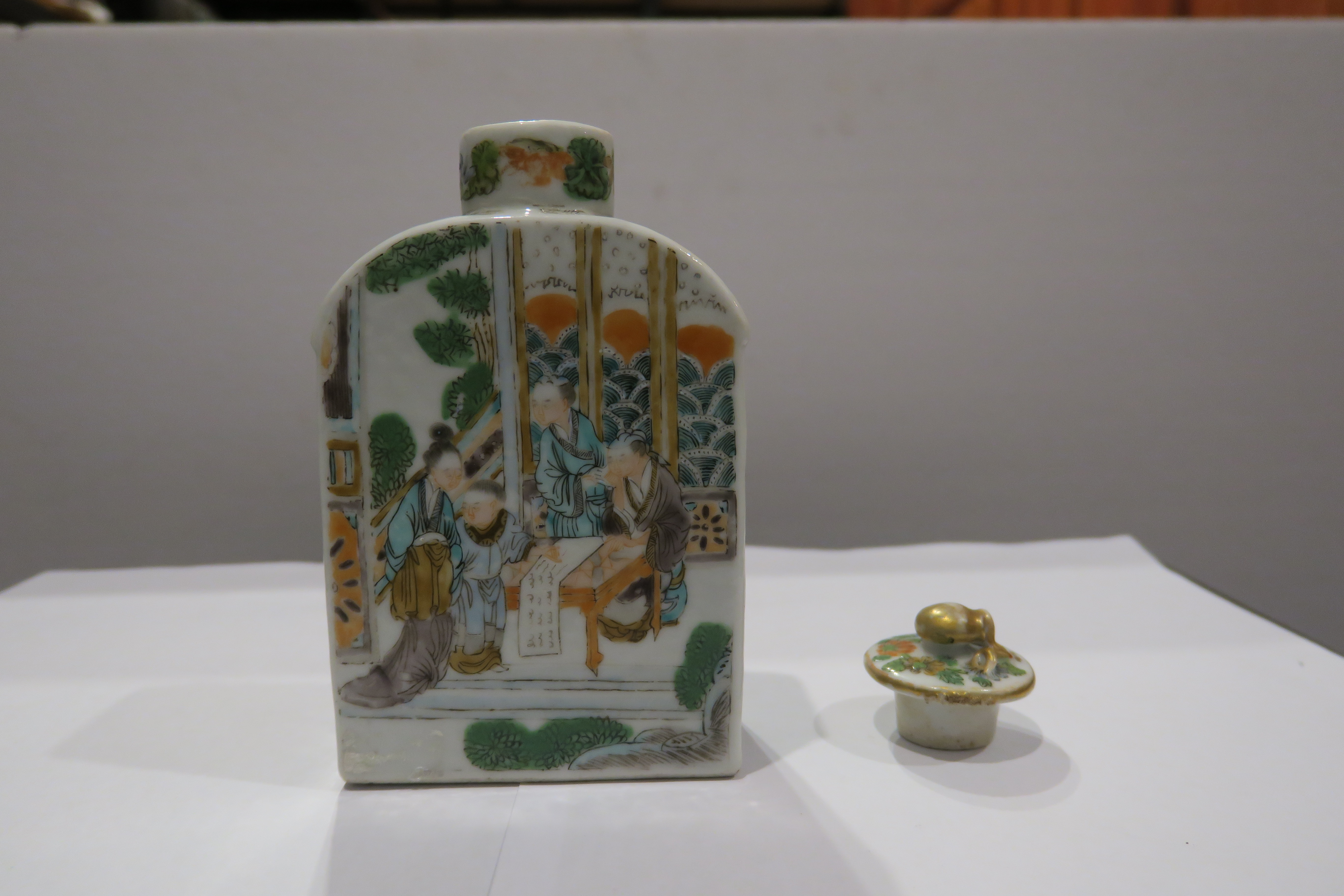 清末广彩人物连盖茶叶罐
