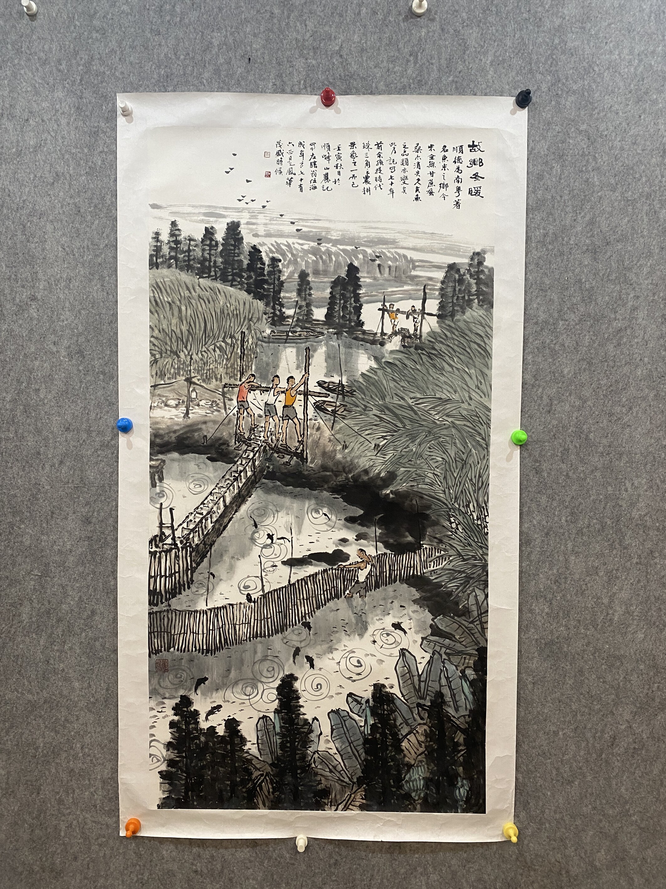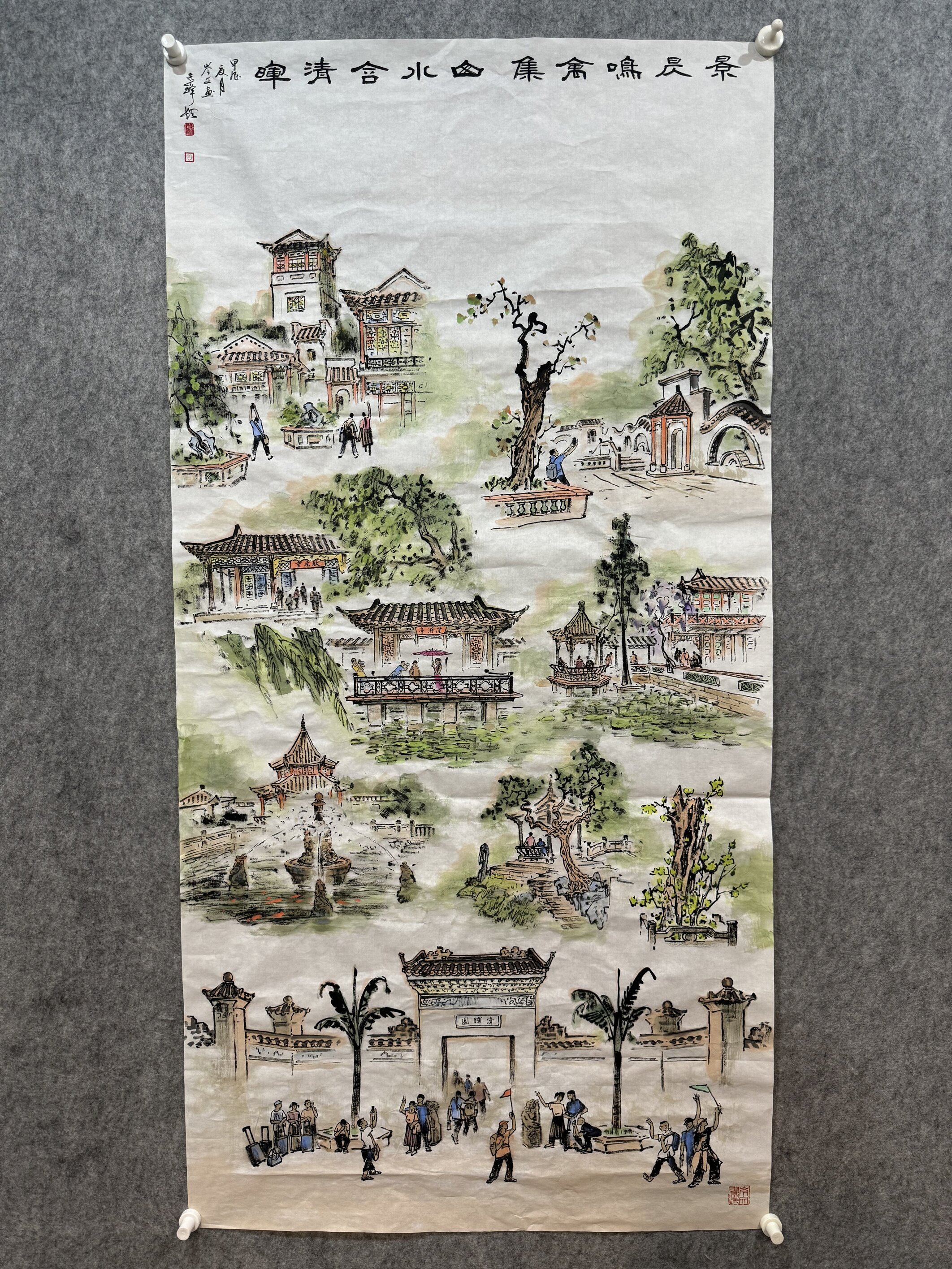 2024年岑文、周志锋共作《景昃鸣禽集•山水含清晖》图镜片