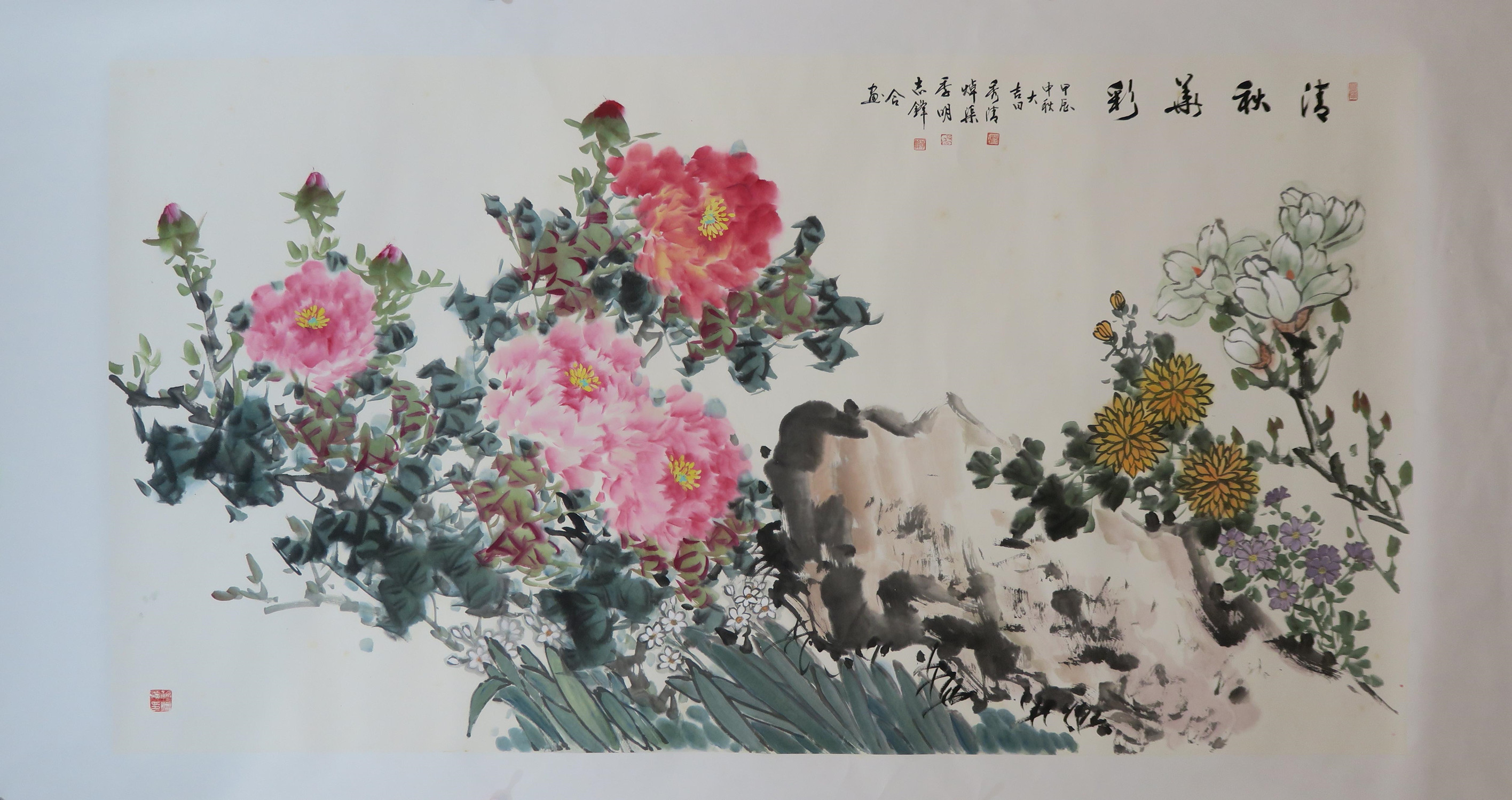 2024年冯秀清、胡焯渠、梁季明、周志锋共绘《清秋华彩》图横幅