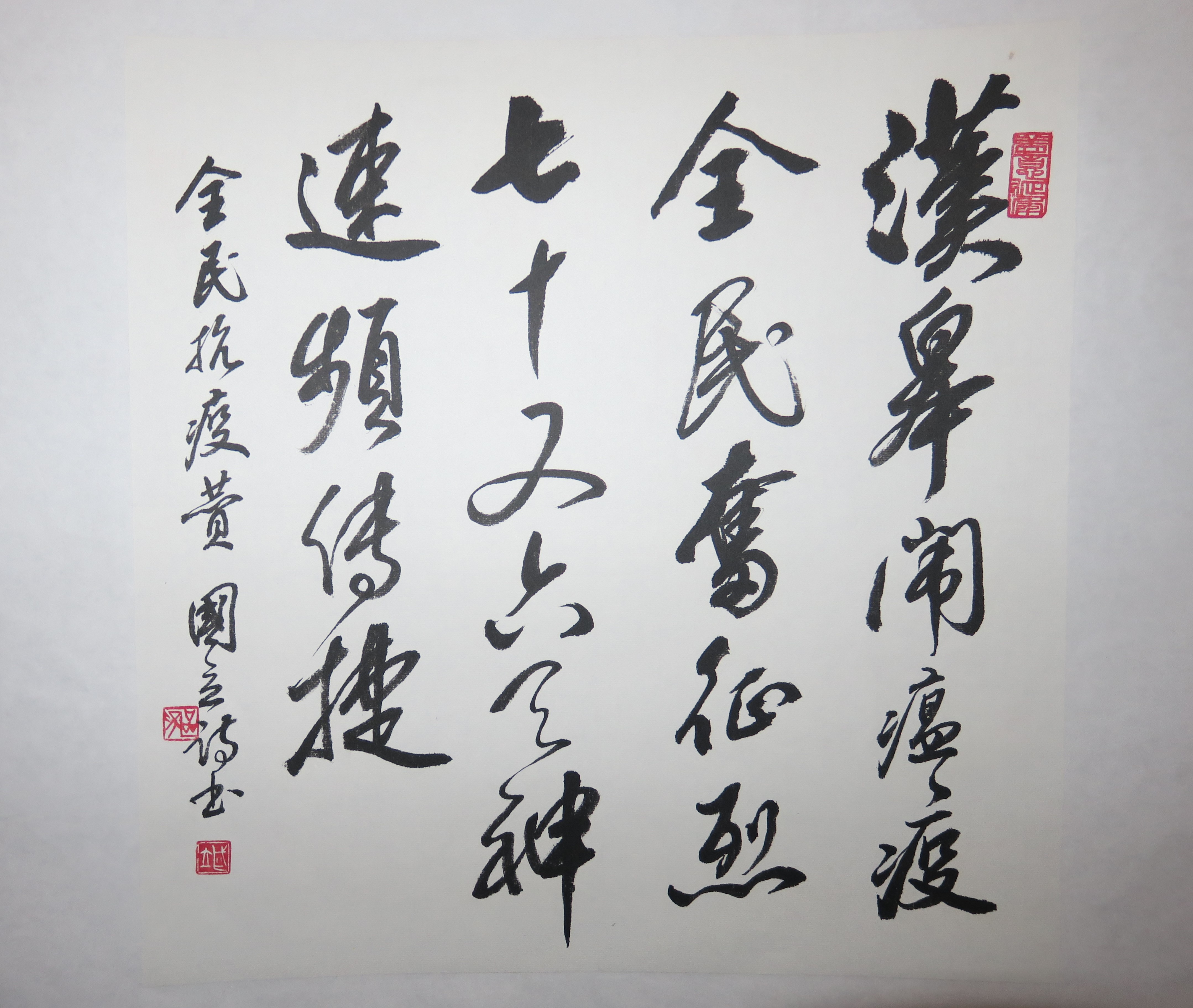 2020年叶胜全行书抗疫诗斗方