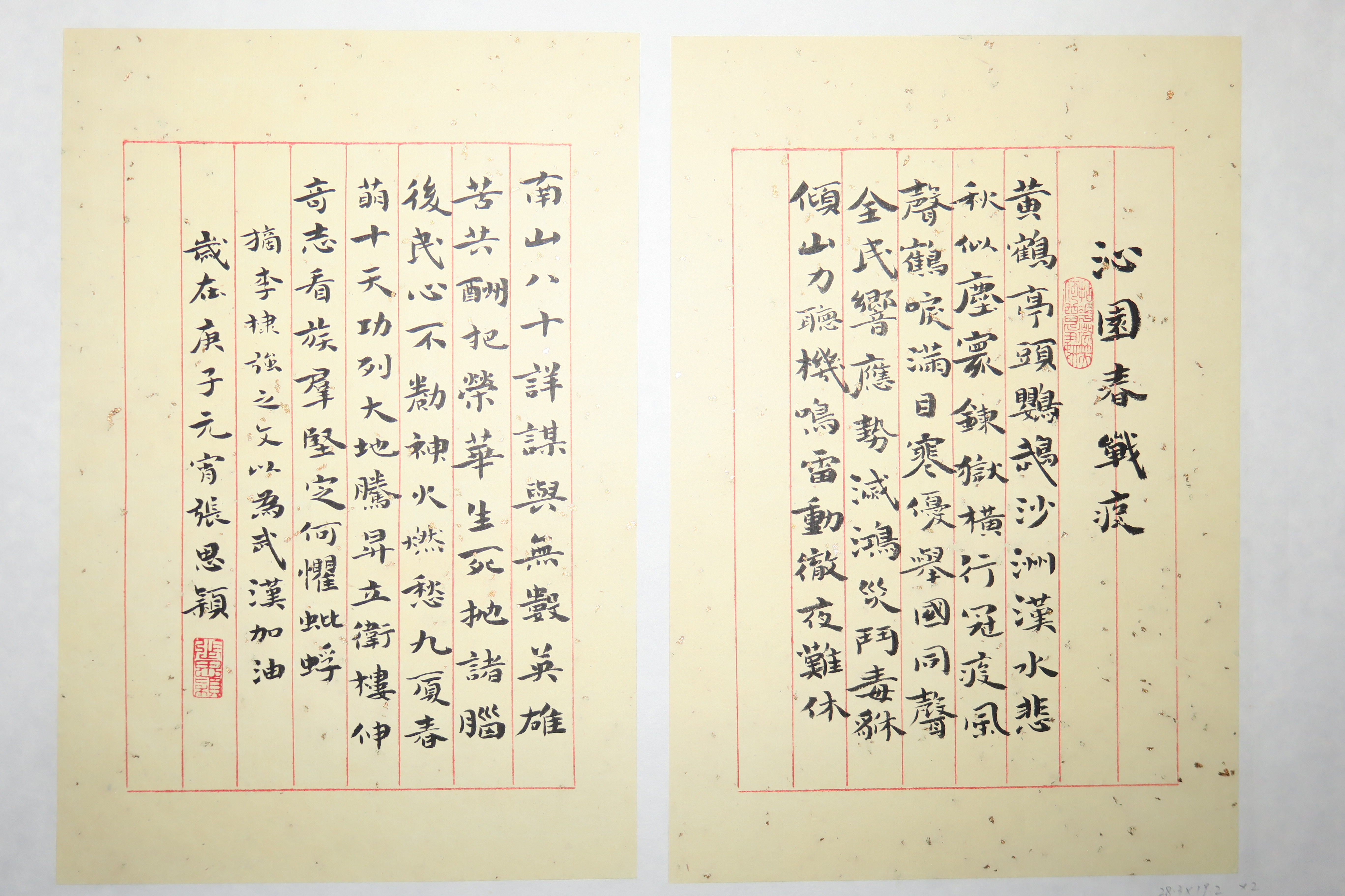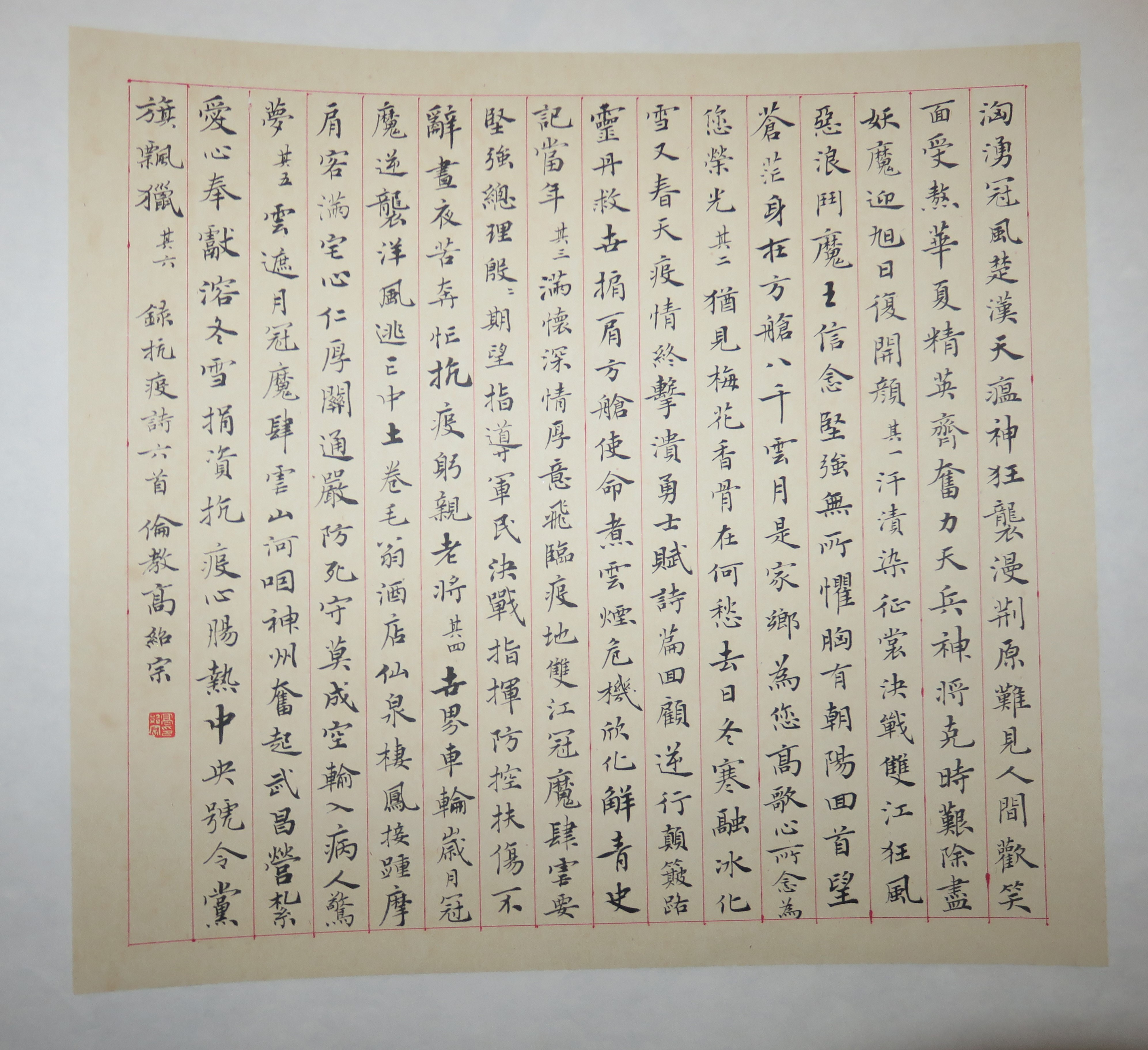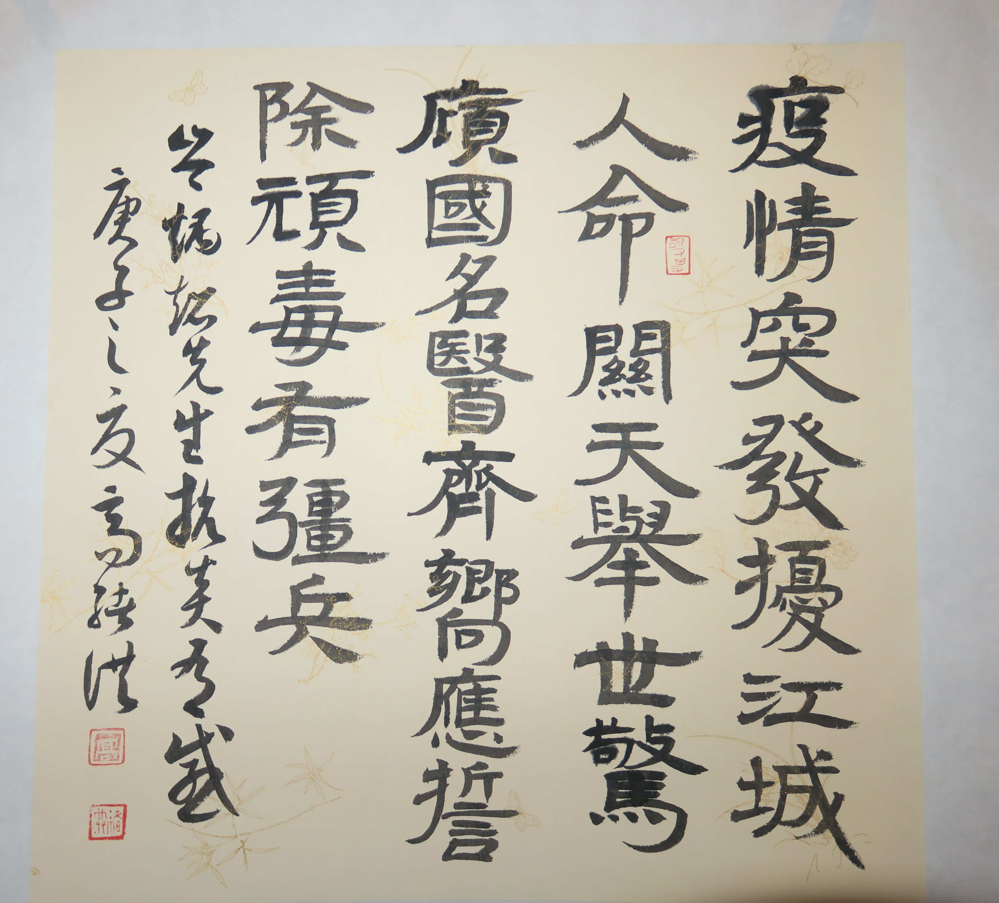 当代高绍宗楷书抗疫诗斗方