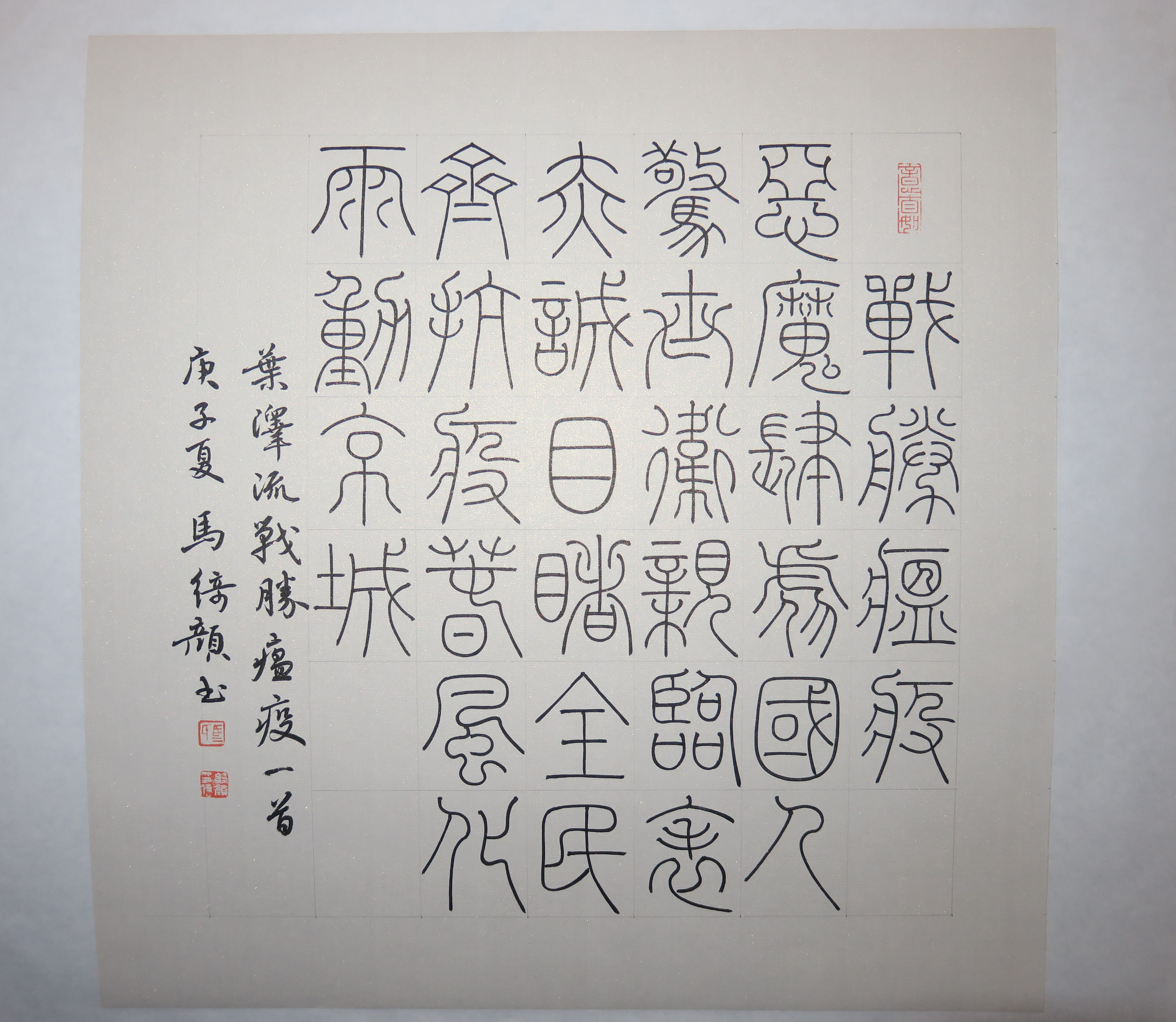 2020年马绮颜篆书“战胜瘟疫”斗方