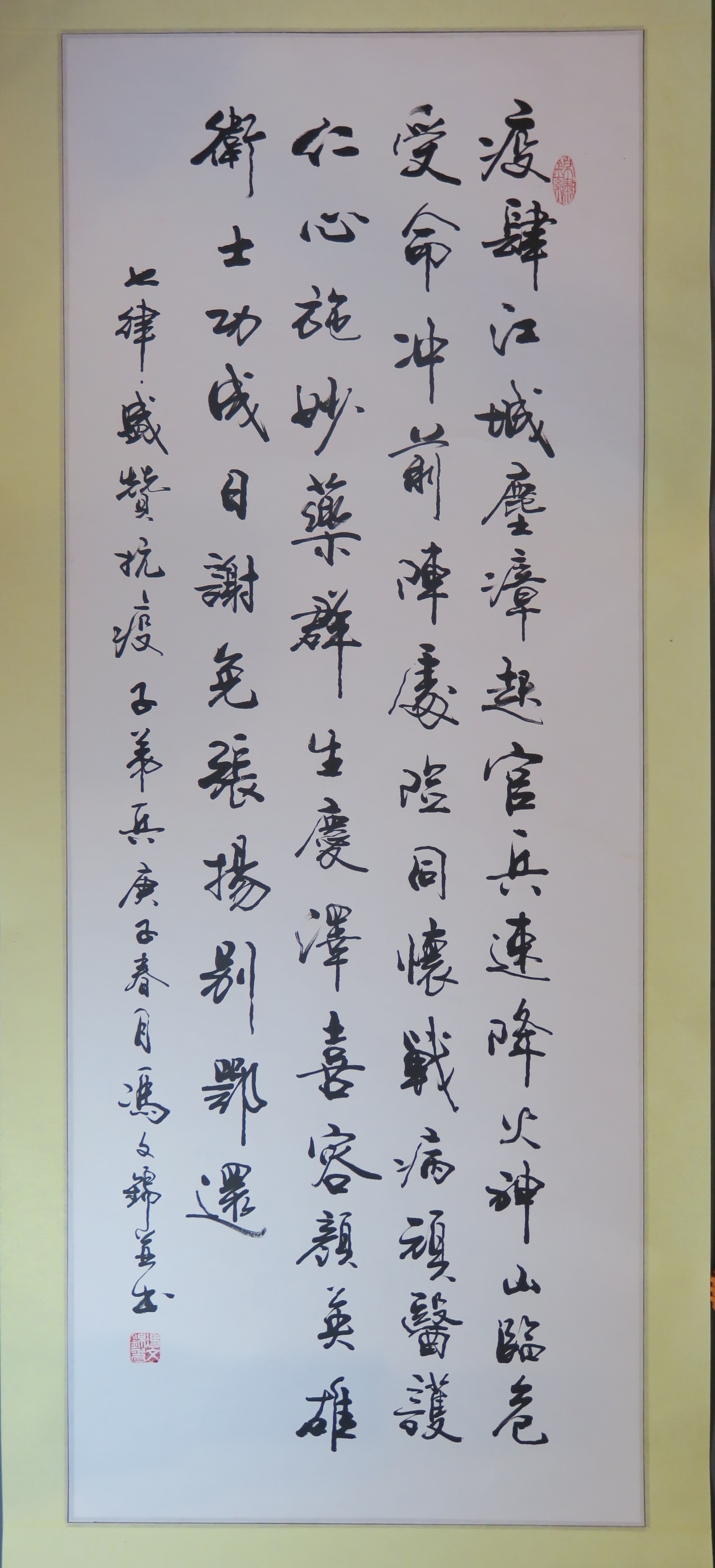 2020年冯文锦行书七言诗《盛赞抗疫子弟兵》条幅
