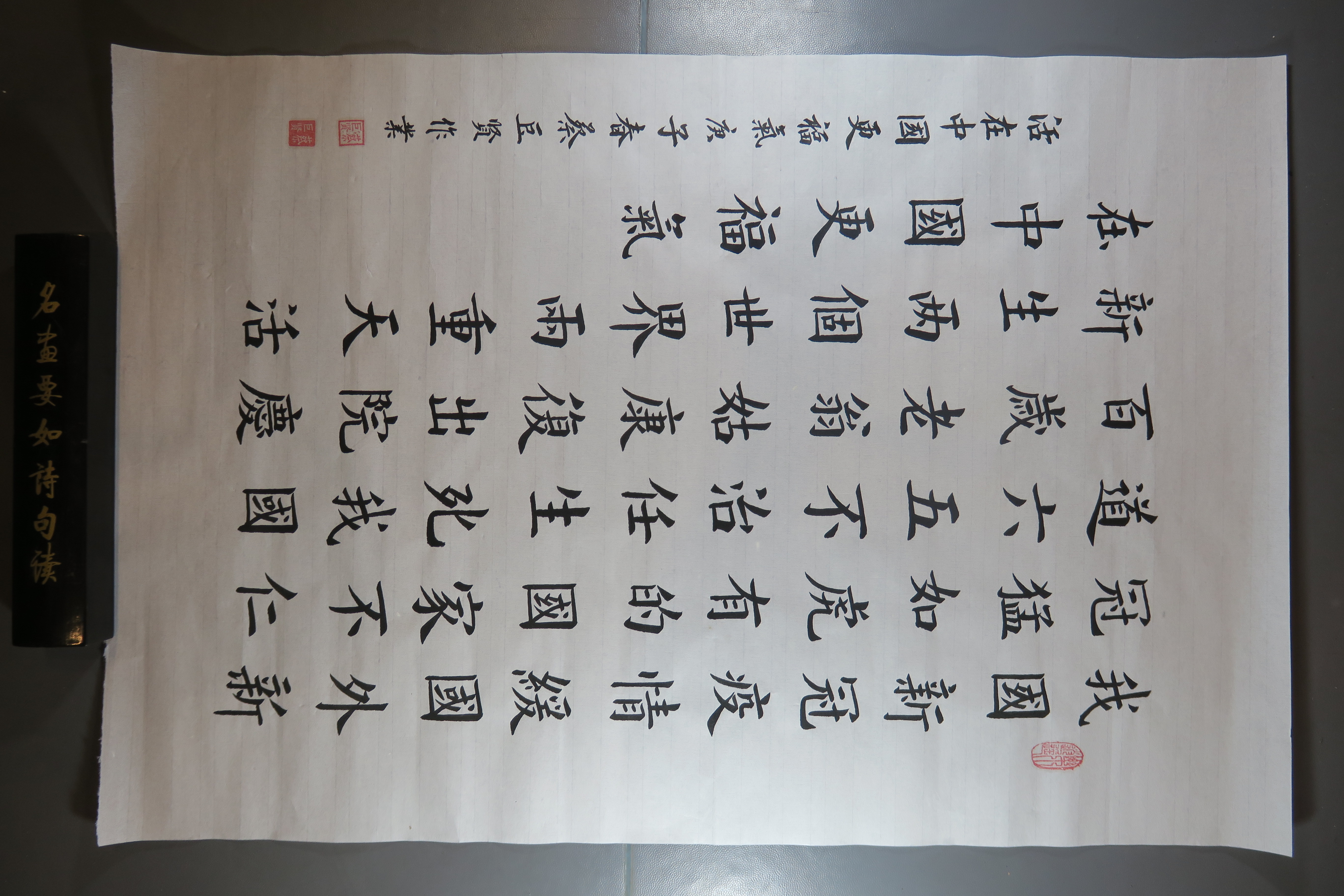 2020年蔡巨贤楷书七言诗《活在中国更福气》斗方