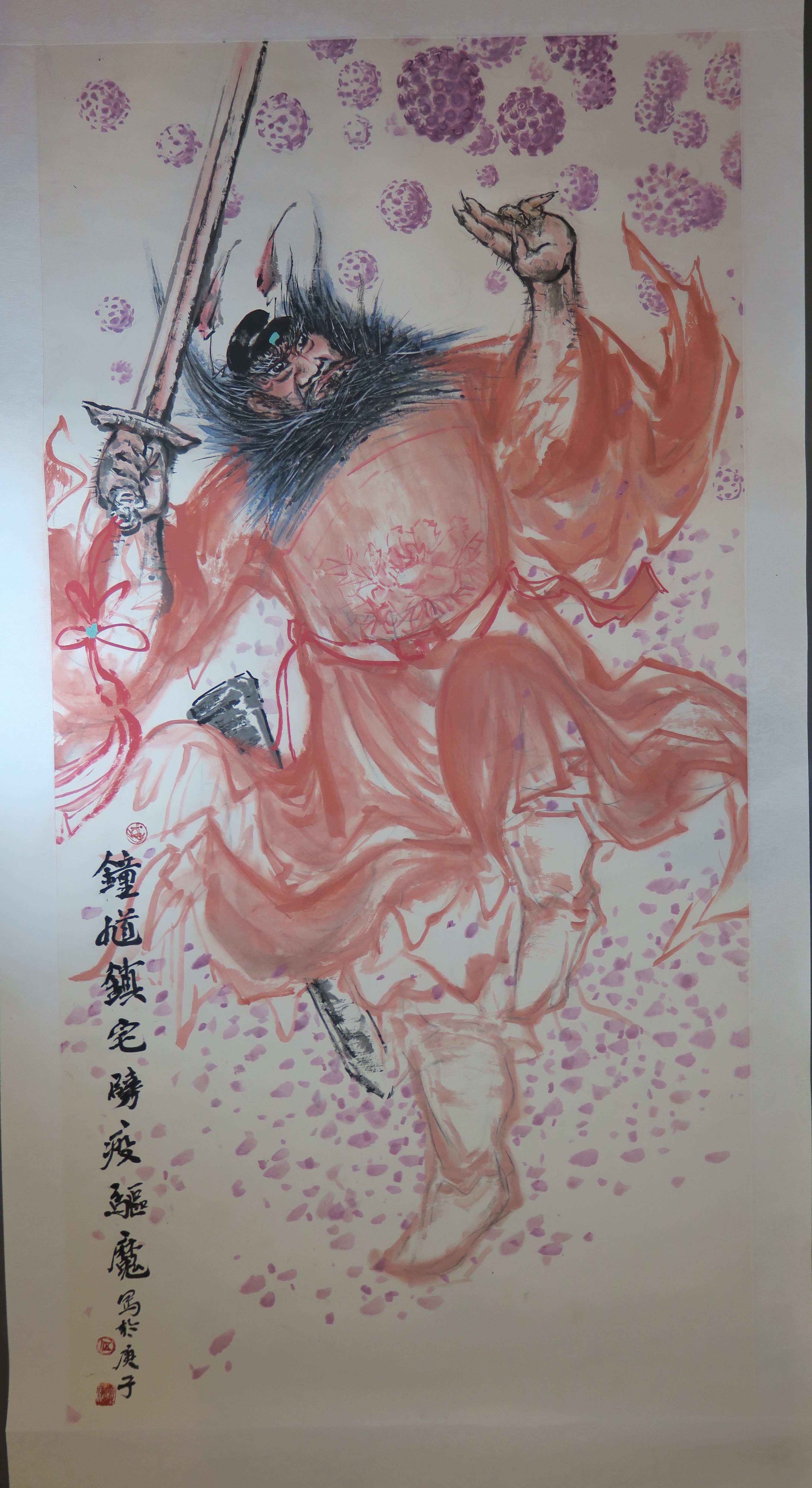 2020年伍明冠《劈疫驱魔》图轴