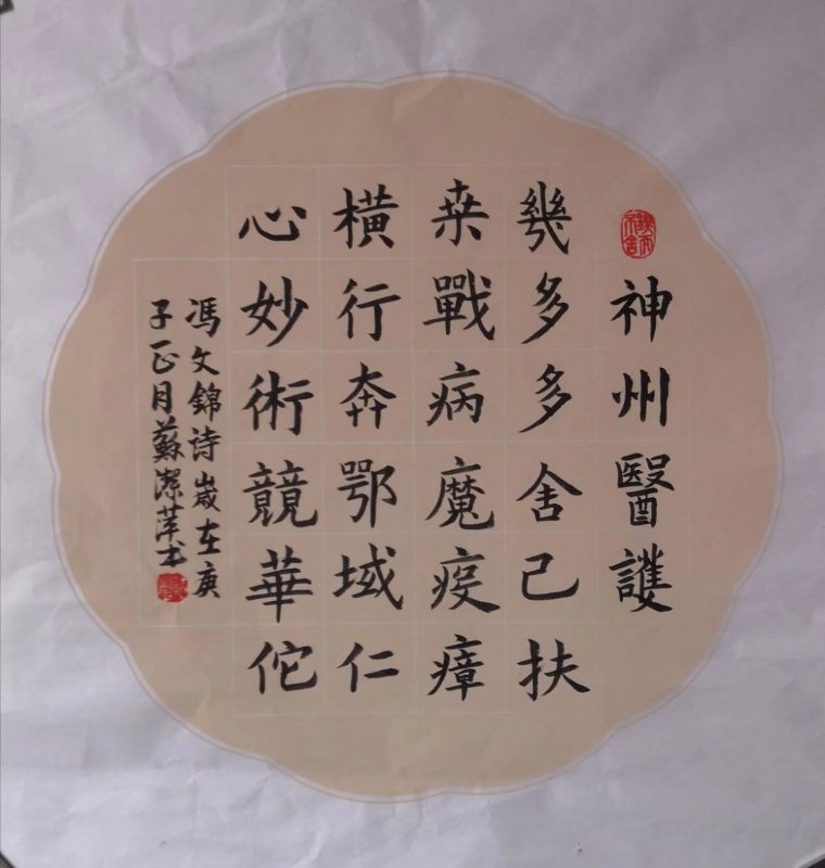 2020年苏洁萍楷书六言诗《神州医护》团扇