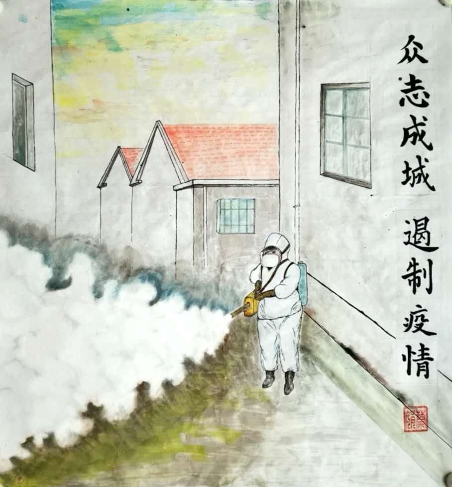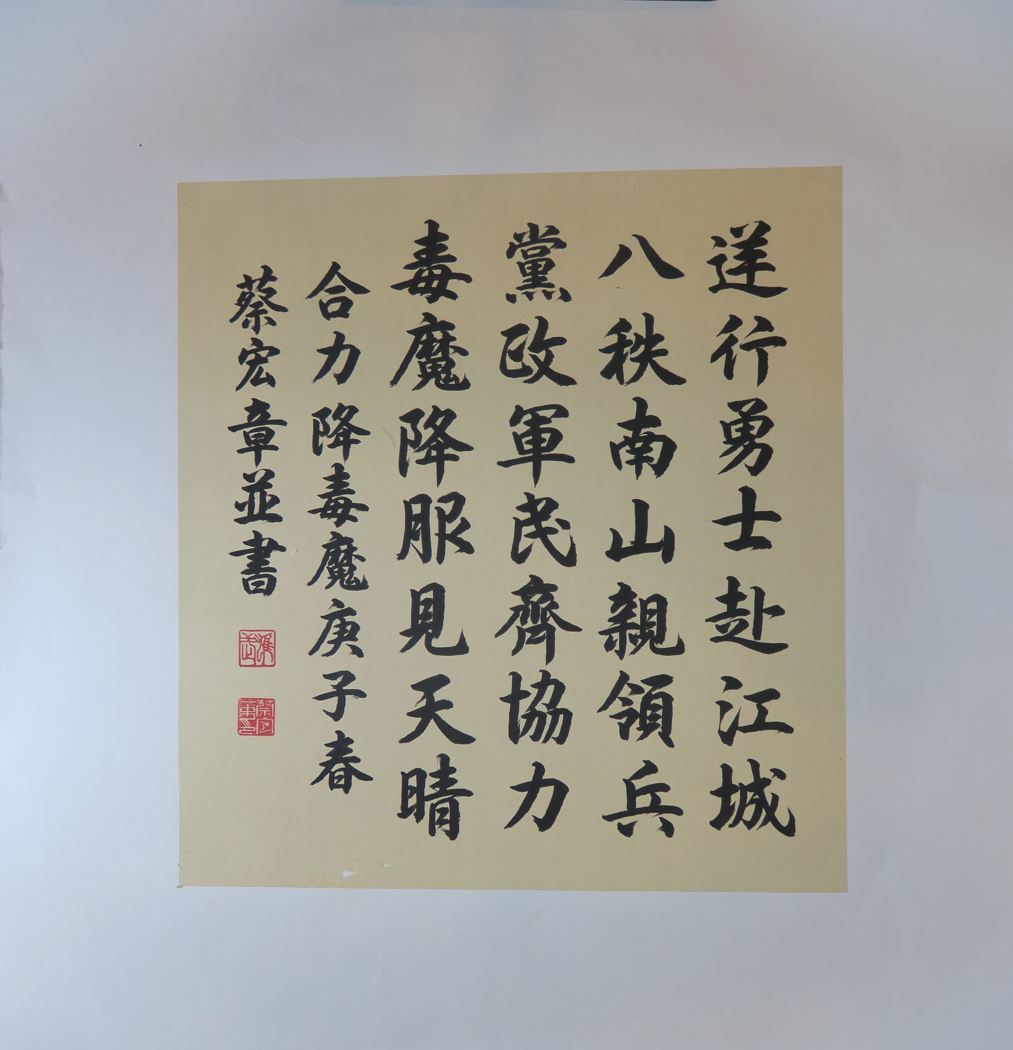 2020年蔡宏章楷书七言诗《合力降毒魔》斗方