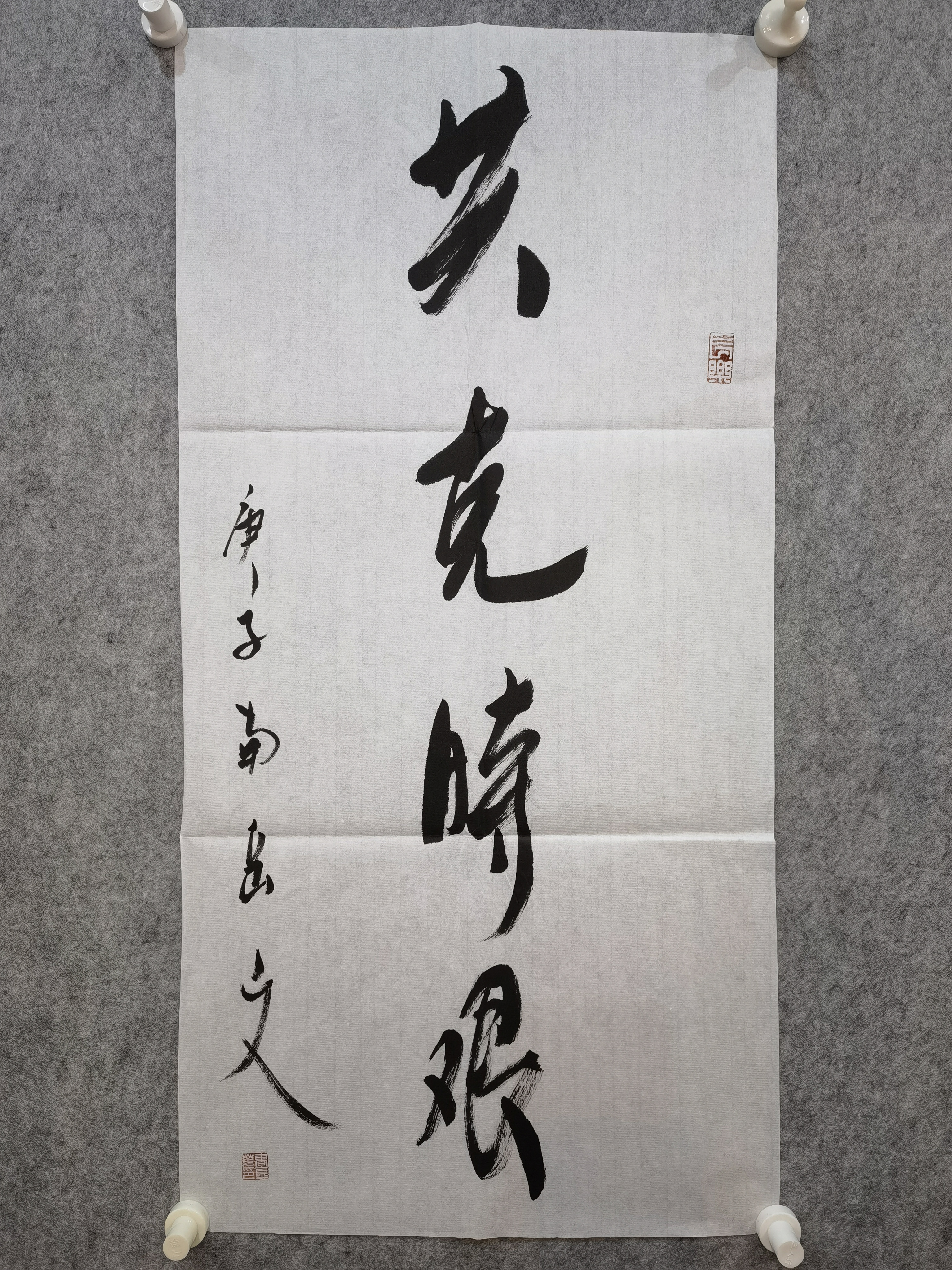 2020年周瑞武隶书七言诗《共克时艰》轴